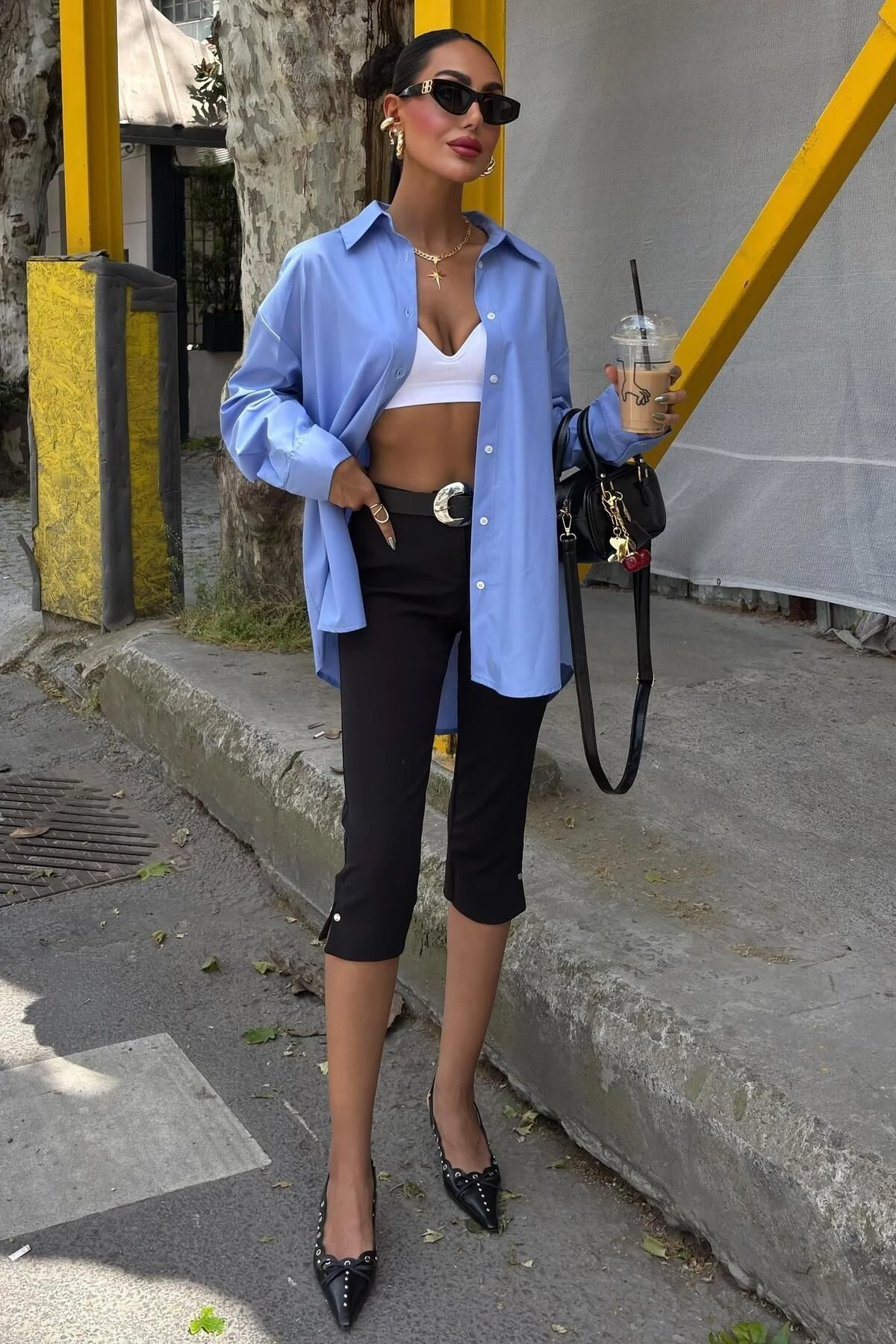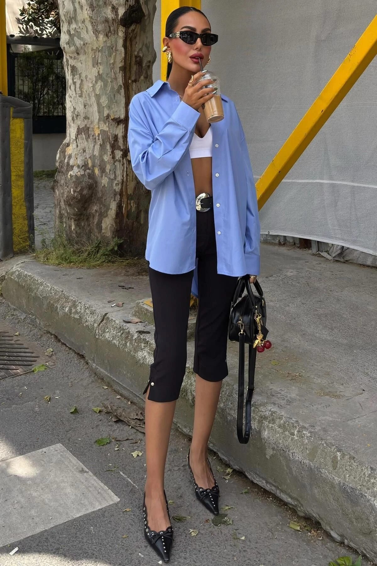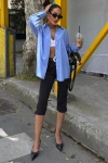 Kadın Mavi Oversize Poplin Uzun Kol Gömlek