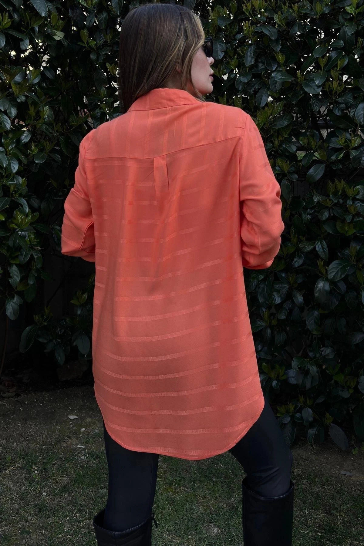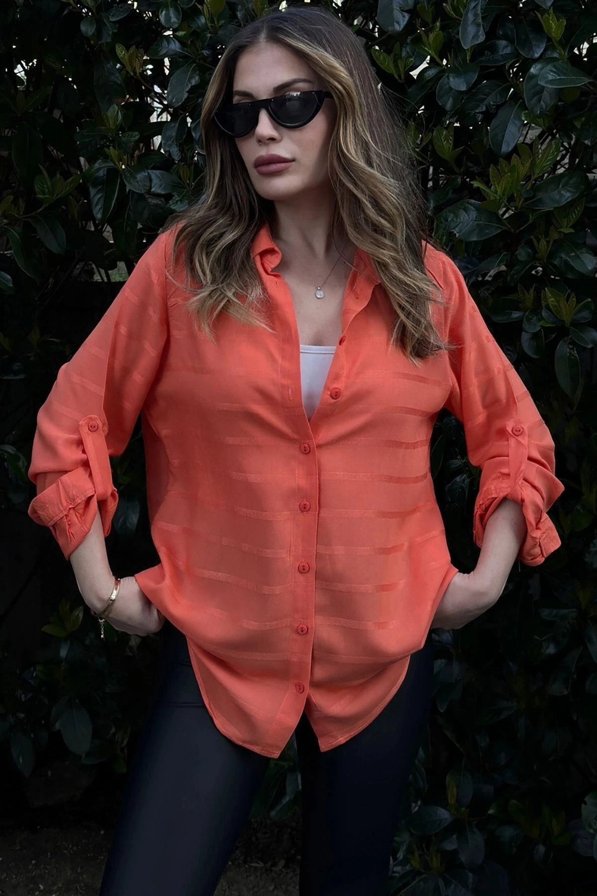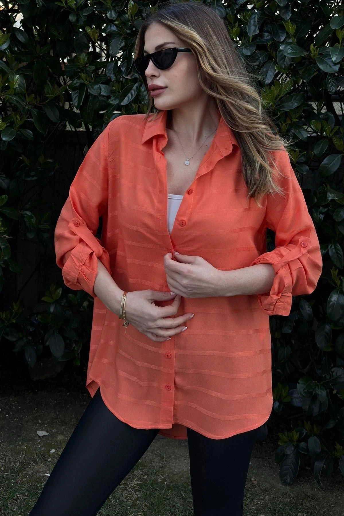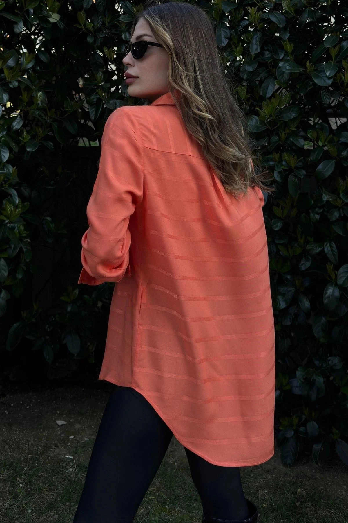 Kadın Mercan Uzun Kol, Dokulu Kumaş, Salaş Gömlek