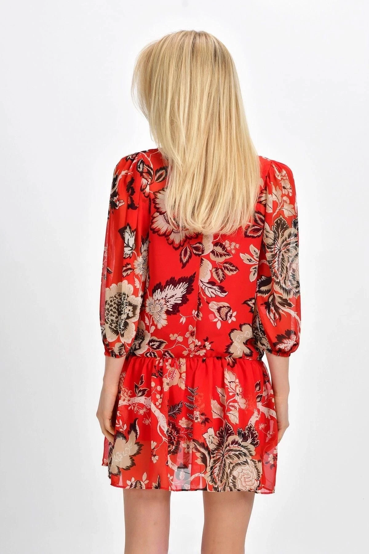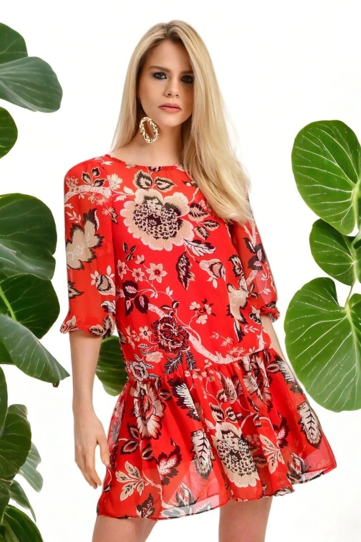 Bu Mercan Renk Yuvarlak Yaka, Truvakar Kol, Desenli, Kat Detaylı, Mini Kısa Elbise, şıklığı ve zarafeti bir araya getiren bir parçadır.; Ürünün kumaş içeriği %100 Polyester'dir, bu da hem dayanıklılık sağlar hem de rahat bir giyim deneyimi sunar.; Elbisenin mercan rengi, canlı ve enerjik bir görünüm yaratır.; Renk, güneşli günlerde mükemmel bir şekilde parlar ve herhangi bir ortamda dikkat çekici olmanızı sağlar.; Yuvarlak yaka, klasik bir tarz sunarken, truvakar kol detayları feminen bir dokunuş katar.; Bu tasarım, elbiseye zarif ve şık bir görünüm kazandırırken, aynı zamanda rahatlık ve özgürlük sağlar.; Elbisenin desenli yapısı, benzersiz bir tarz oluşturur.; Desenler, etkileyici bir şekilde bir araya gelerek elbiseye derinlik ve hareket katar.; Bu, sizin stilinizi yansıtan kişisel bir dokunuş sunar.; Kat detayları, elbisenin tasarımını zenginleştirir ve ilgi çekici bir görünüm sunar.; Katmanlar, elbiseye hacim ve hareketlilik katarak figürünüzü en iyi şekilde vurgular.; Mini kısa elbise kesimi, genç ve dinamik bir tarz yaratır.; Bacaklarınızı sergileyen bu kesim, feminen ve çekici bir görünüm sağlar.; Bu elbise, özel etkinliklerden günlük hayata kadar geniş bir yelpazede giyilebilir.; İster arkadaşlarınızla bir akşam yemeğine çıkın, ister bir kokteyl partisinde şıklığınızı sergileyin, bu elbise size her ortamda güven ve stil sunacaktır.