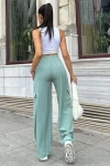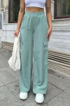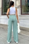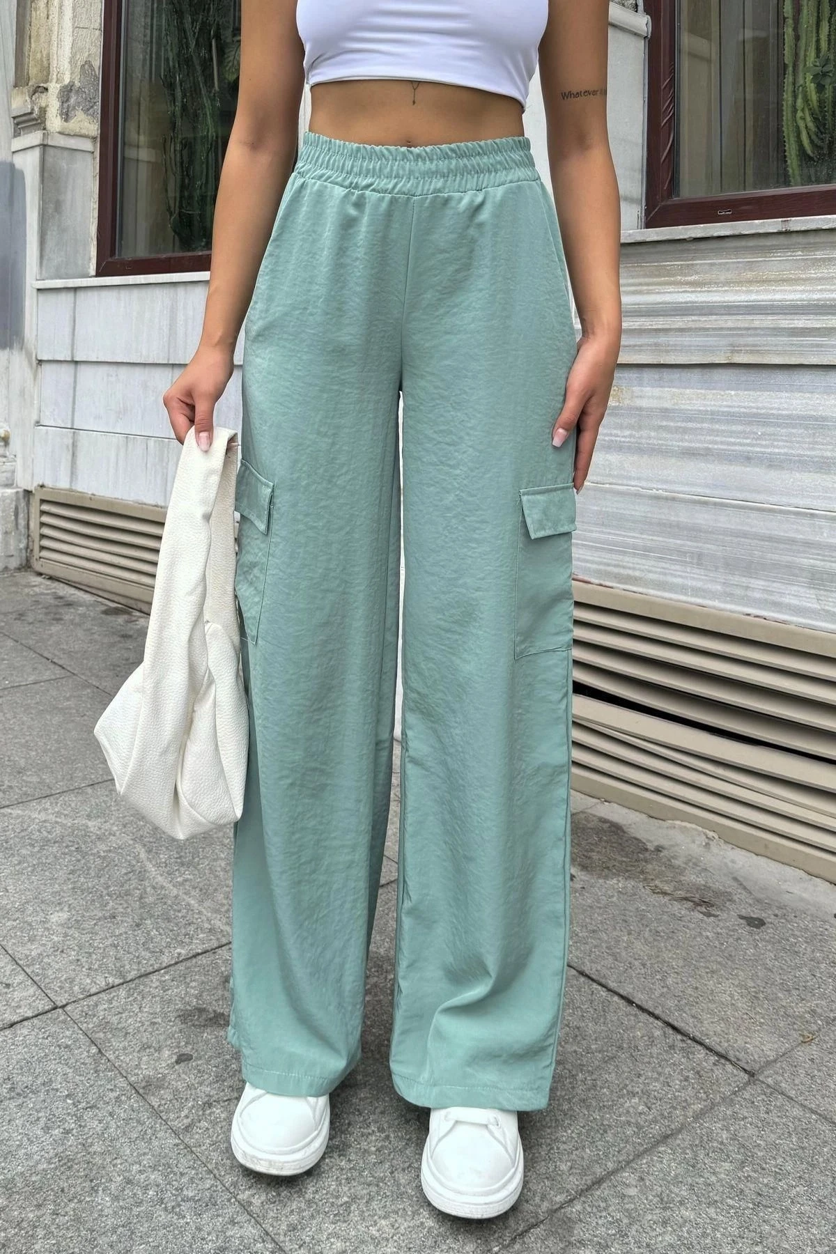 Kadın Mint Beli Lastikli, Kargo Cepli, Bol Paça Kupra Kumaş Palazzo Pantolon - Tesettüre Uygun