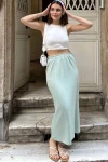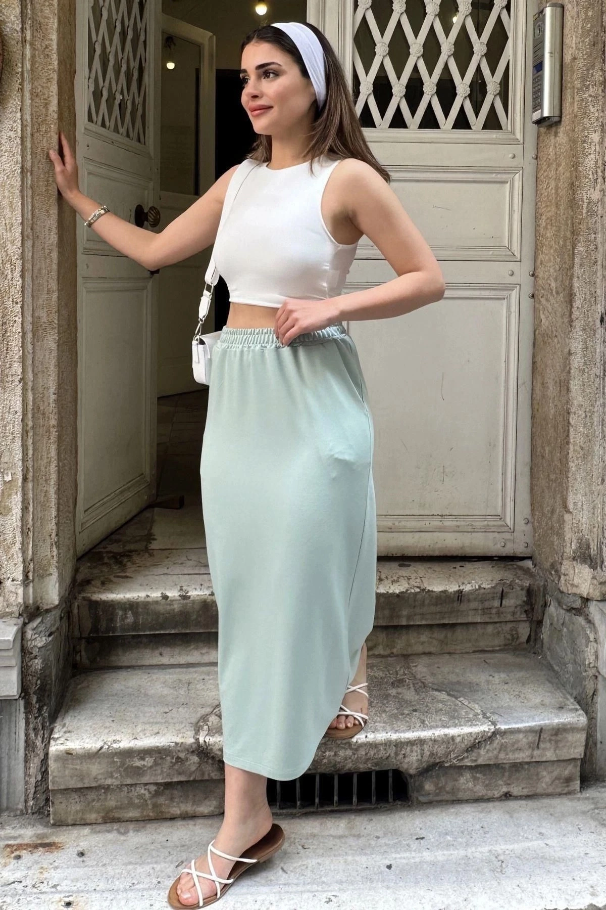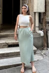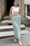 Kadın Mint Beli Lastikli, Rahat Kalıp, Cepli Uzun Etek
