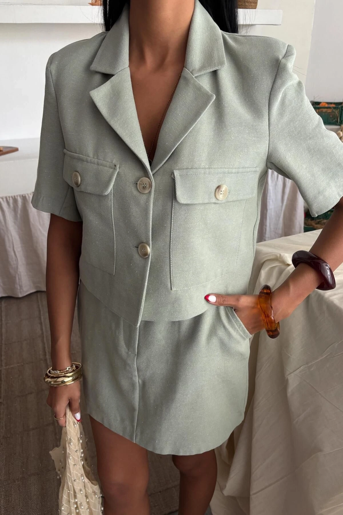 Kadın Mint Dokuma Kruvaze Kısa Mini Takım