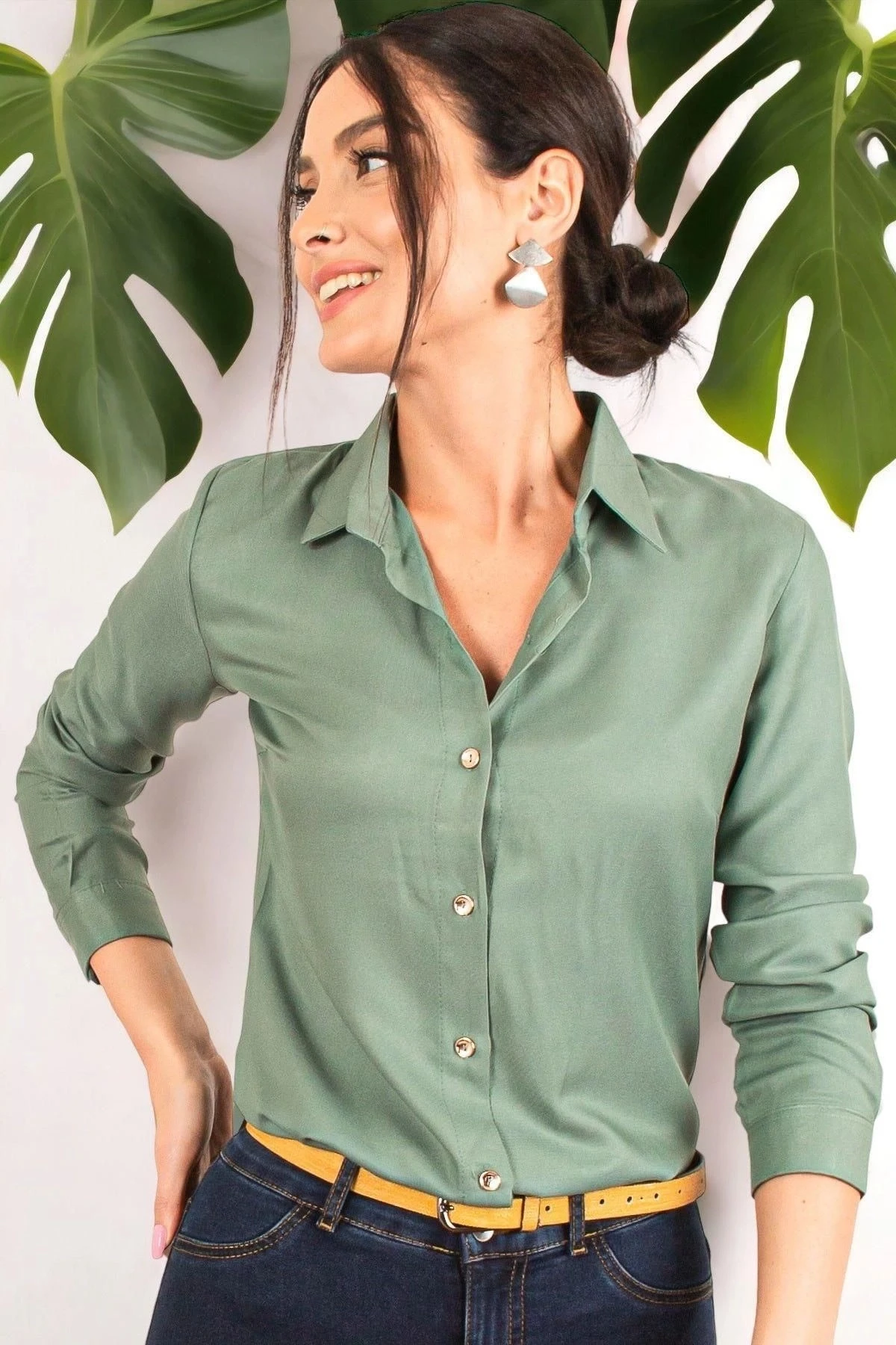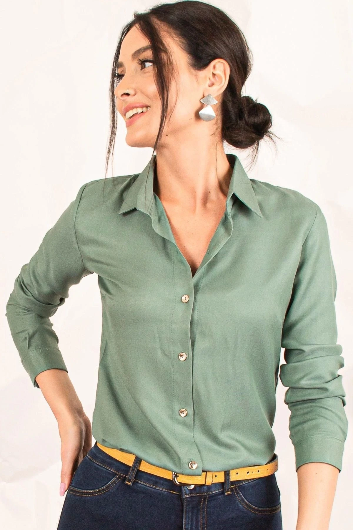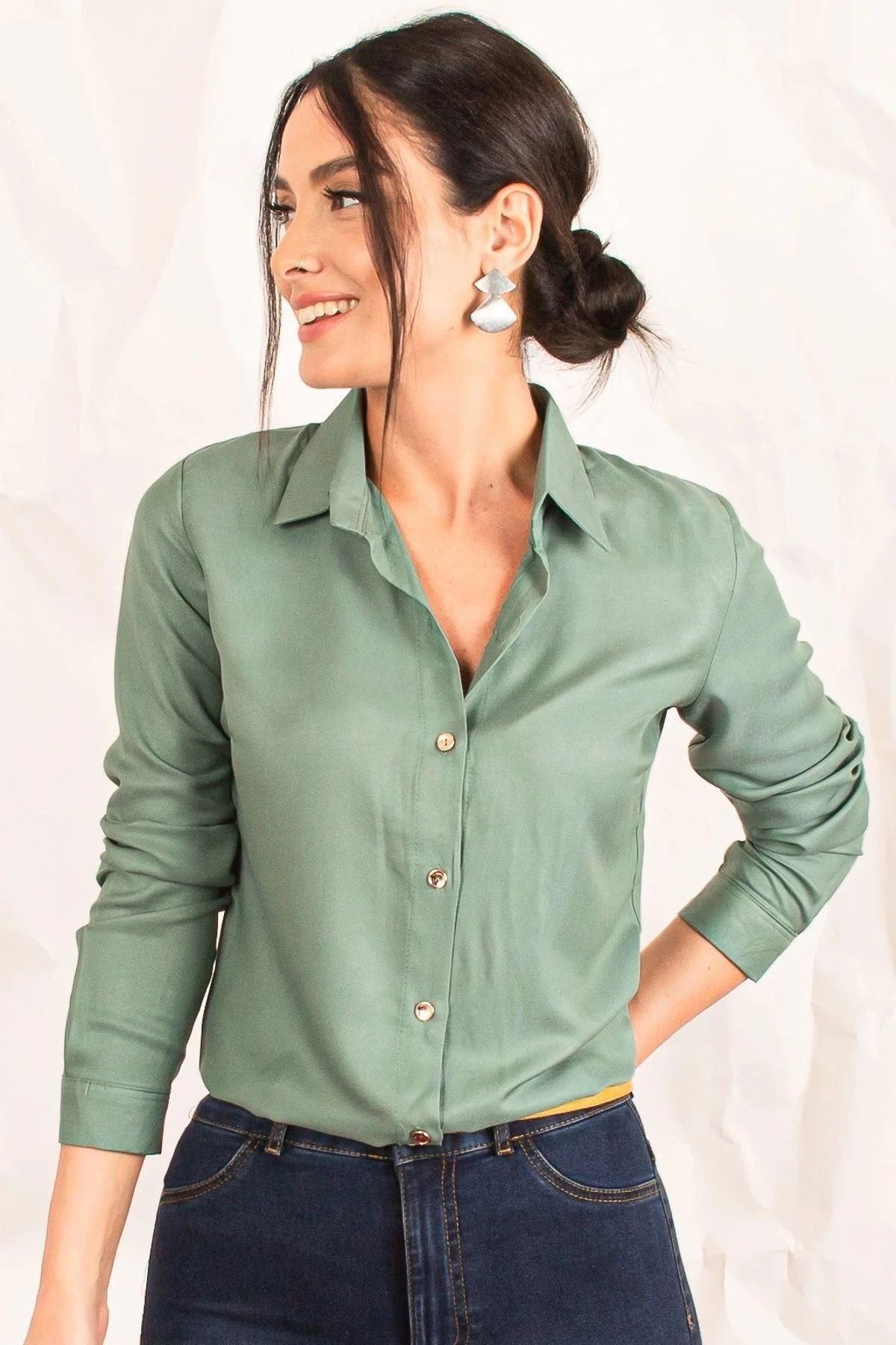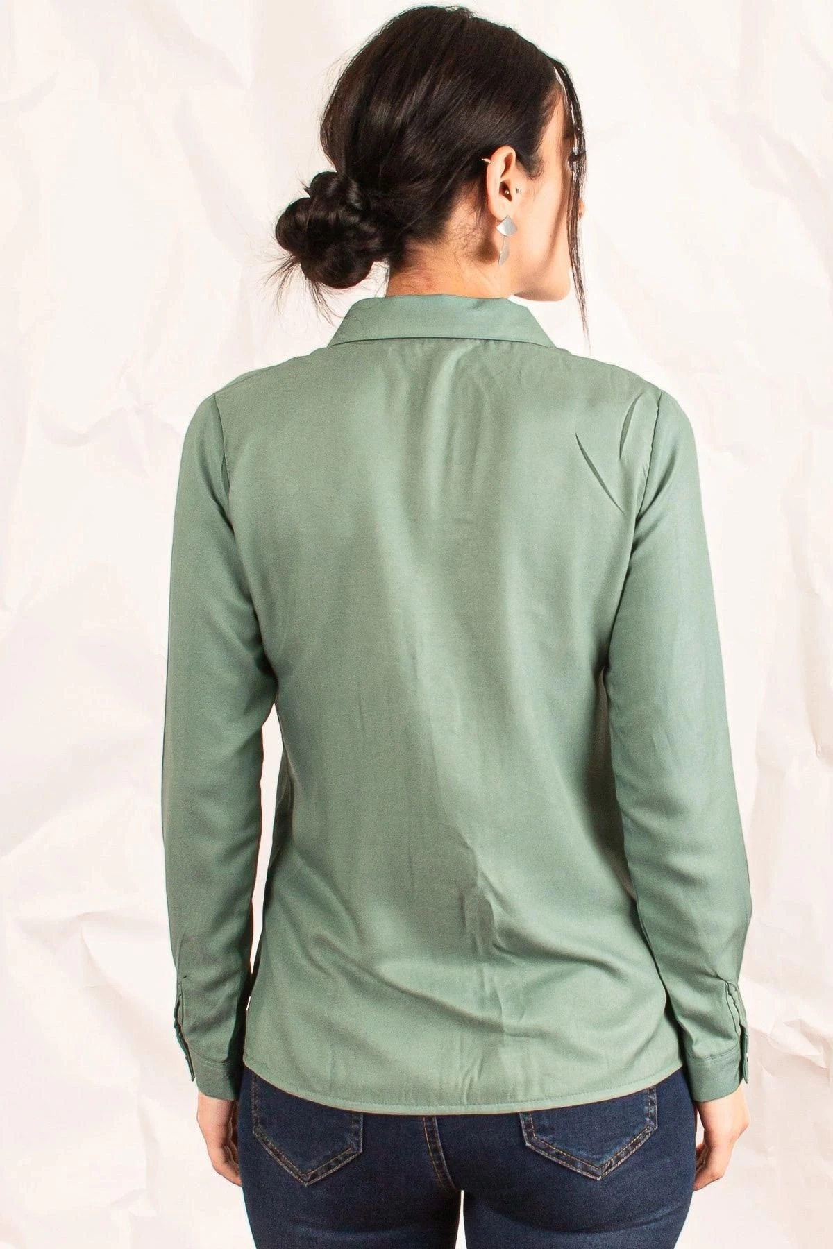 Kadın Mint Klasik Yaka Uzun Kol Basic Regular Kesim Standart Boy Gömlek