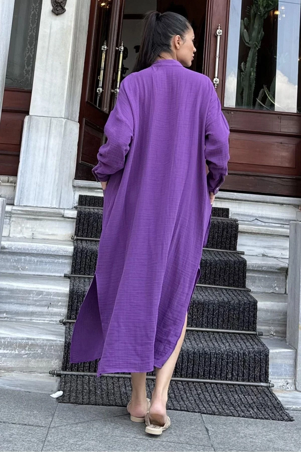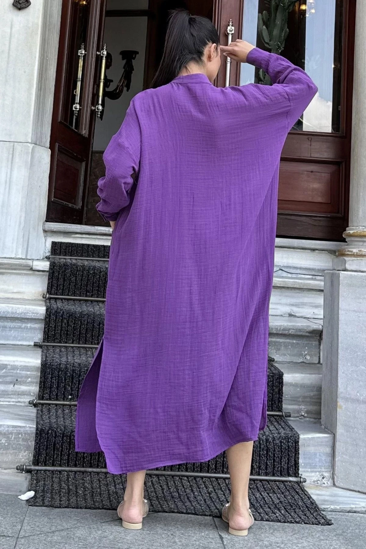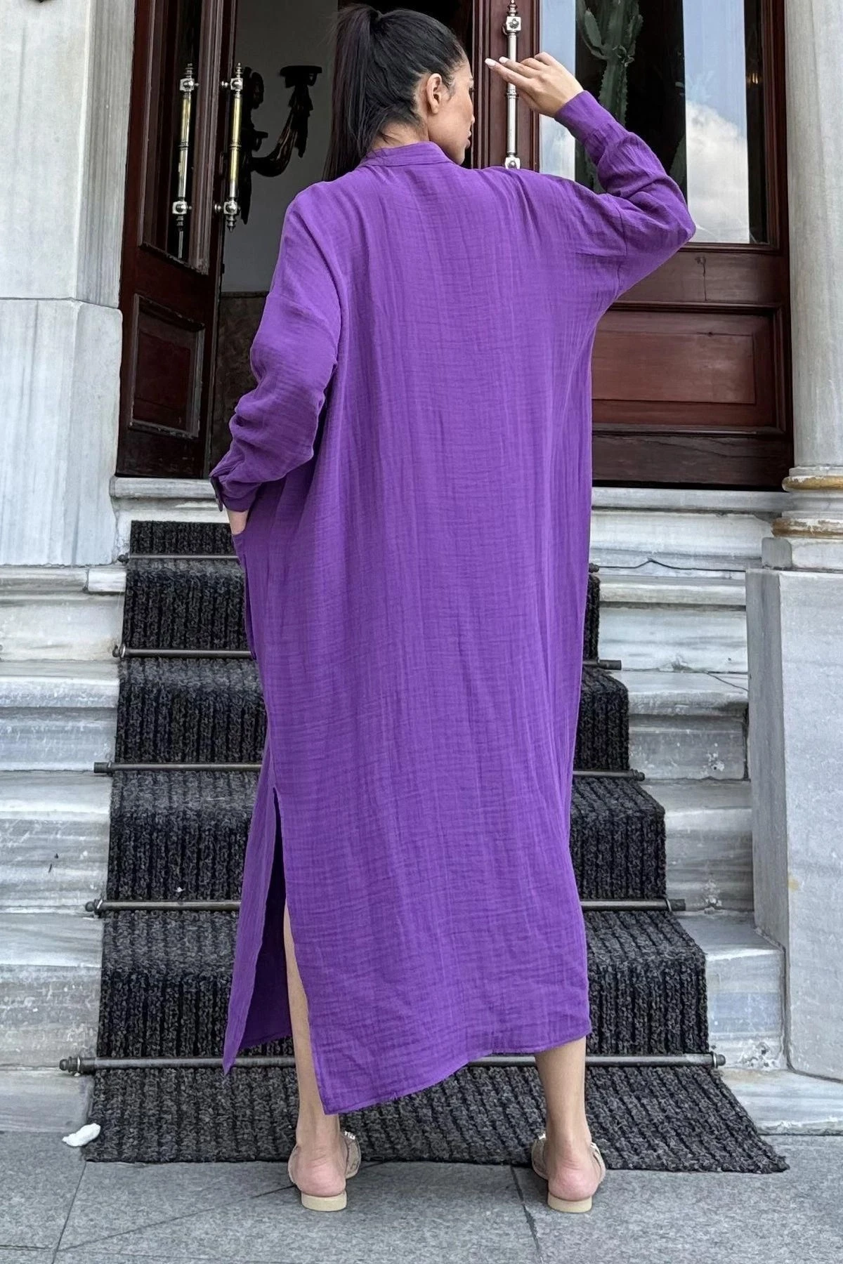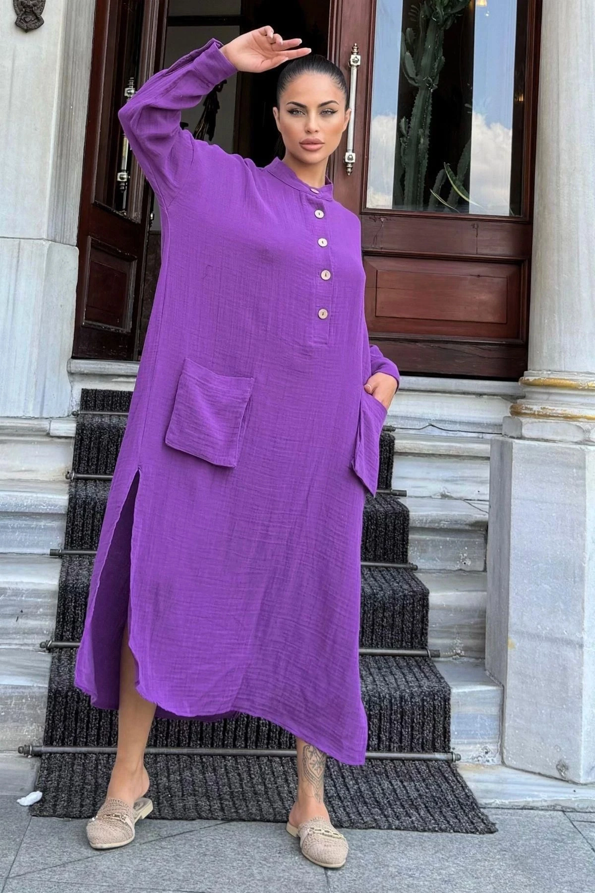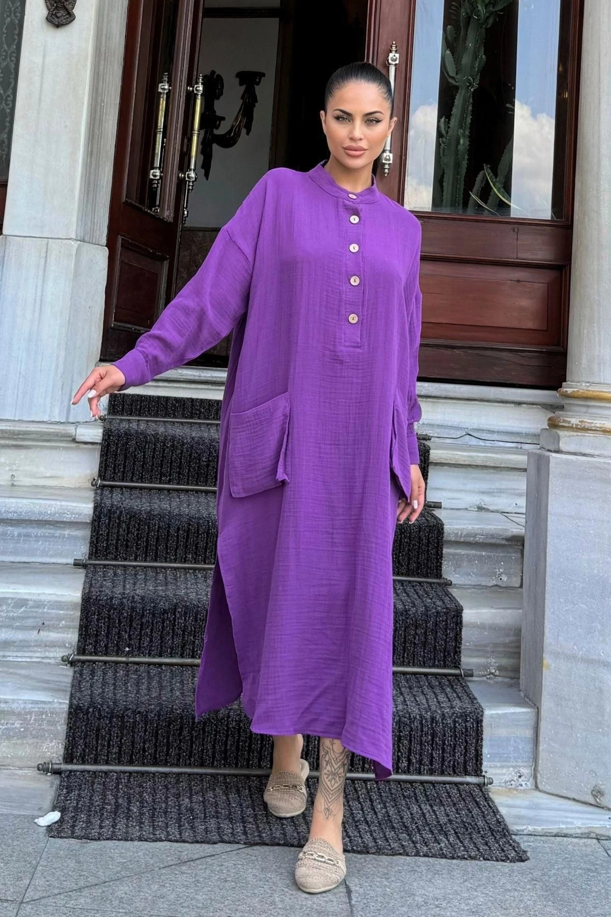 Kadın Mor Oversize, Rahat Kesim, Cepli, Uzun Müslin Elbise