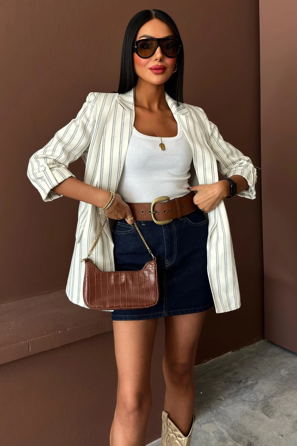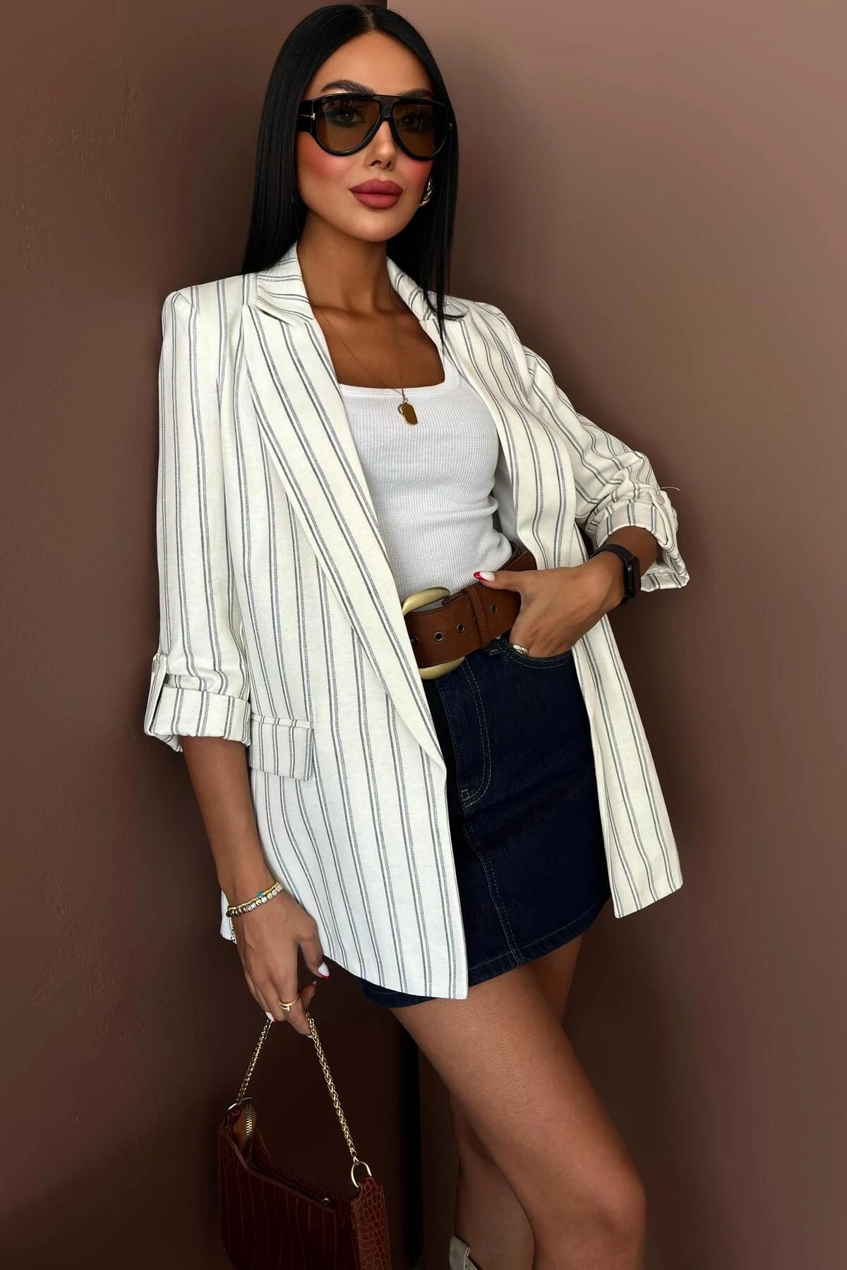 Kadın MULTI Çizgili Kruvaze Blazer Ceket