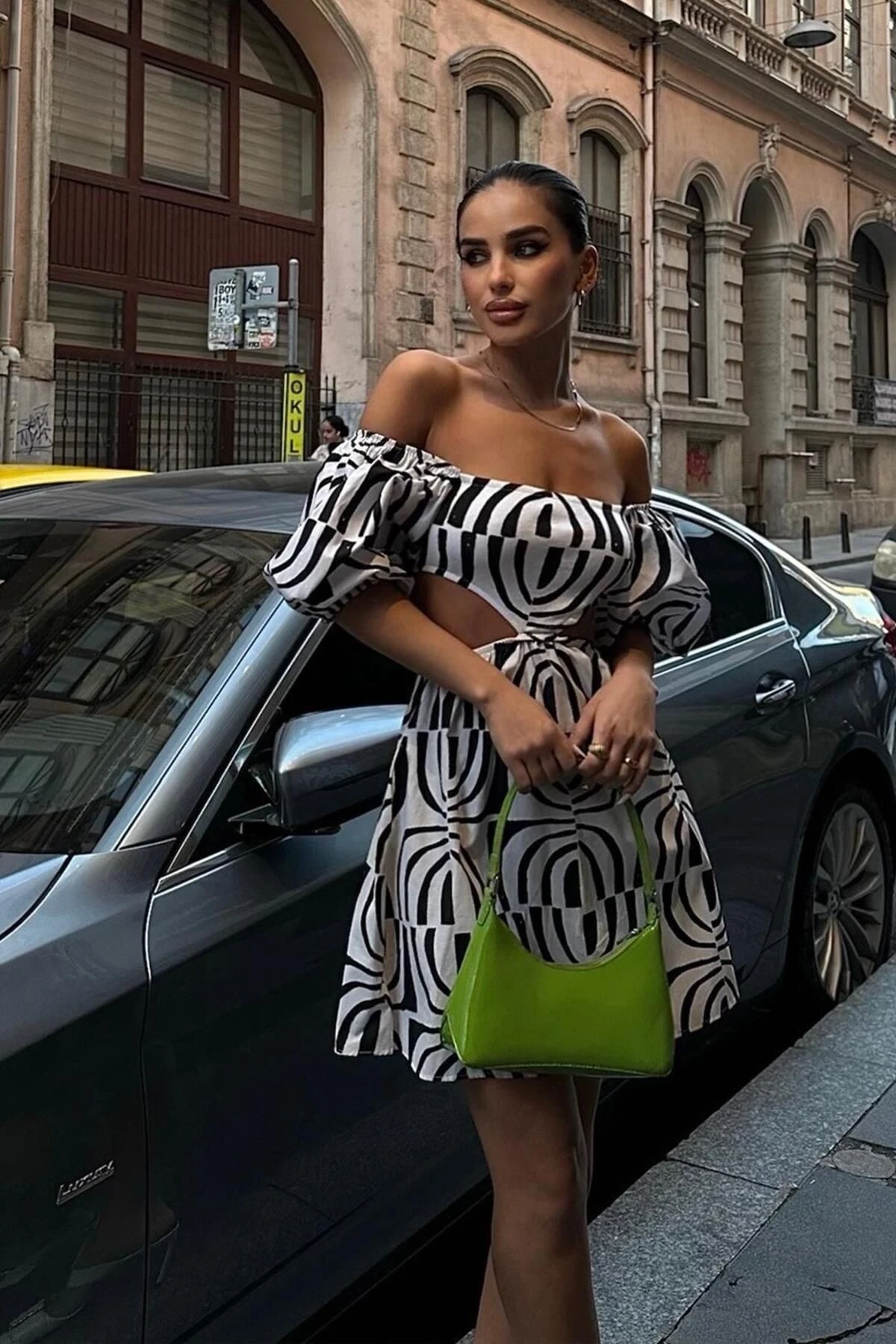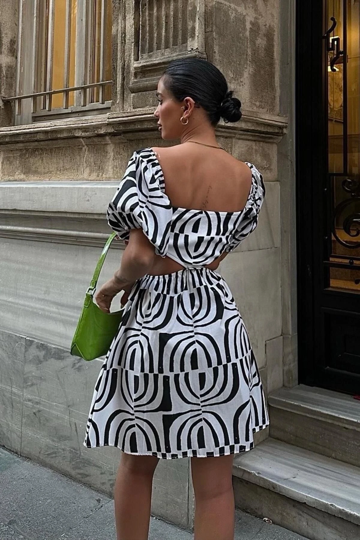 Kadın MULTİ Cotton Dokuma Mini Desenli Elbise