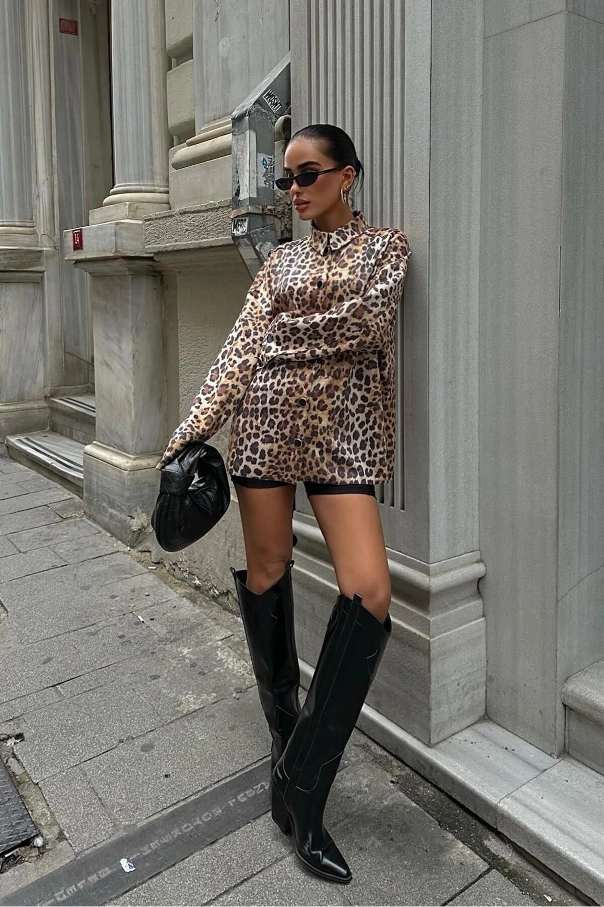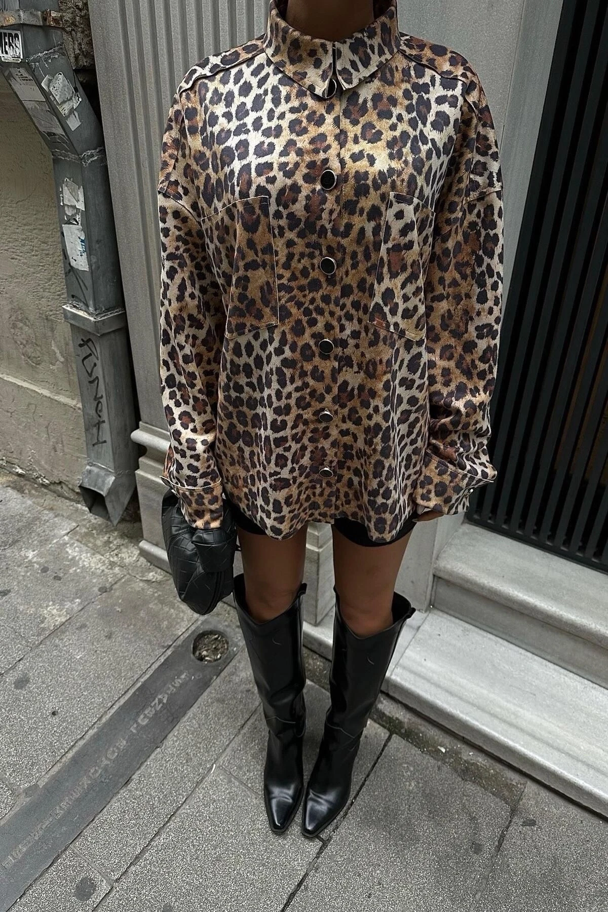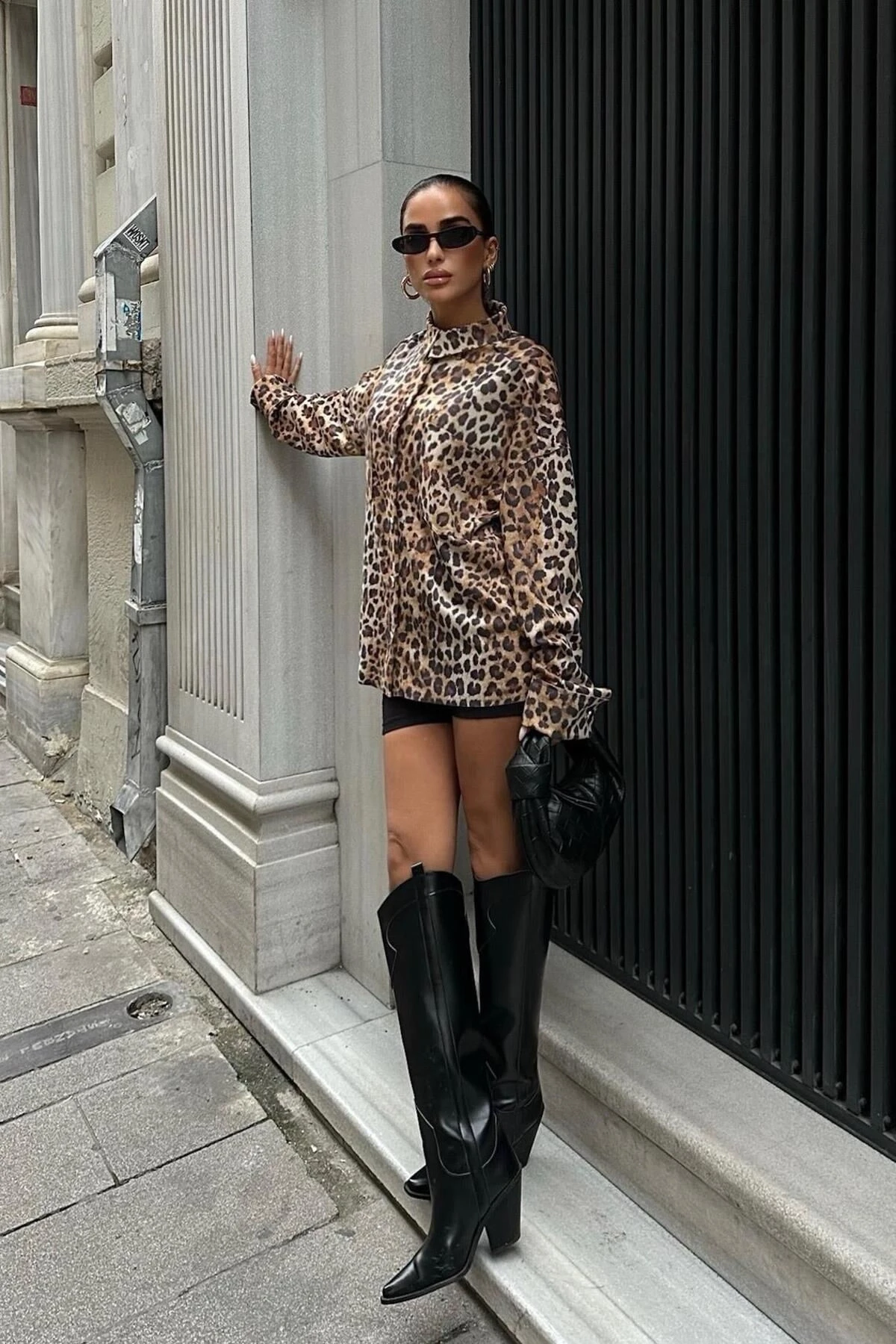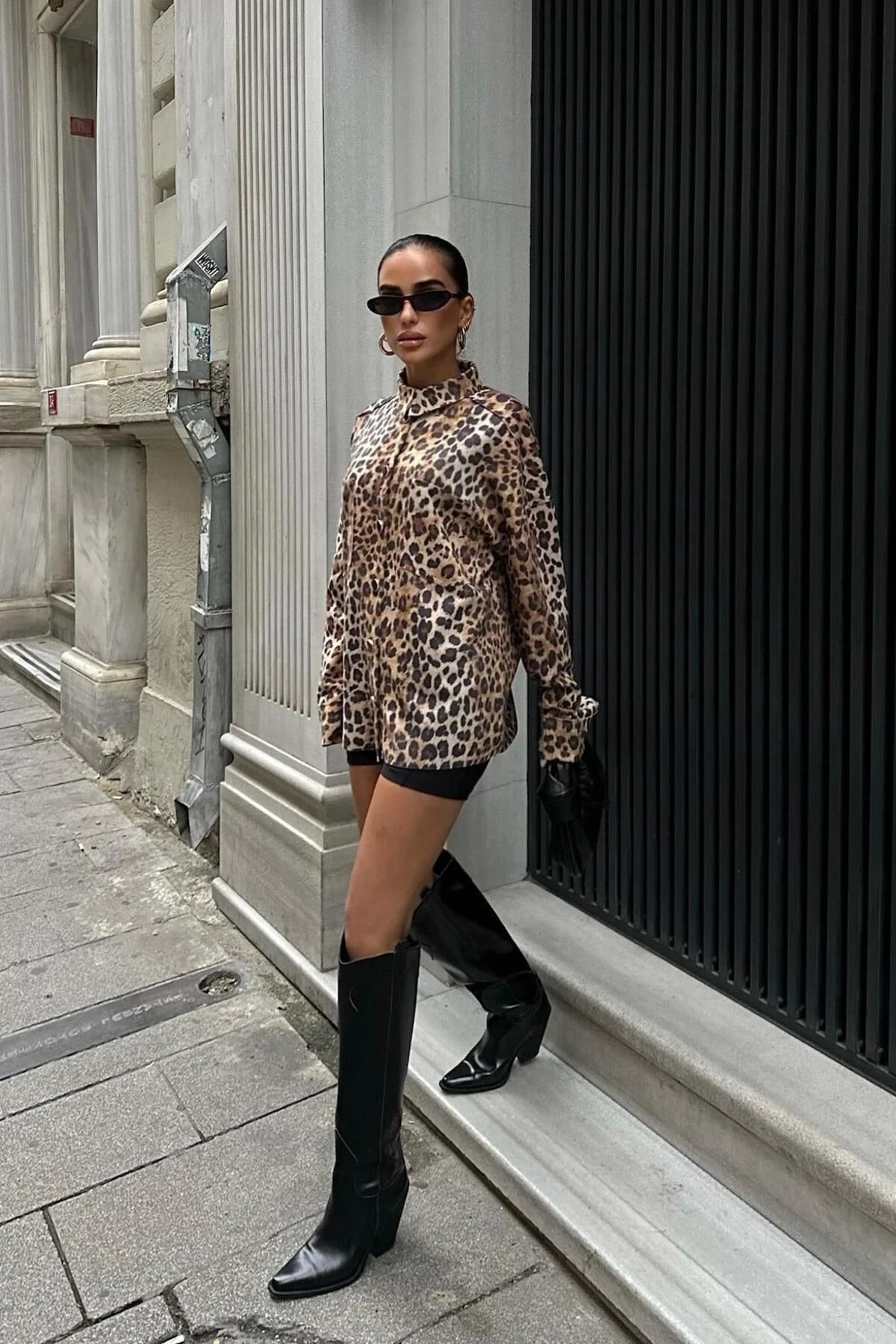 Kadın Multi Desenli Uzun Cotton Dokuma Gömlek Yaka Gömlek