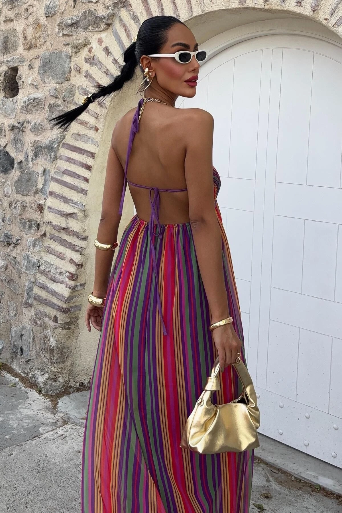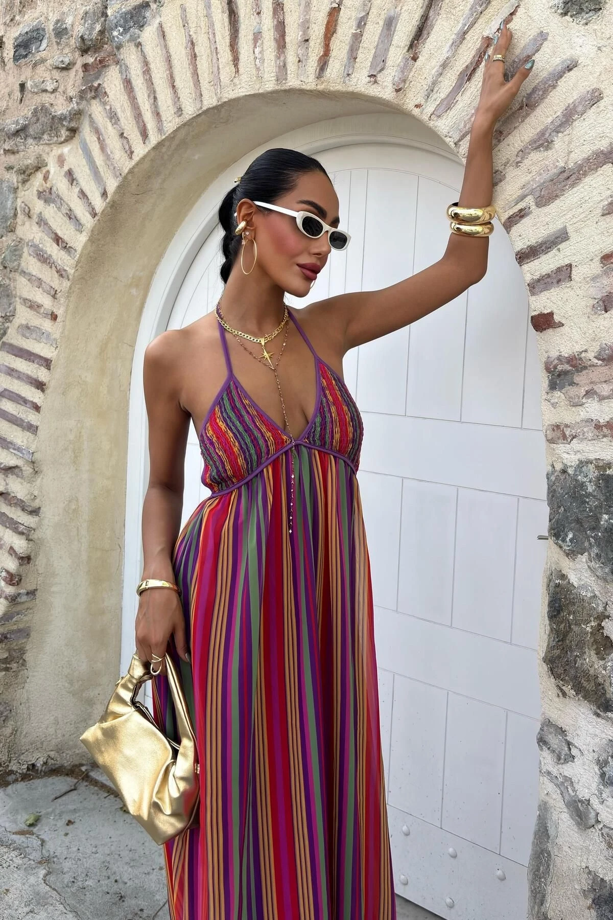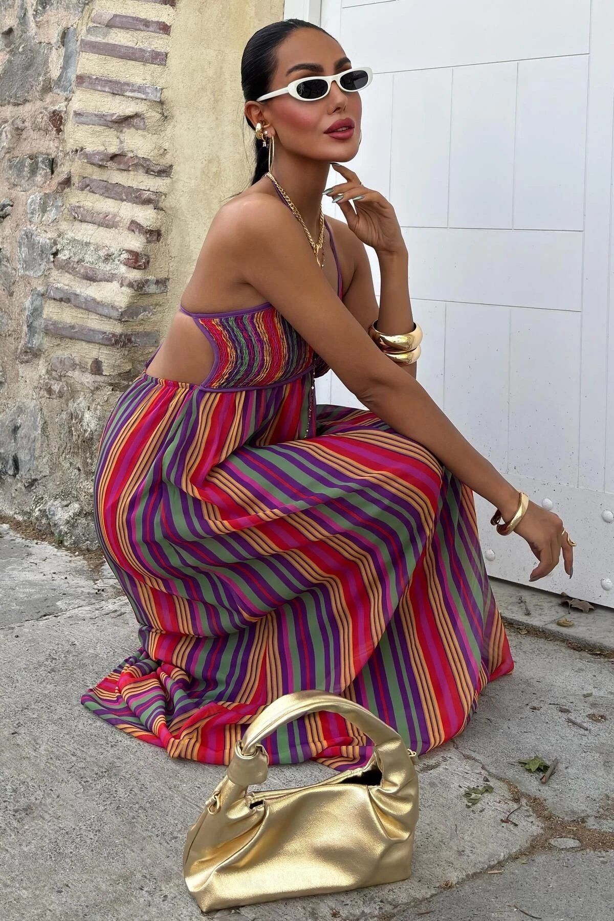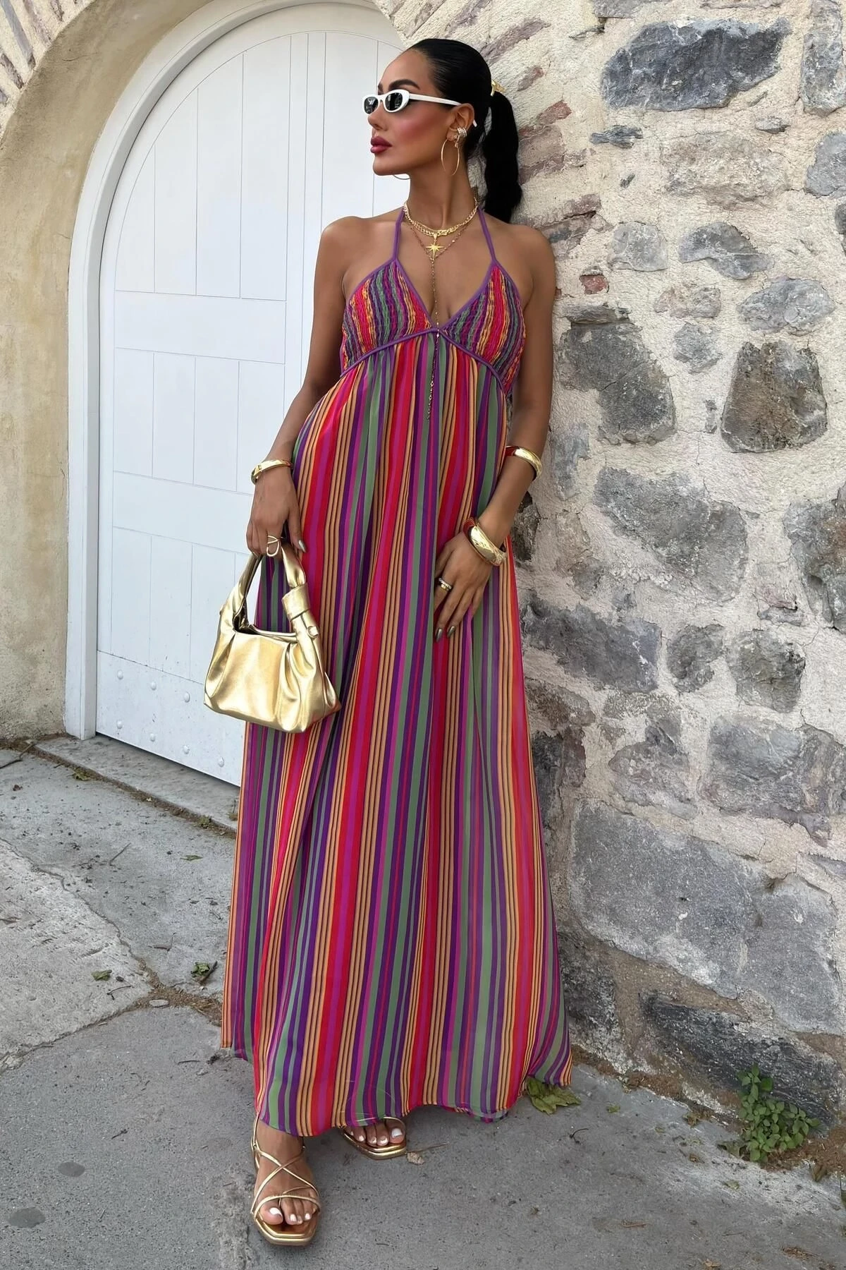 Kadın Multi Renkli Maxi Askılı Viskon Elbise