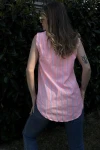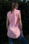Kadın Oranj Çizgili, Dokulu Yazlık Kumaş, Yarım Patlı, Sıfır Kollu Bluz