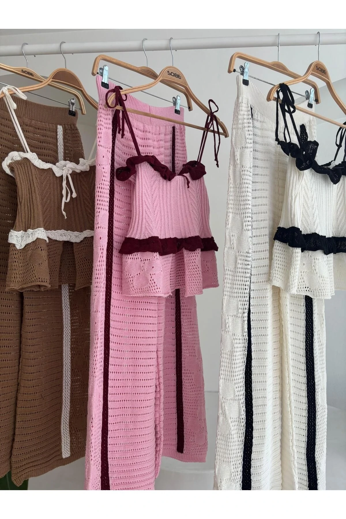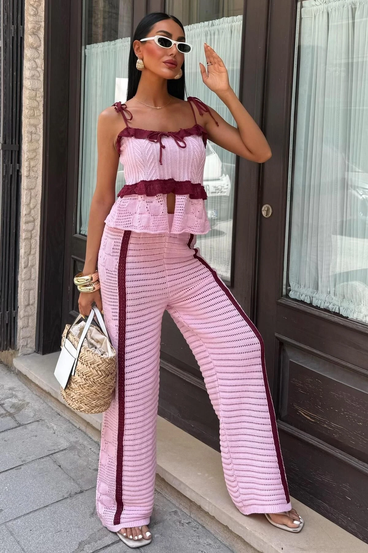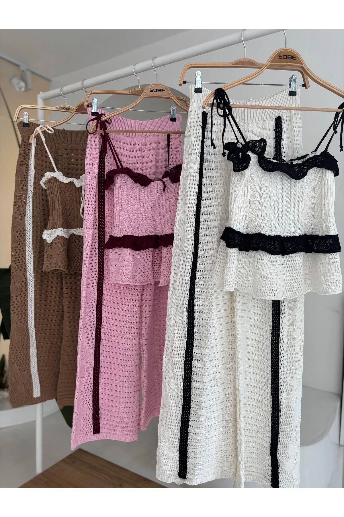 Kadın Pembe Askılı Pamuk Karışımlı İkili Triko Takım