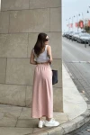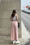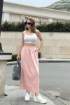 Kadın Pudra Beli Lastikli, Rahat Kalıp, Cepli Uzun Etek
