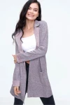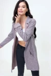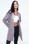 Kadın Pudra Dokulu Çift Cep Uzun Ceket Hırka Uzun Kol - Tesettüre Uygun