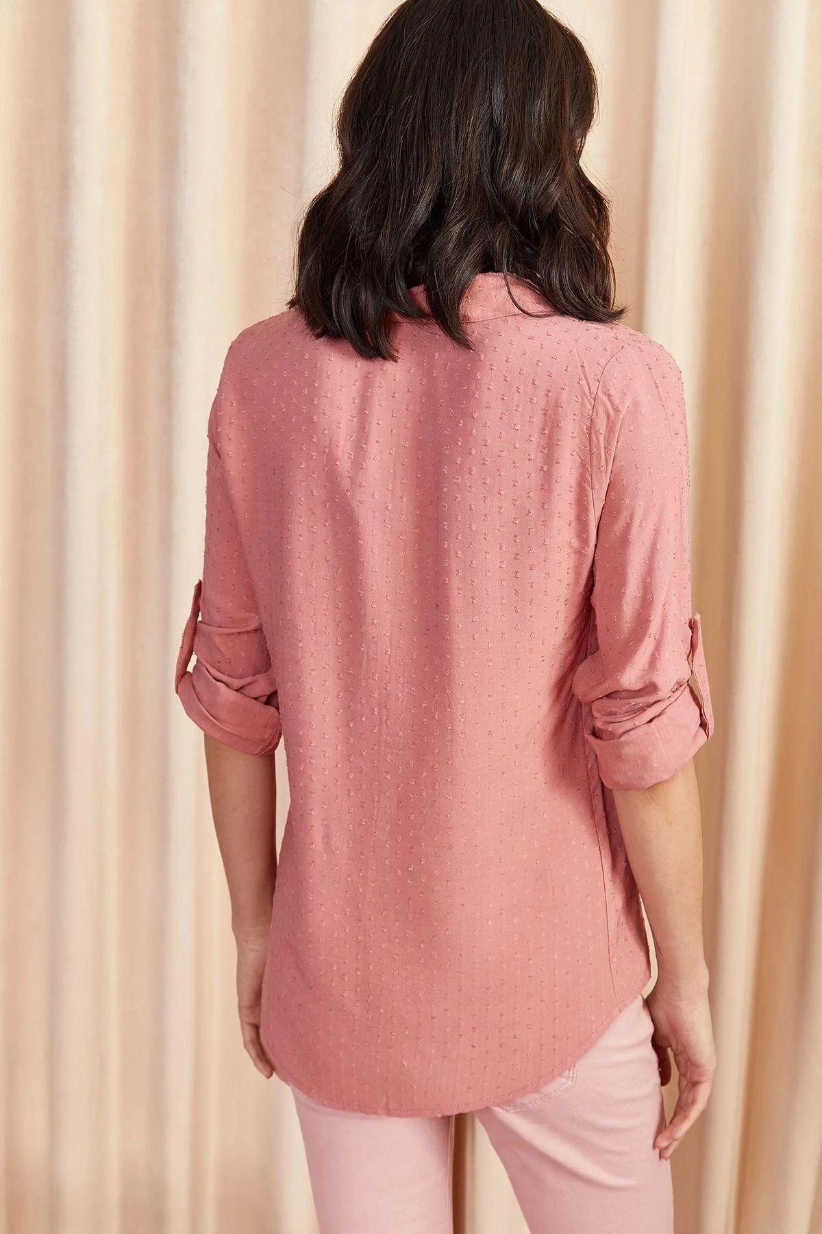 Kadın Pudra Klasik Yaka Uzun Kol Basic Regular Kesim Standart Boy Gömlek