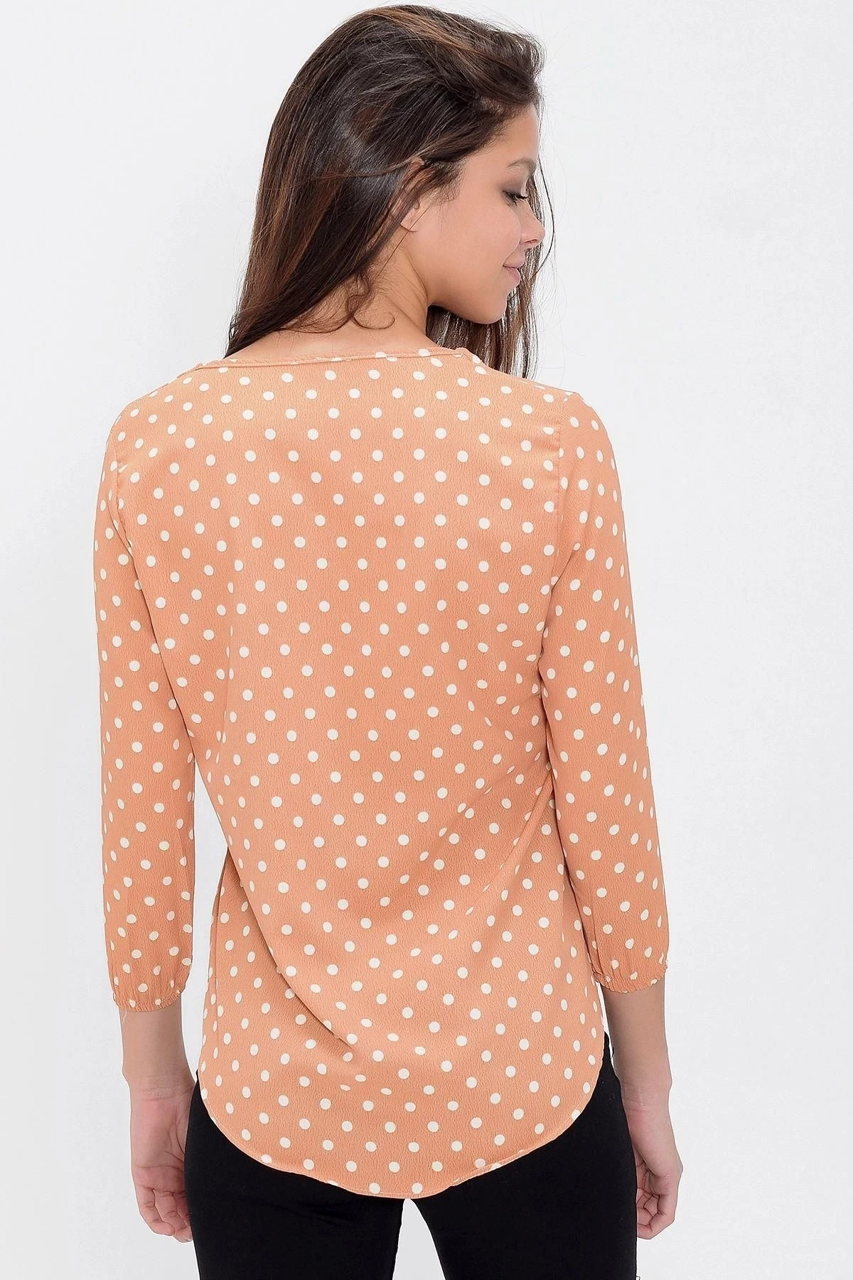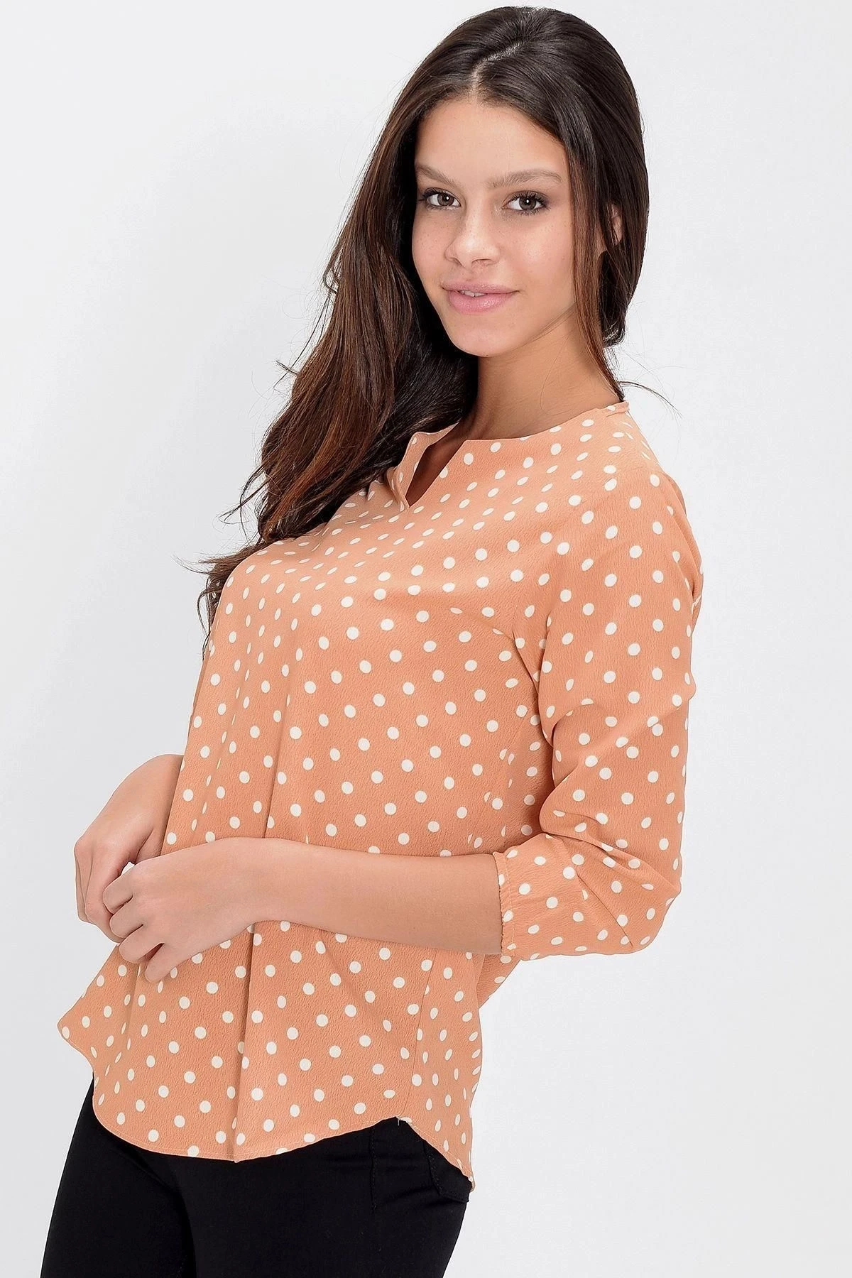 Kadın Pudra Yakası Yırtmaçlı Krep Bluz Truvakar Kol Puantiyeli ve Giy Çık - Tesettüre Uygun