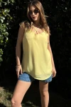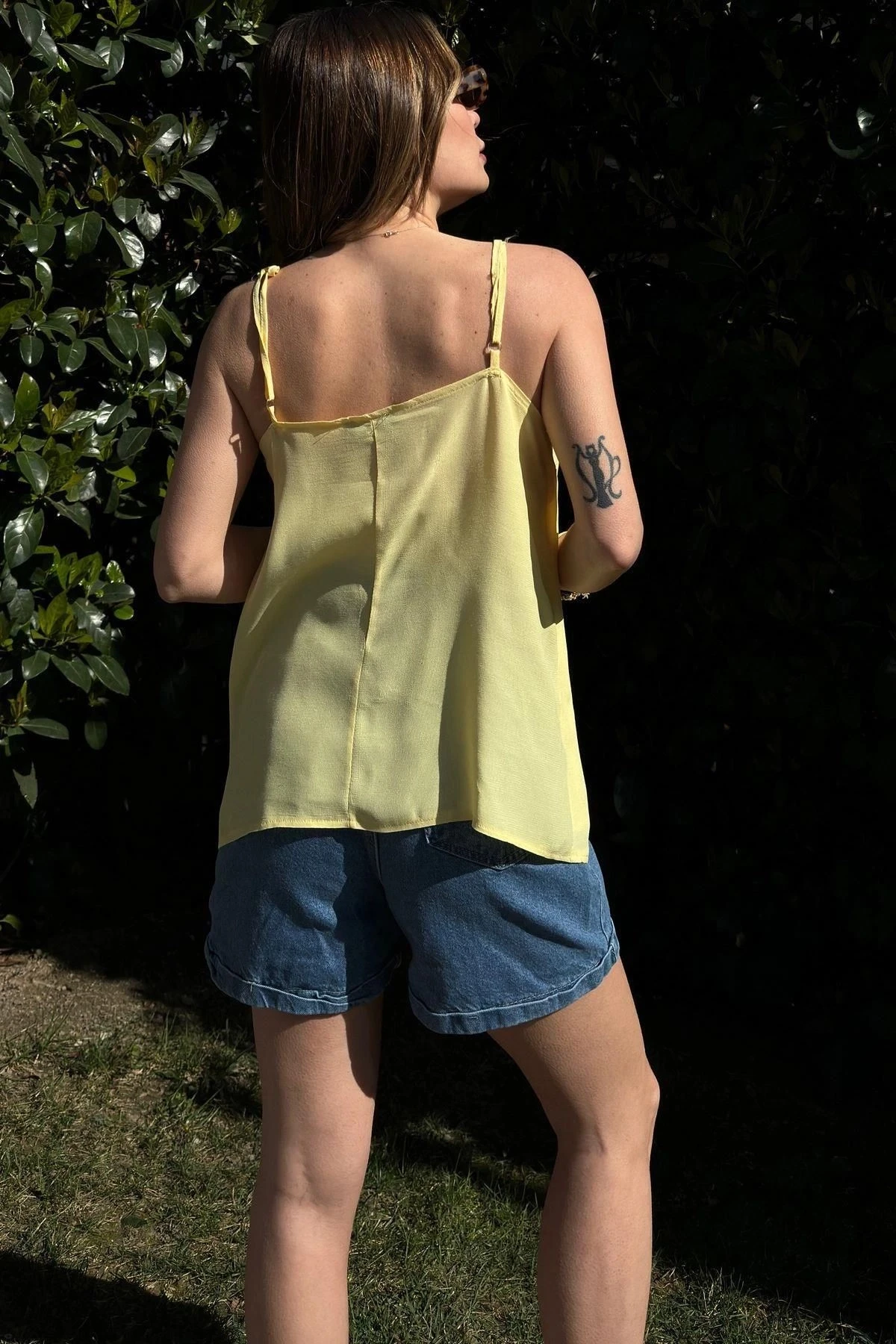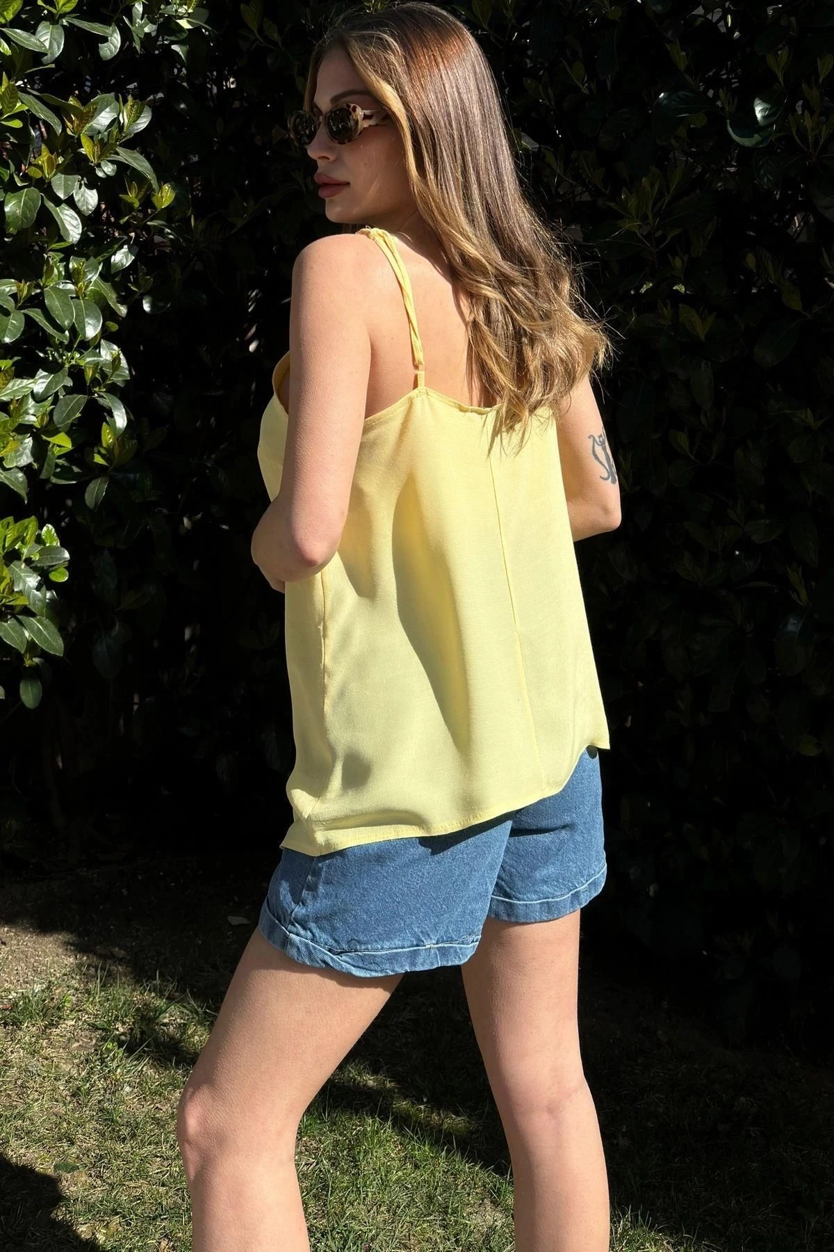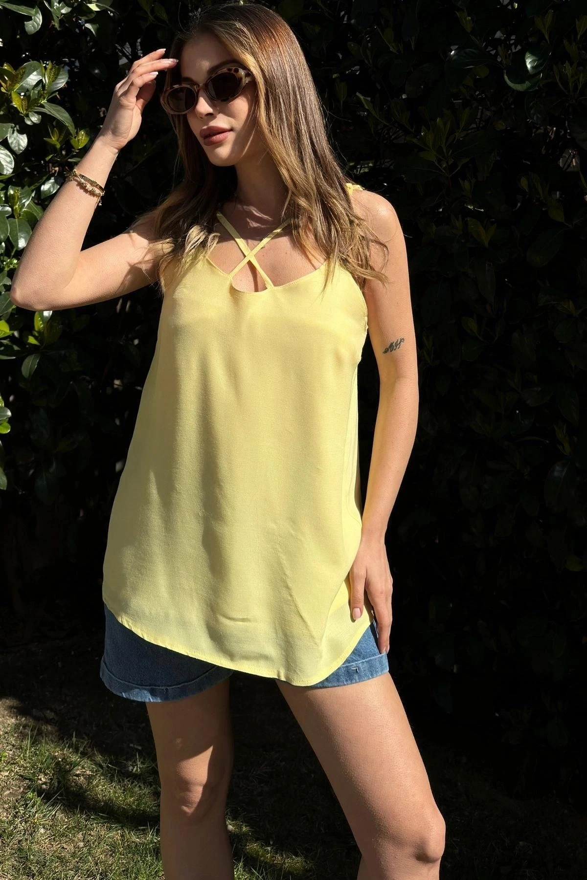 Kadın Sarı Çapraz İpli Yaka, Salaş Kesim, Askılı Bluz