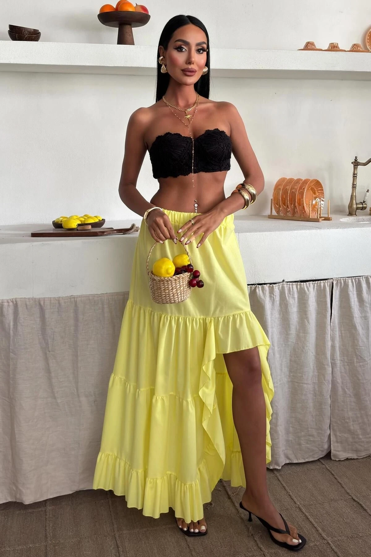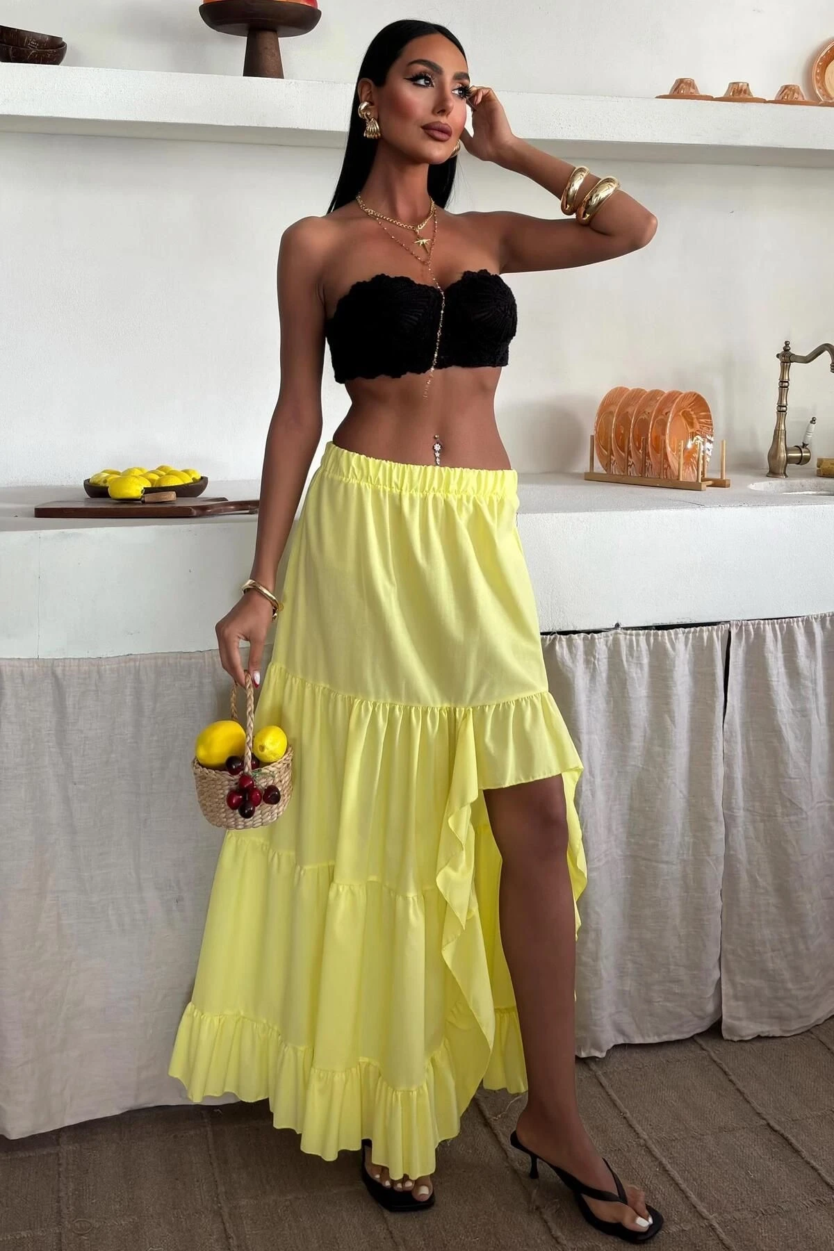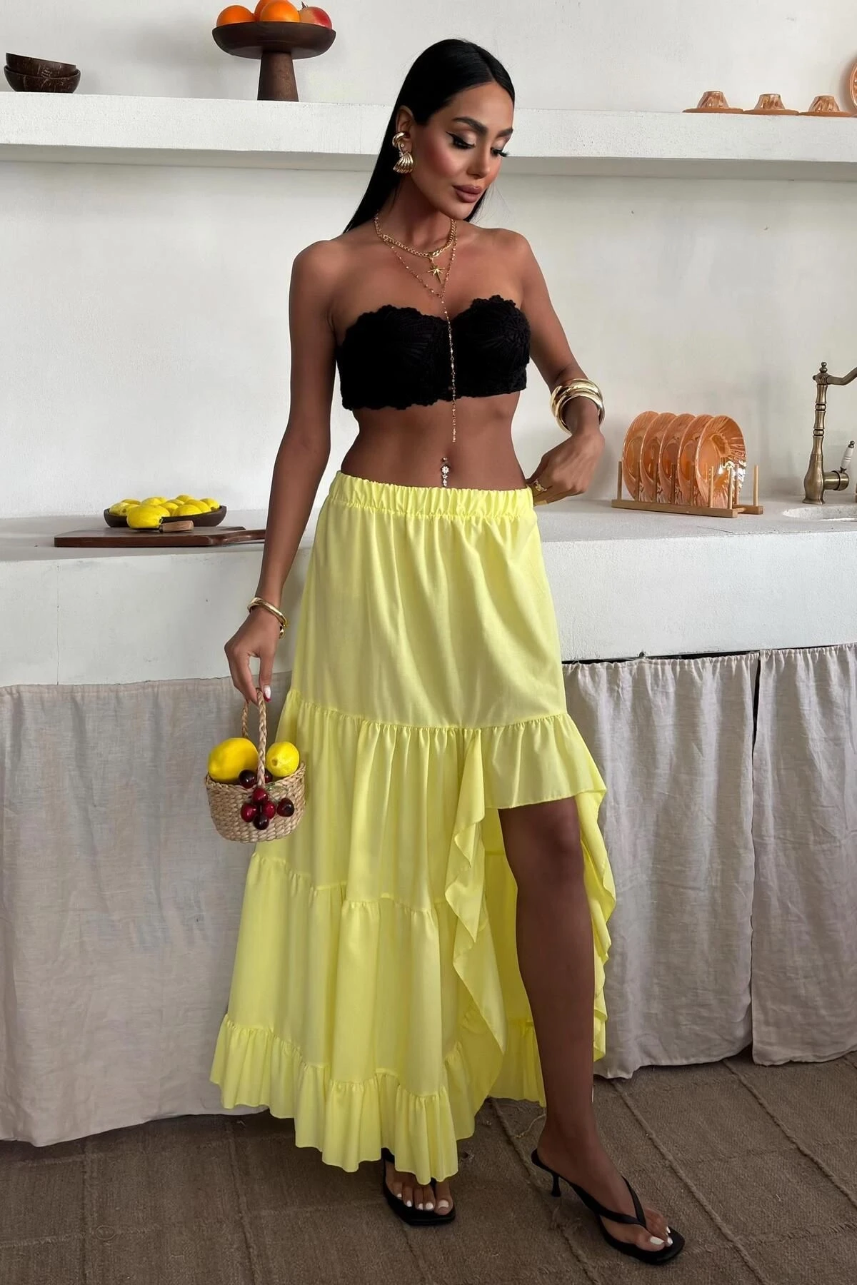 Kadın Sarı Dokuma Uzun Yırtmaçlı Etek