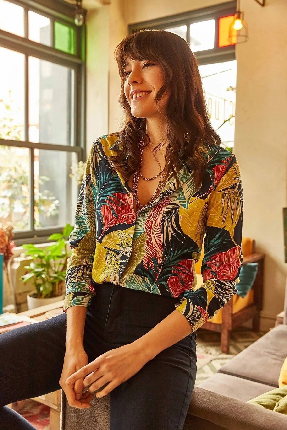 Bu sarı renkli gömlek, yüksek kaliteli üretimi ve şık yaprak desenli regular kesimiyle dikkat çekiyor.; Gömleğin kumaşı %100 polyesterden üretilmiştir, bu da dayanıklılığı ve kolay bakım özelliği sağlar.; Gömleğin sarı rengi, canlı ve enerjik bir görünüm sunar.; Sarı, pozitiflik ve neşeyle ilişkilendirilen bir renktir, bu nedenle gömleği giydiğinizde etrafınızdakilere olumlu bir enerji yayabilirsiniz.; Kaliteli üretimi sayesinde, bu gömlek uzun süre dayanıklı ve şeklini korur.; Yaprak desenli regular kesim, modern ve şık bir görünüm sunar ve herhangi bir mekanda şık bir tarz yaratmanıza olanak tanır.; Gömleğin kumaşı olan %100 polyester, rahat bir giyim deneyimi sunar.; Polyester, hafif ve nefes alabilen bir malzemedir, bu da terlemeyi azaltır ve gün boyu serin ve konforlu kalmanızı sağlar.; Aynı zamanda, polyester kolaylıkla kırışıklıkları gidermek için ütü gerektirmez, böylece daha az zaman harcayarak her zaman düzgün bir görünüm elde edebilirsiniz.; Bu gömlek, herhangi bir şık etkinlikte veya günlük hayatta şık ve rahat bir seçenek sunar.; Yaprak deseni ve sarı renk, tarzınıza canlılık ve modernlik katarak sizi diğerlerinden farklı kılar.; Özellikle özel günlerde veya sosyal etkinliklerde bu gömleği tercih ederek stilinizi ön plana çıkarabilirsiniz.; Bu sarı renkli, yaprak desenli regular kesimli uzun kollu gömlek, tarzınıza renk, şıklık ve kalite katmak için mükemmel bir seçenektir.; Herhangi bir mekanda dikkat çekmek istediğinizde güvenle tercih edebilirsiniz.