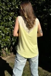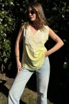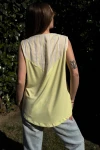Kadın Sarı Kruvaze V Yaka, Kolsuz, Color Block, Salaş Bluz