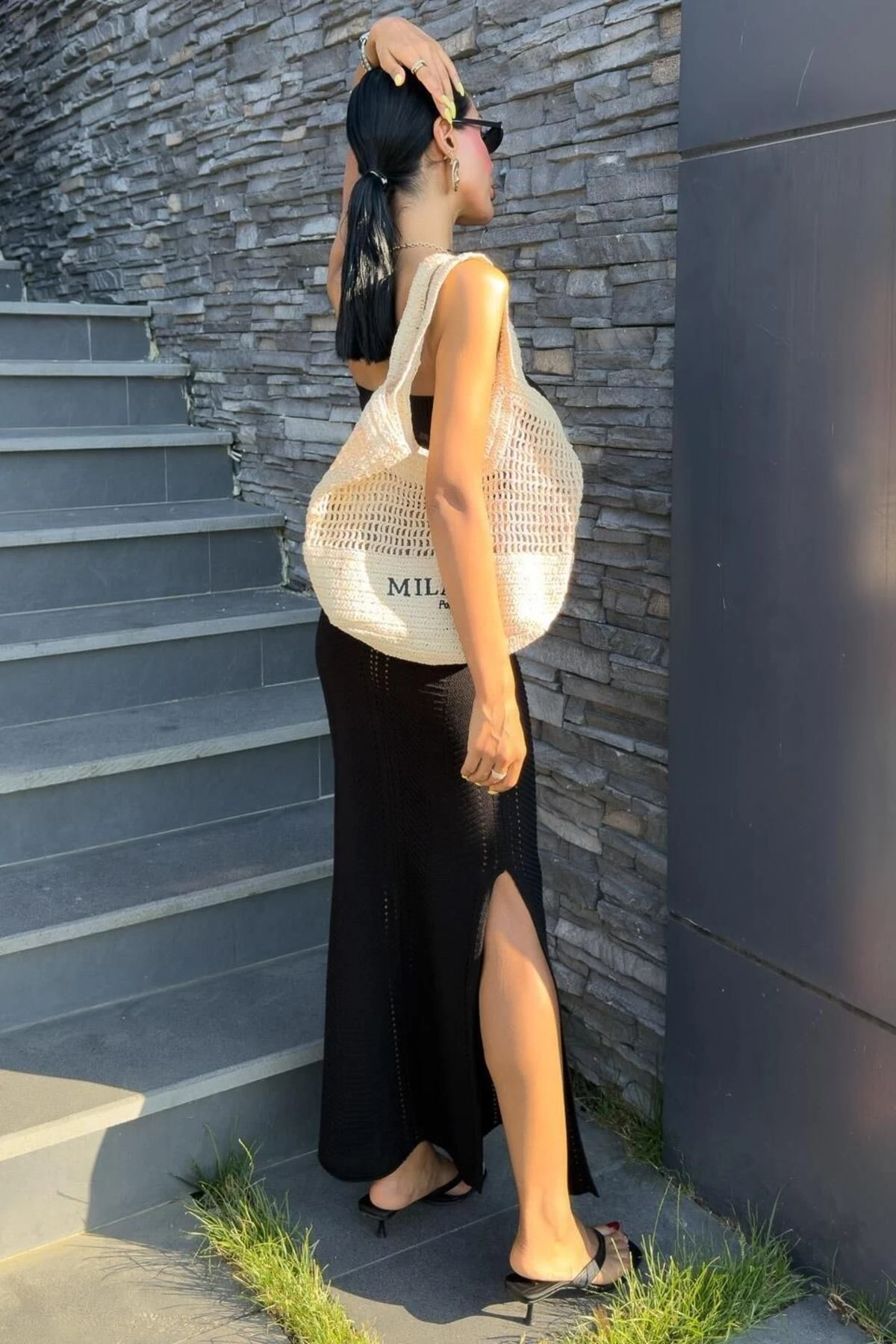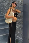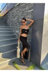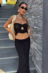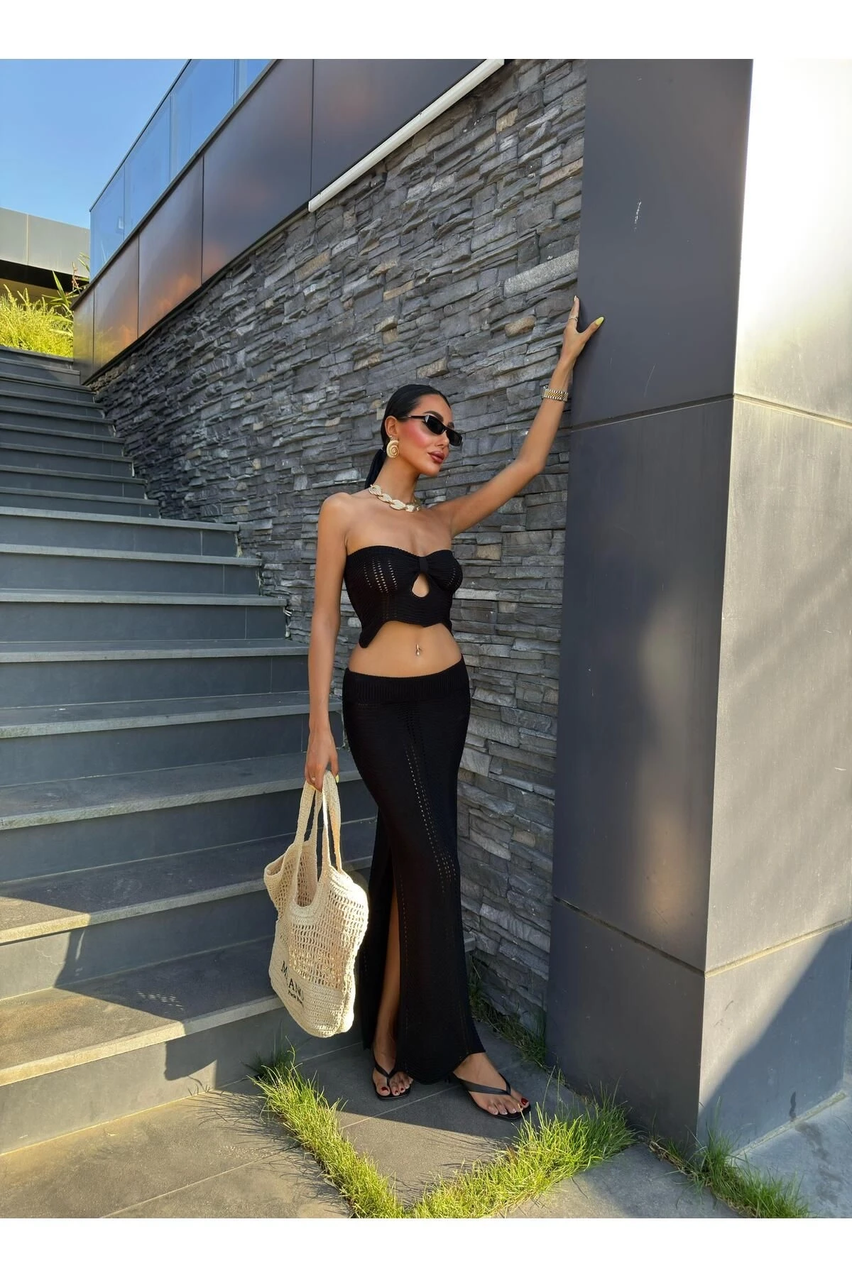 Kadın Siyah Akrilik Kolsuz Straplez Triko Takım