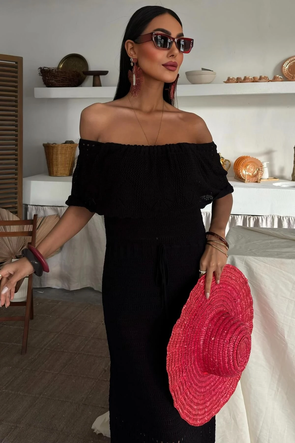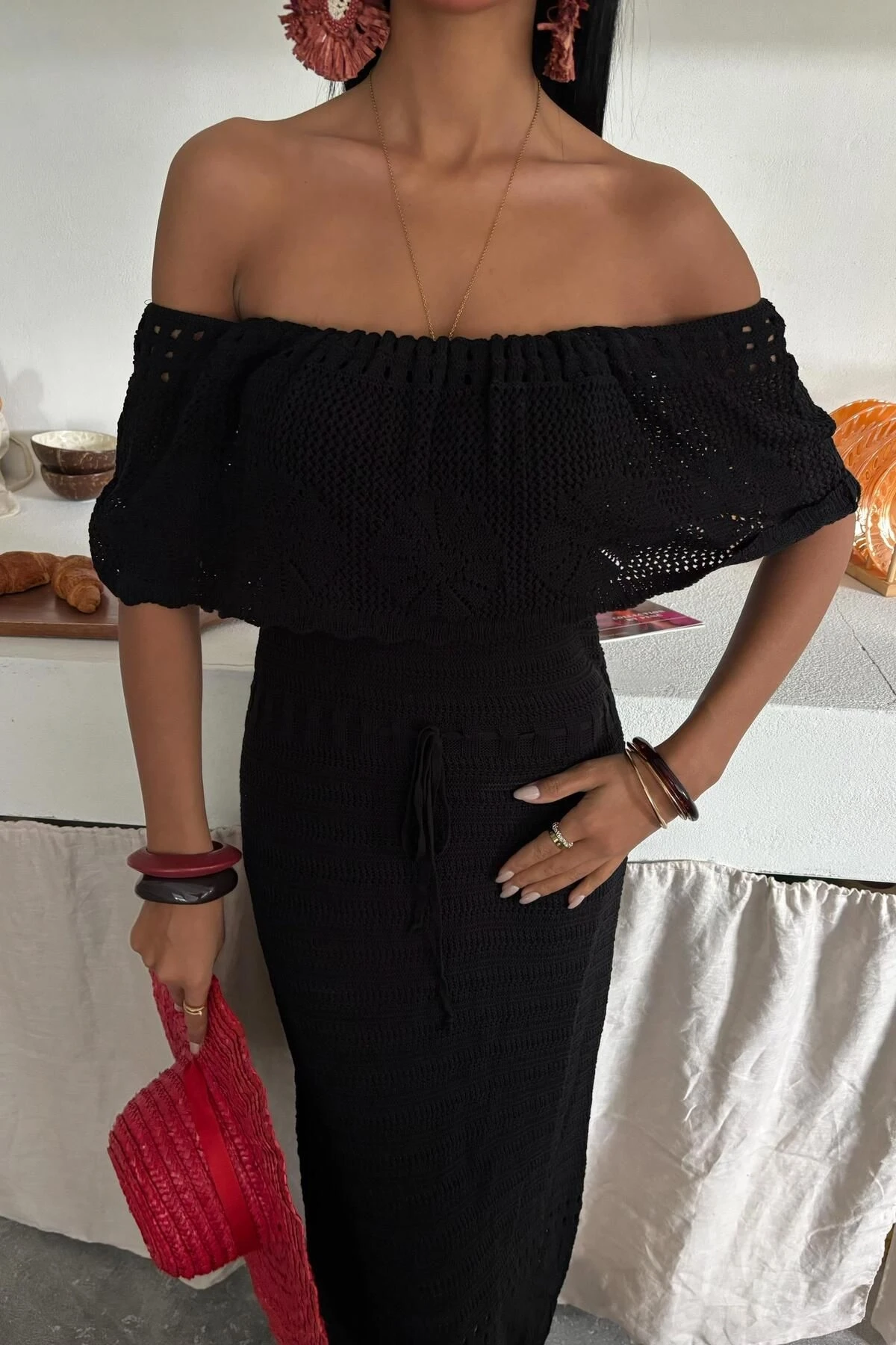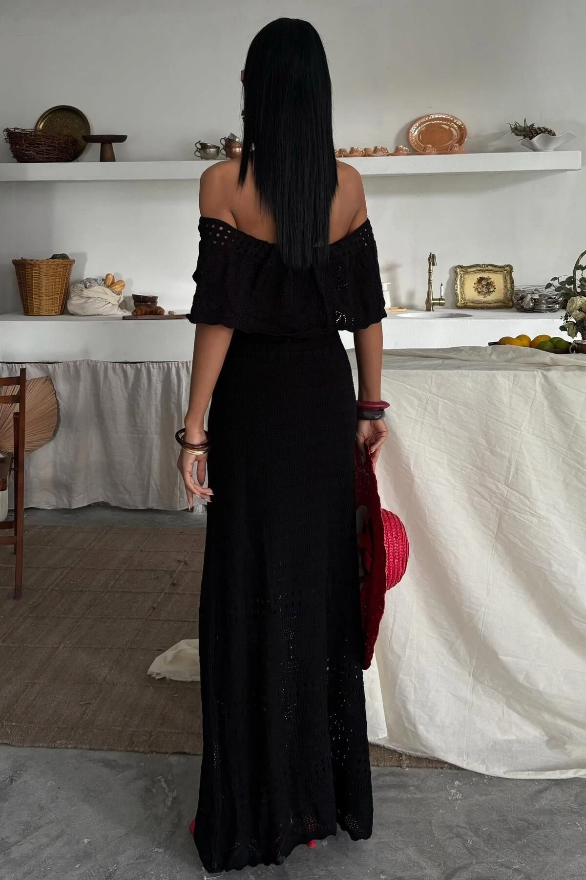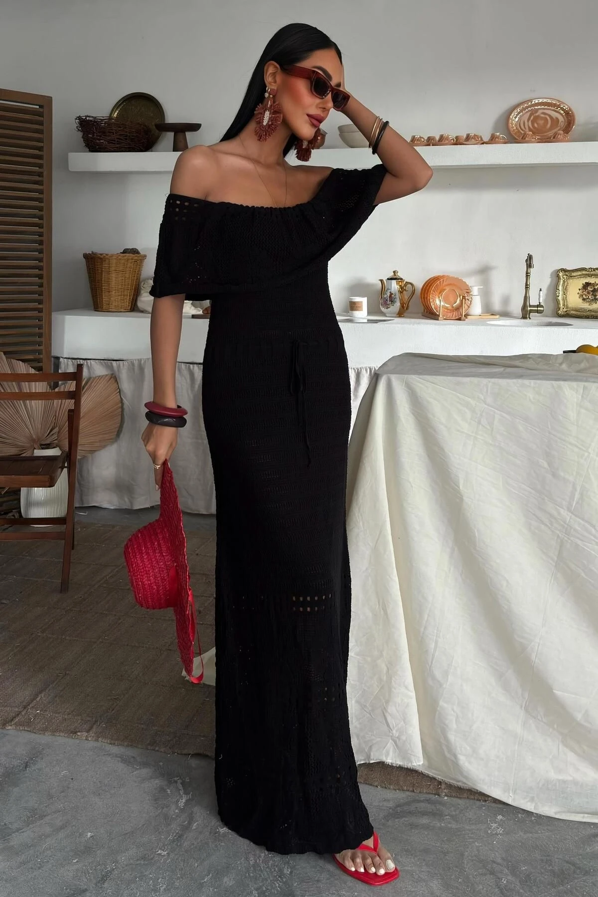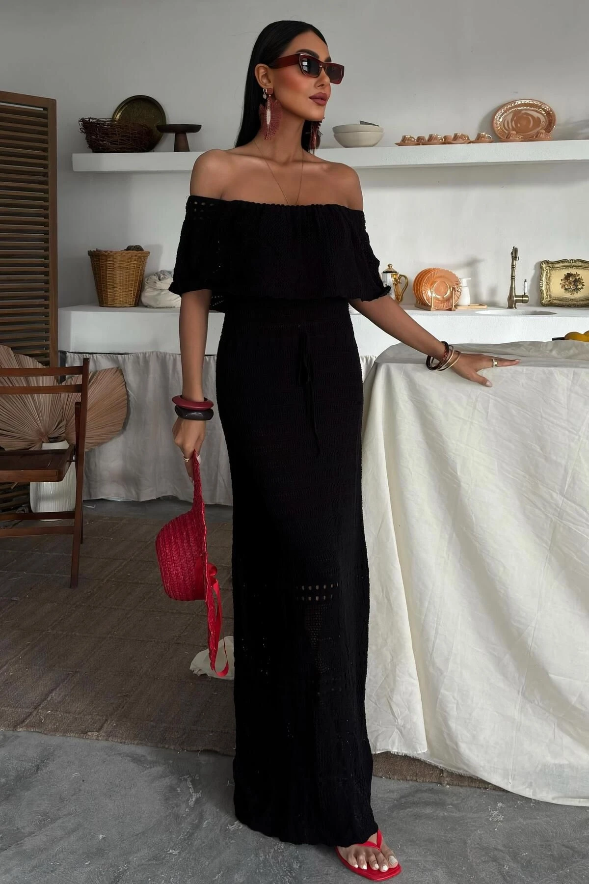 Kadın Siyah Akrilik Triko Straplez Uzun Elbise