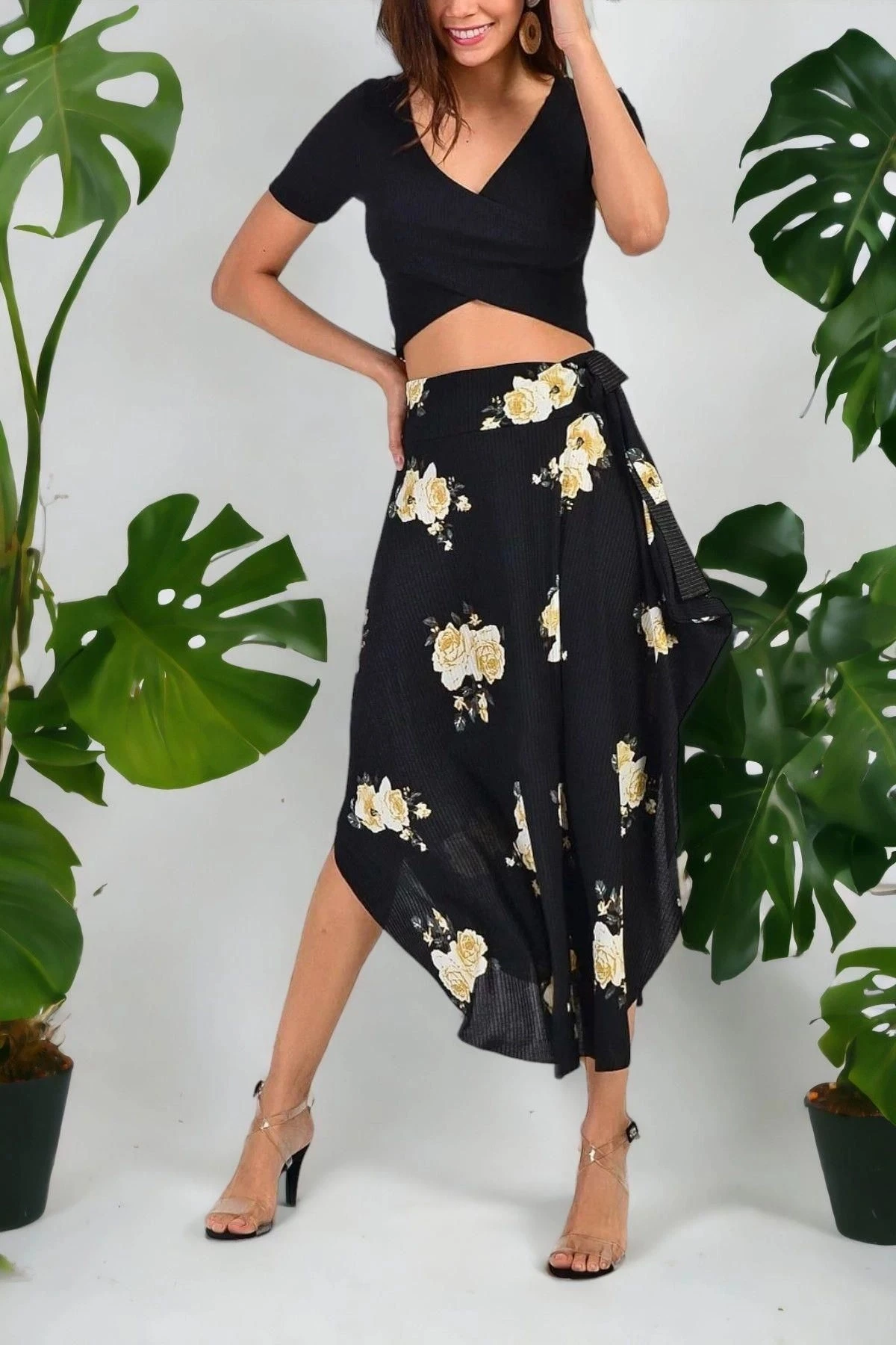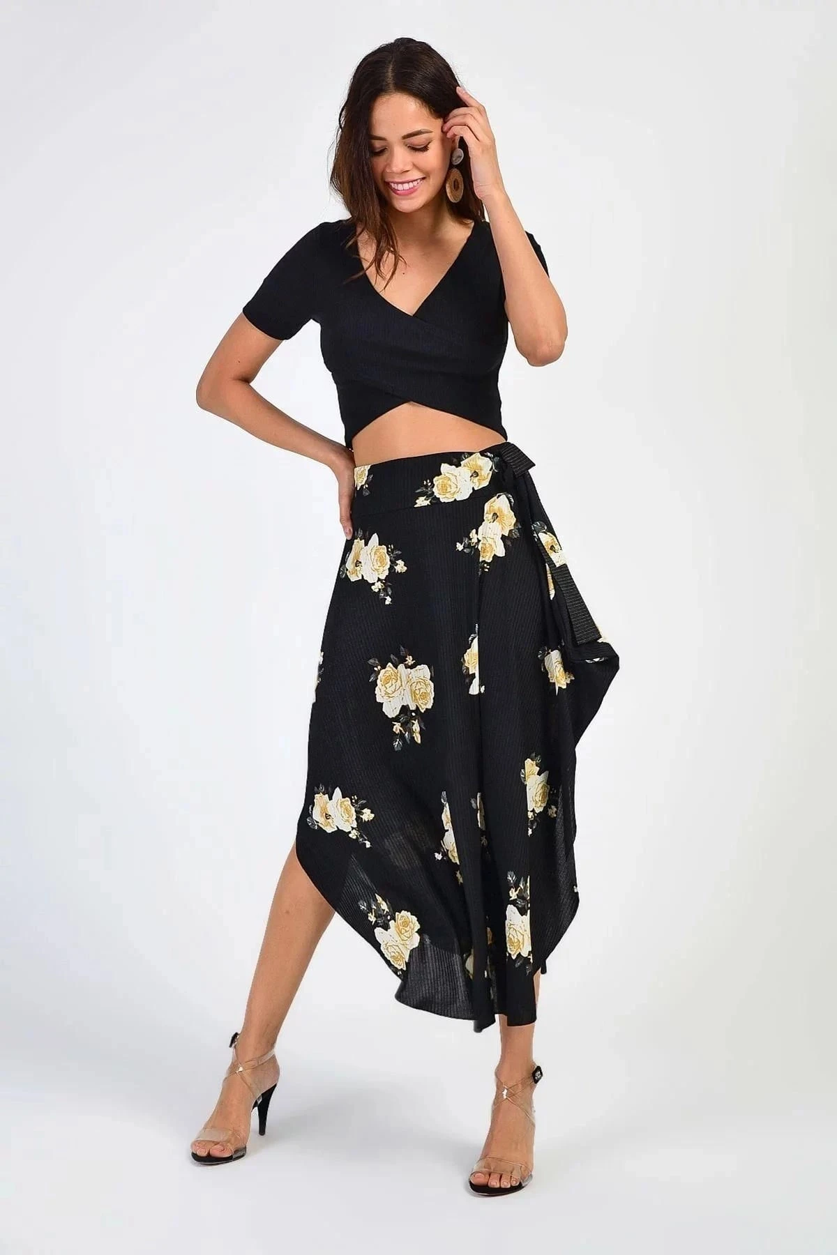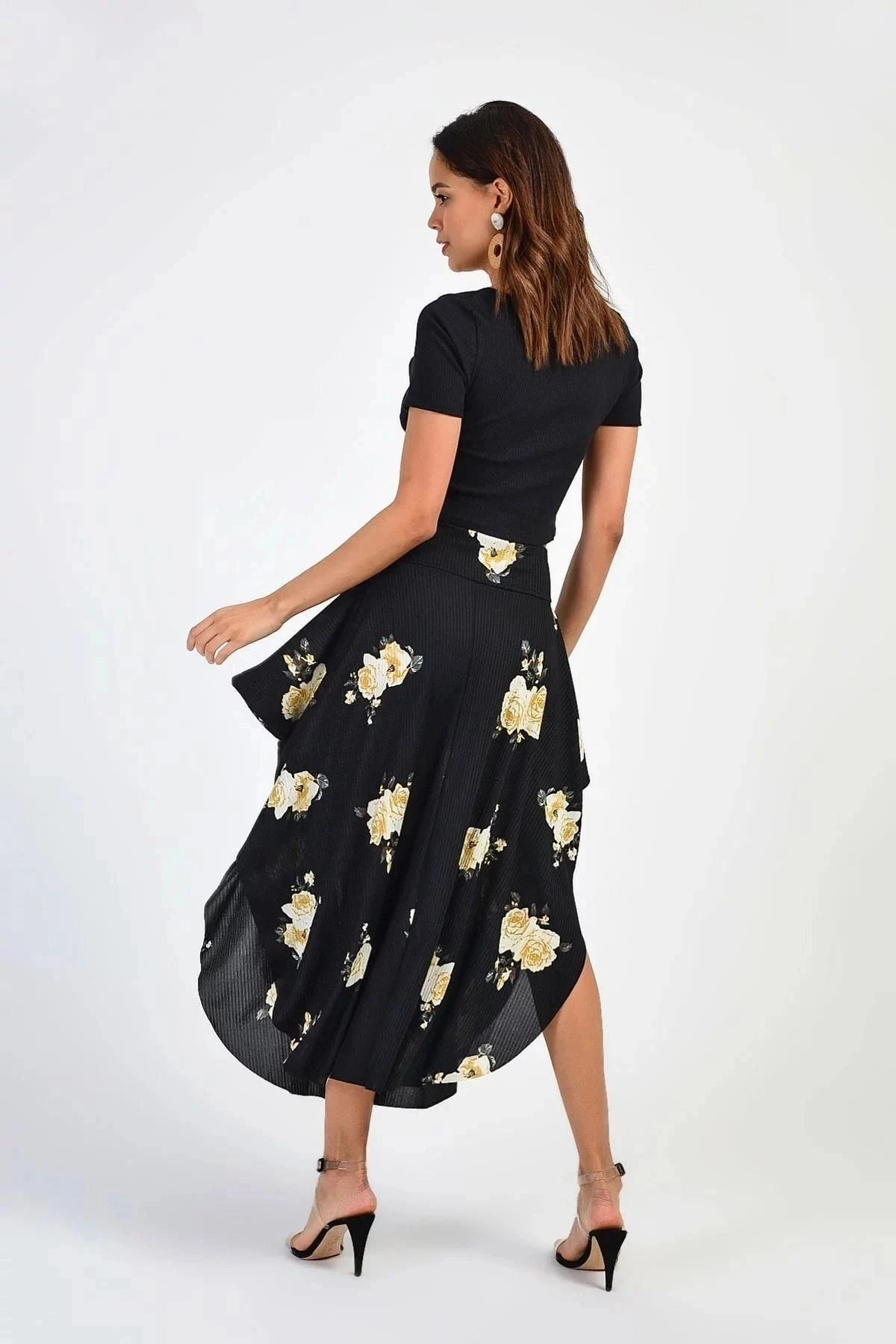Kadın Siyah Asimetrik Desenli, Kaliteli Kumaş Rahat Kesim, Etek.