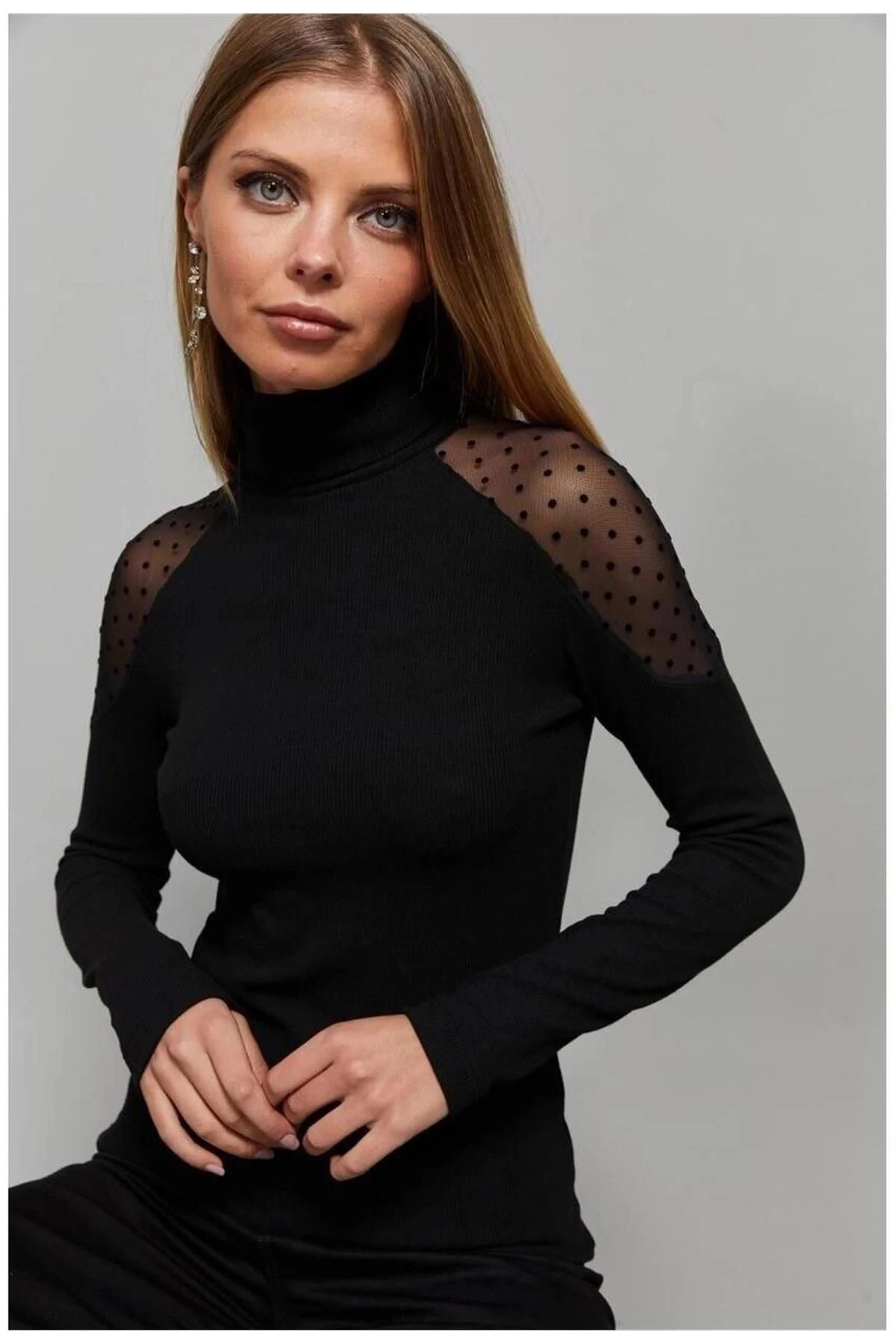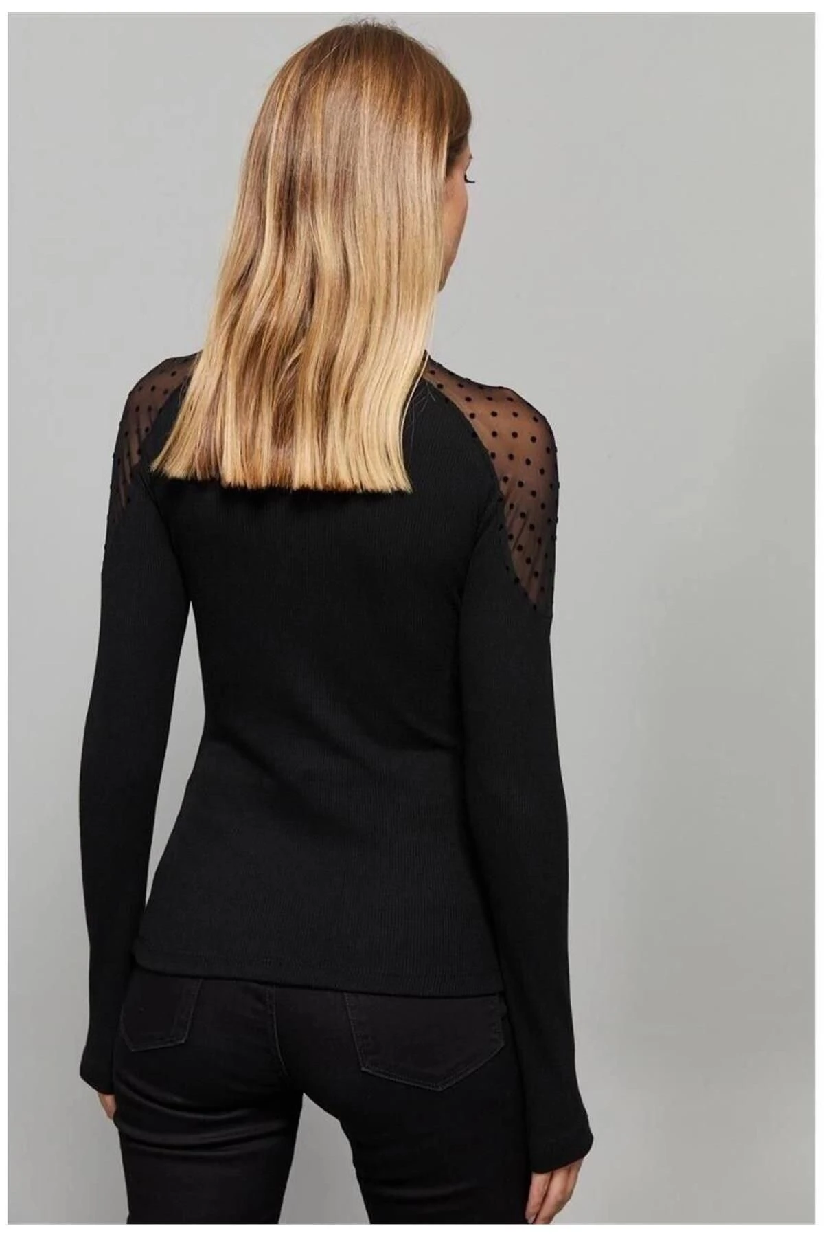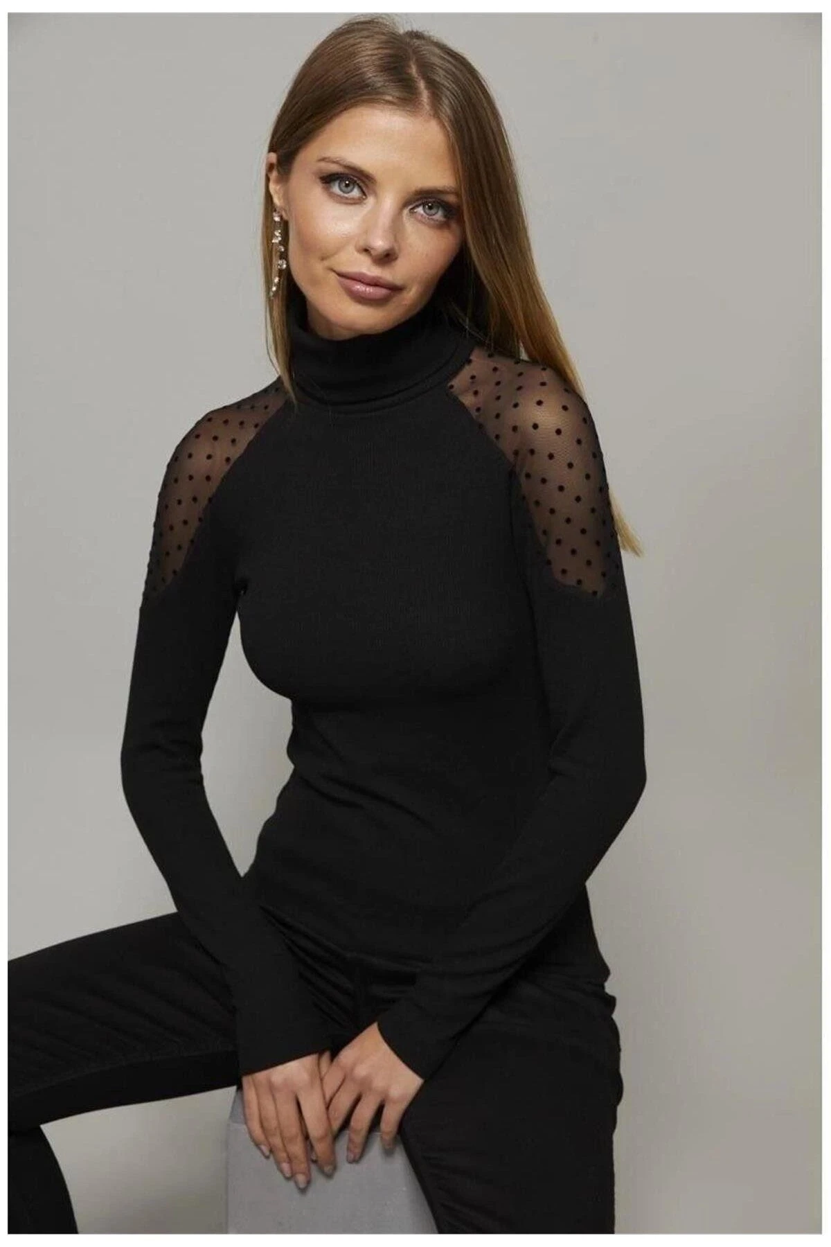 Bu Siyah Renk Balıkçı Yaka Dantelli Omuzlu Uzun Kol Bluz, zarif ve modern bir tarzı bir araya getiriyor.; Kesimi düzgün ve standart boyutta olup her bedene uyum sağlar.; Bluzun kumaş içeriği, %50 polyester ve %50 pamuktan oluşur, böylece konfor ve dayanıklılık sunar.; Siyah renk, şıklığı ve zarafeti simgelerken aynı zamanda zamanın ötesinde bir tarza sahiptir.; Bu bluz, herhangi bir kıyafete kolayca uyum sağlar ve her mevsimde giyilebilir.; Balıkçı yaka, modern ve sofistike bir görünüm sunarken, dantel detaylar omuz bölgesindeki tasarıma zarif bir dokunuş katar.; Uzun kollu tasarımı sayesinde bu bluz, soğuk havalarda sıcaklık ve rahatlık sağlar.; Aynı zamanda kollardaki düz kesim, klasik bir görünüm yaratırken rahat bir hareket özgürlüğü sunar.; Bu bluz, hem günlük hayatta hem de özel etkinliklerde mükemmel bir seçenektir.; Şık bir pantolon veya etekle kombinleyerek işe veya özel davetlere giderken şık bir görünüm elde edebilirsiniz.; Rahat bir kot pantolon veya taytla kombinleyerek daha rahat bir tarz oluşturabilirsiniz.; Kaliteli kumaşı sayesinde, bu bluz uzun süre dayanır ve yıllarca kullanılabilir.; %50 polyester ve %50 pamuk karışımı, yumuşaklık, nefes alabilirlik ve kolay bakım avantajları sunar.; Kolayca temizlenebilir ve uzun süre formunu korur.; Bu Siyah Renk Balıkçı Yaka Dantelli Omuzlu Uzun Kol Bluz, şıklığı, rahatlığı ve dayanıklılığı bir araya getiren mükemmel bir seçimdir.; Kombinleyebileceğiniz farklı tarzlarda ve mevsimlerde giyebileceğiniz çok yönlü bir parçadır.; Gardırobunuzun vazgeçilmez bir parçası olacak!