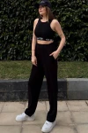 Kadın Siyah Beli Lastikli, Cepli, Paçası Pliseli, Salaş Pantolon