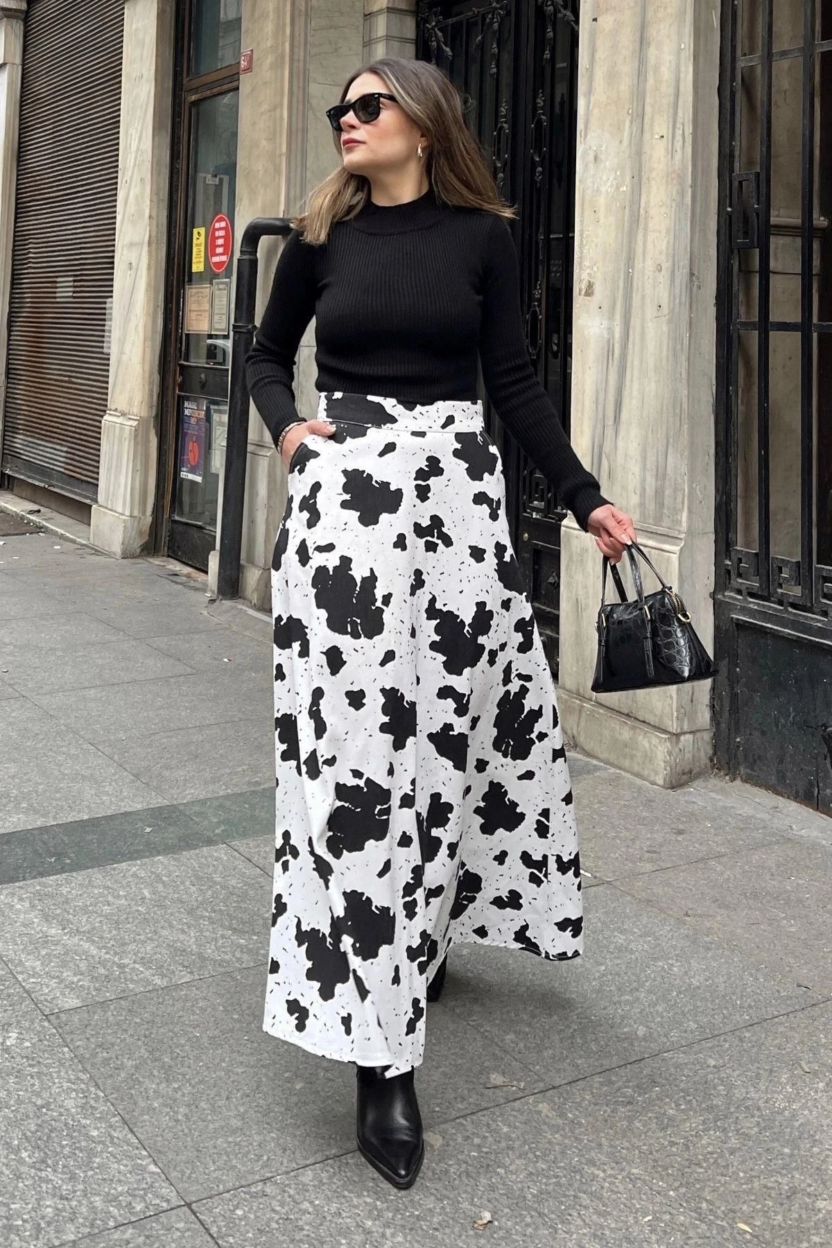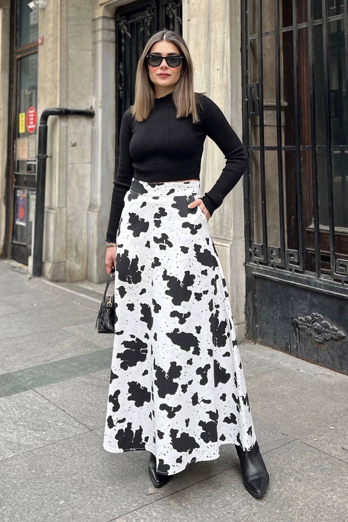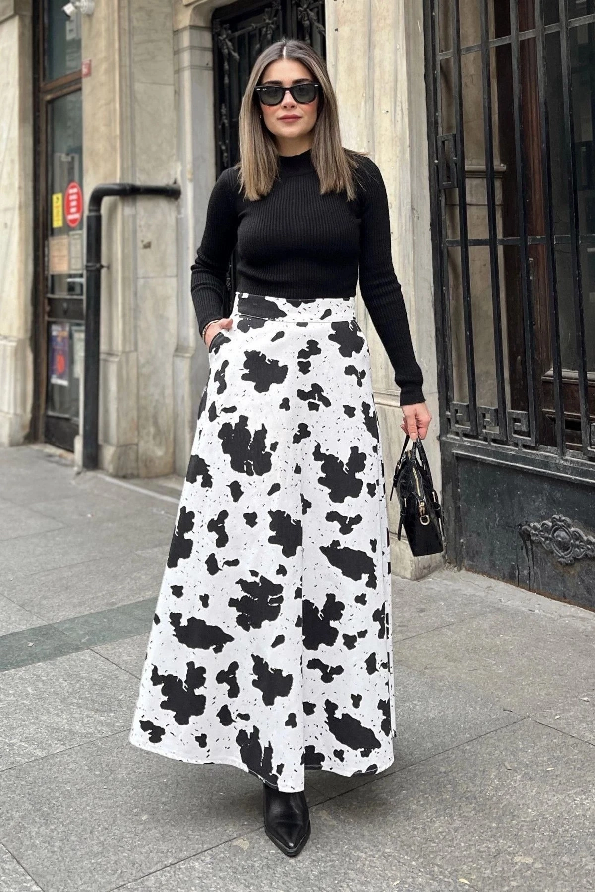 Kadın siyah Beli Lastikli, Cepli, Uzun Boy, Gabardin Kiloş Etek