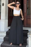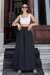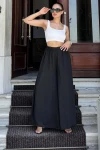 Kadın Siyah Beli Lastikli,Cepli, Bol Paça, Salaş Krep Pantolon - Tesettüre Uygun