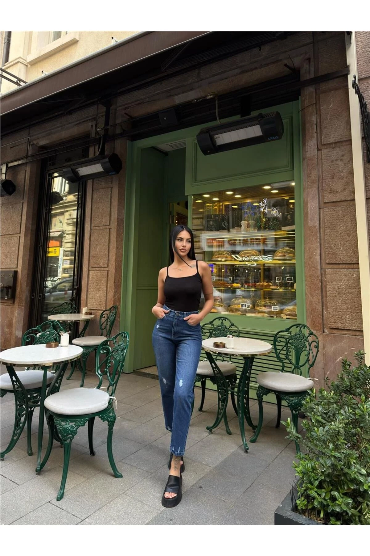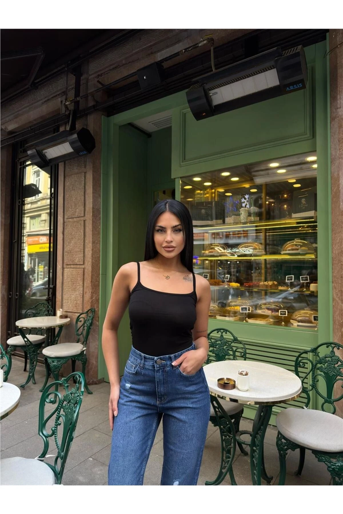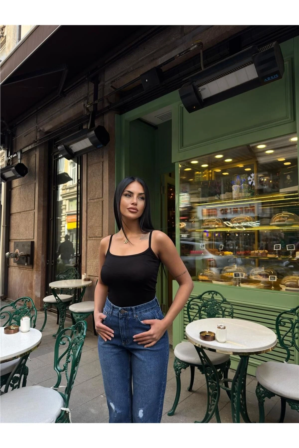 Kadın Siyah Bisiklet Yaka Uzun Kollu Parmak Geçmeli Viskon Badi Tişört