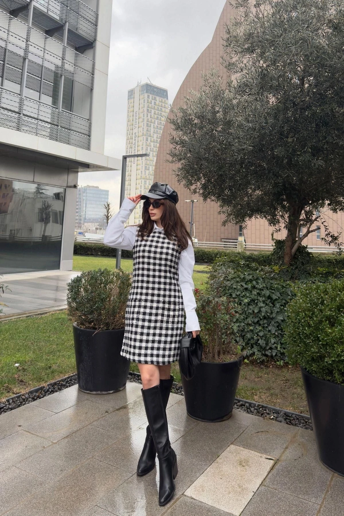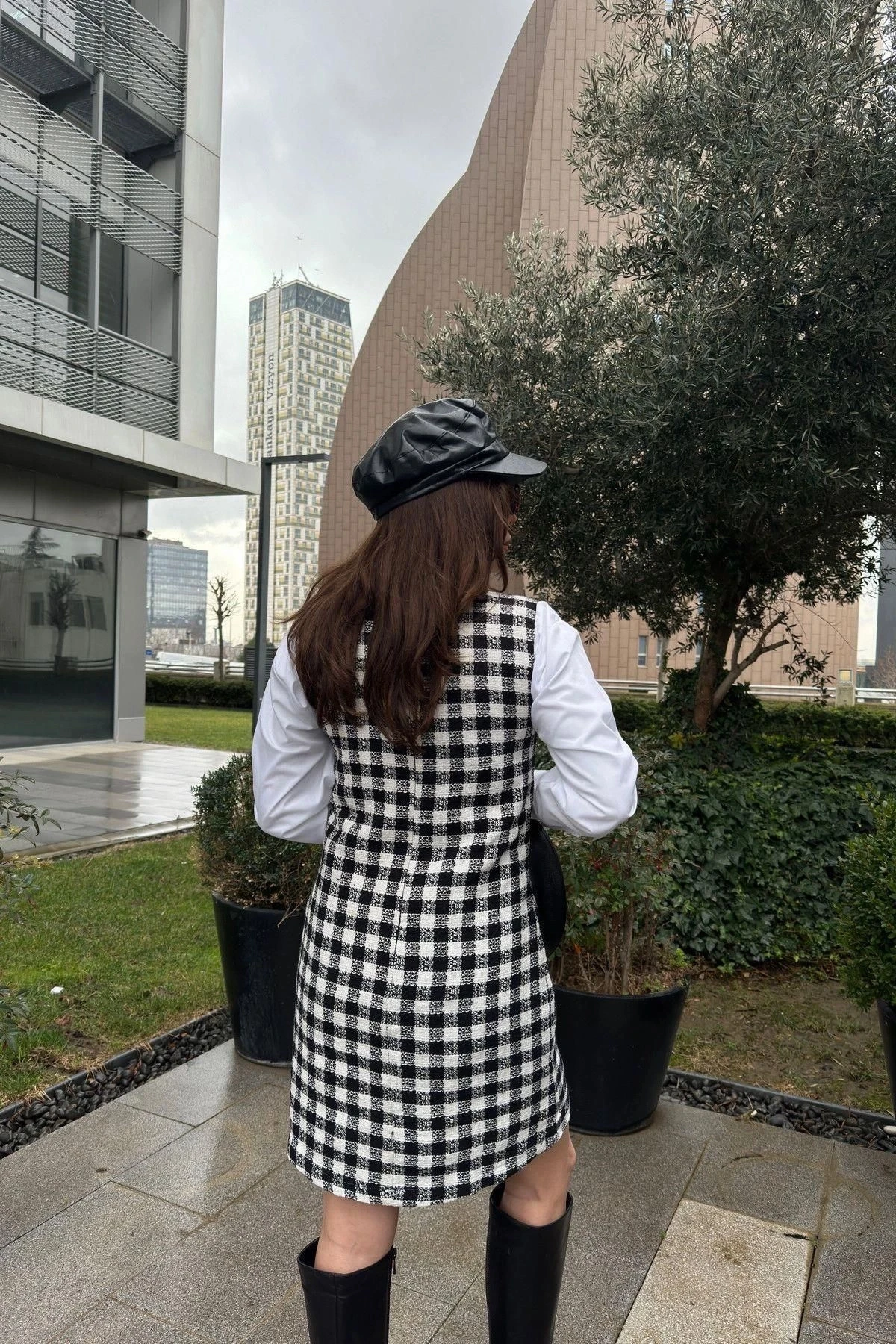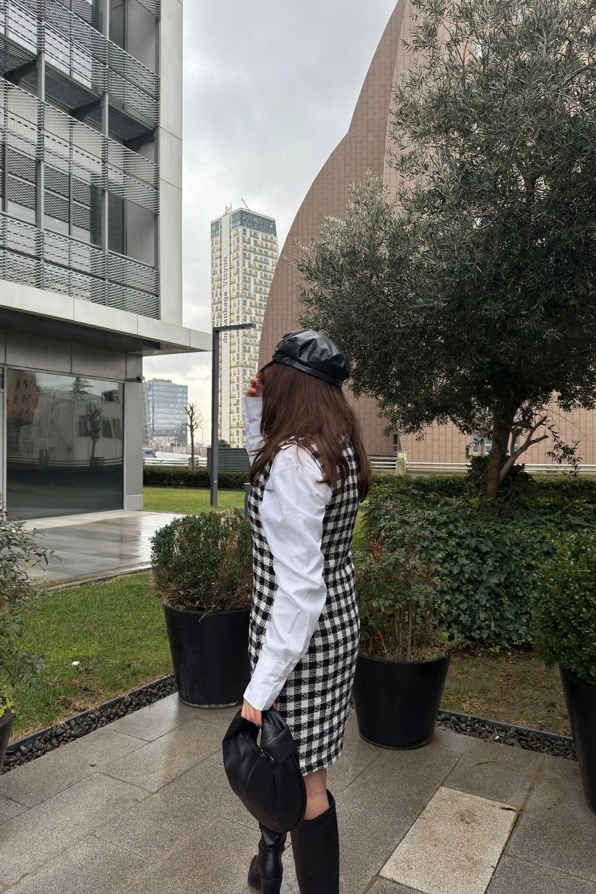 Kadın Siyah Çift Cepli, Kare Yaka, Kalın Askılı, Sıfır Kol, Midi Boy, Tüvit Elbise(Gömleksiz)