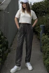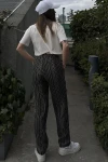 Kadın Siyah Çizgili, Beli Lastikli, Cepli, Salaş Spor Pantolon