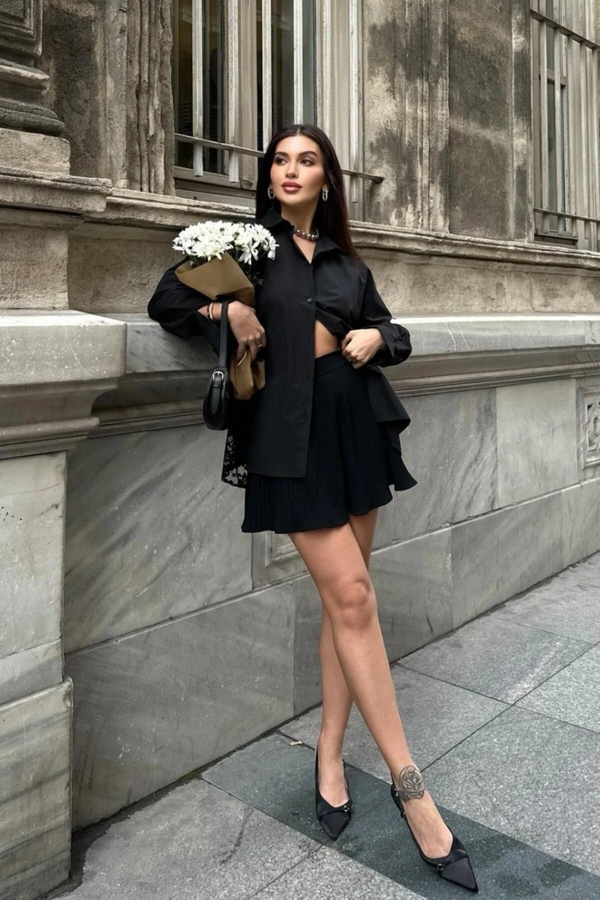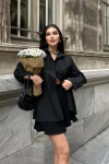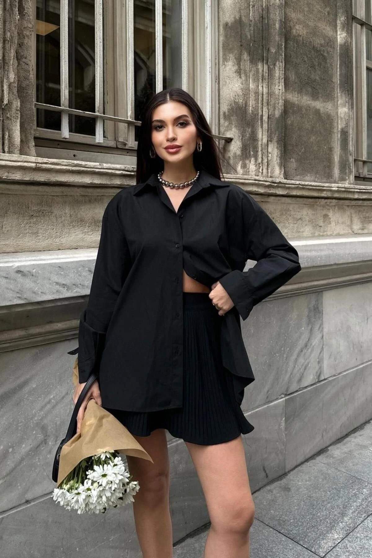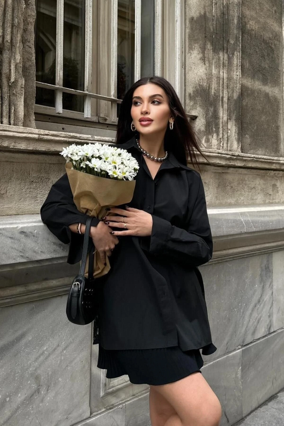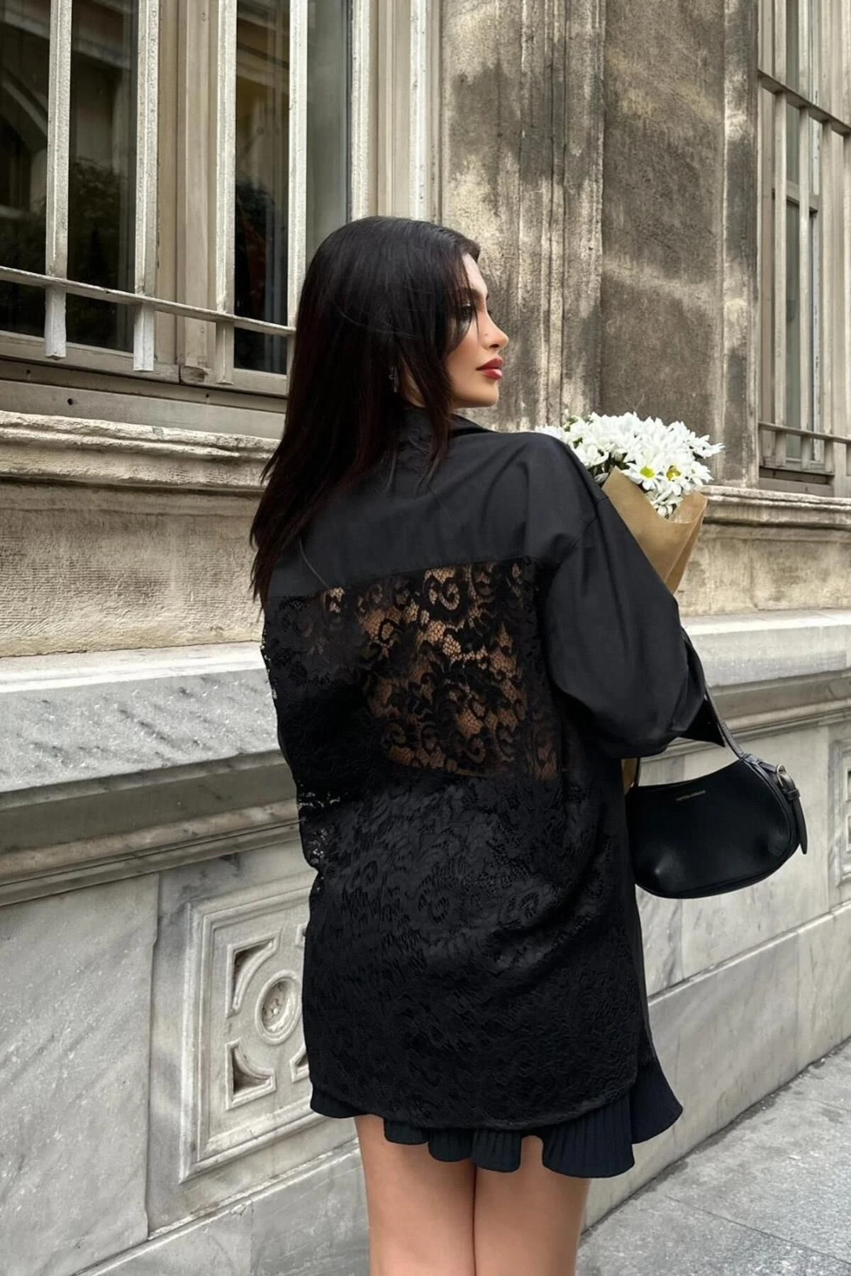 Kadın Siyah Dantel Poplin Oversize Gömlek