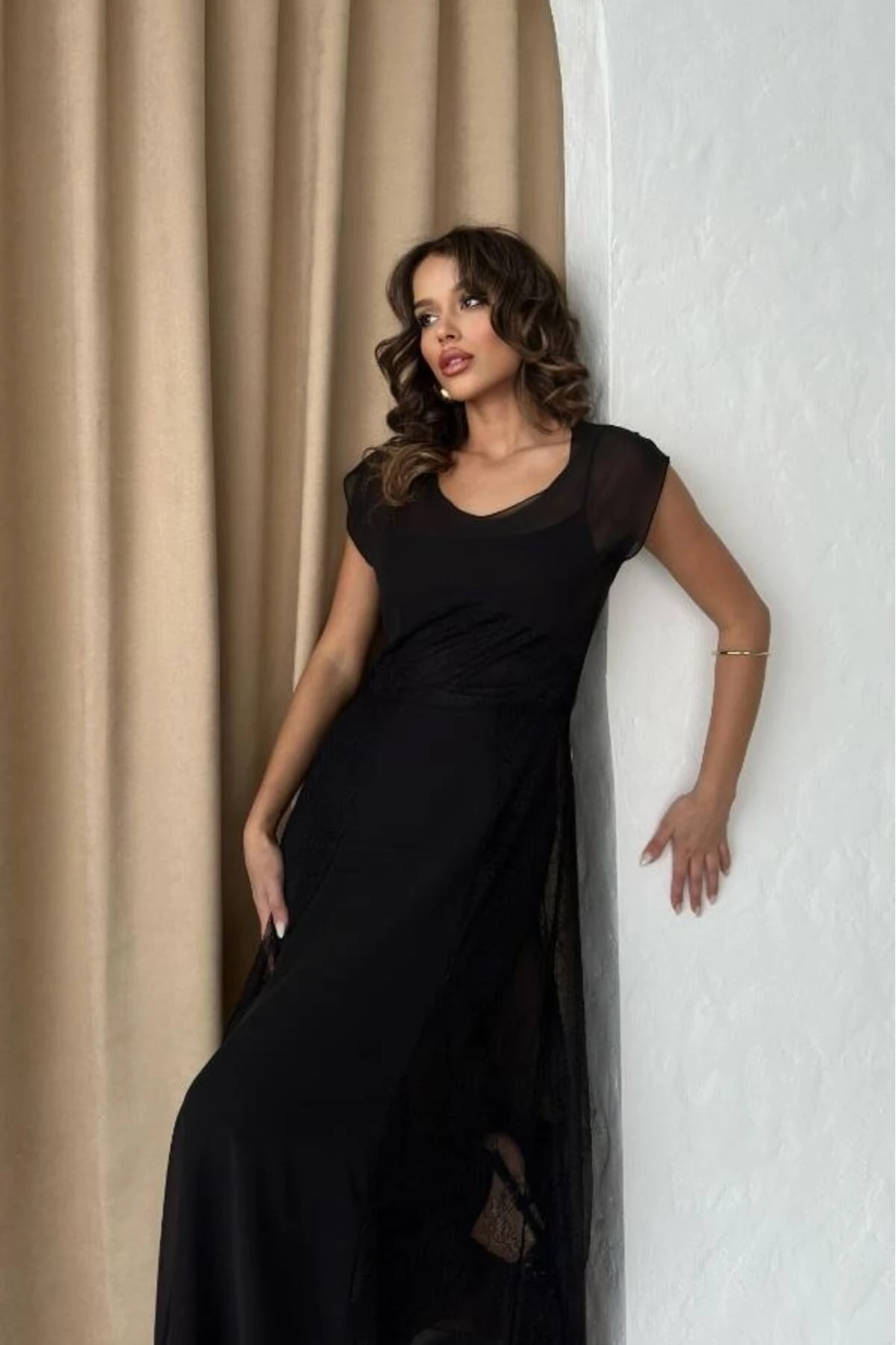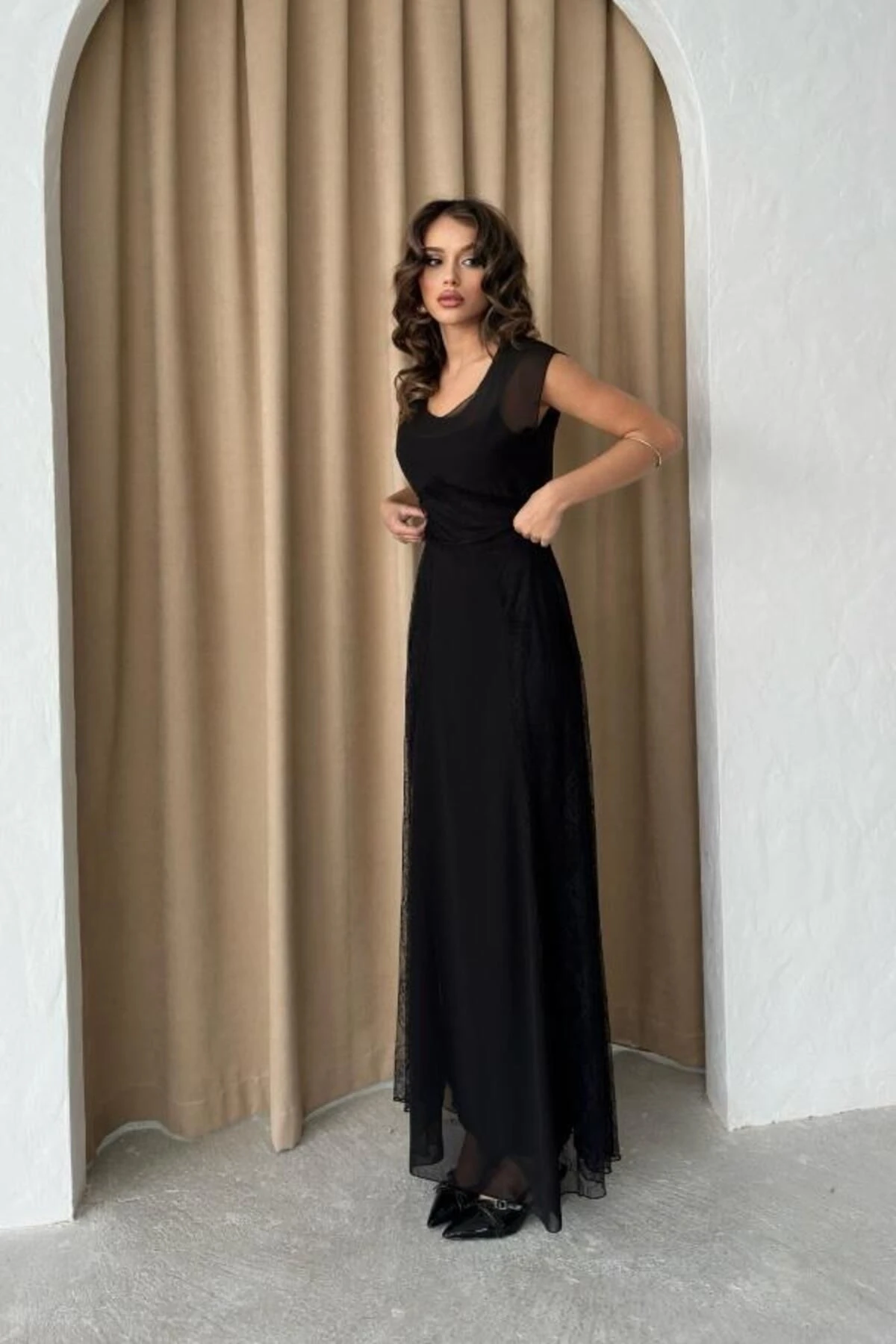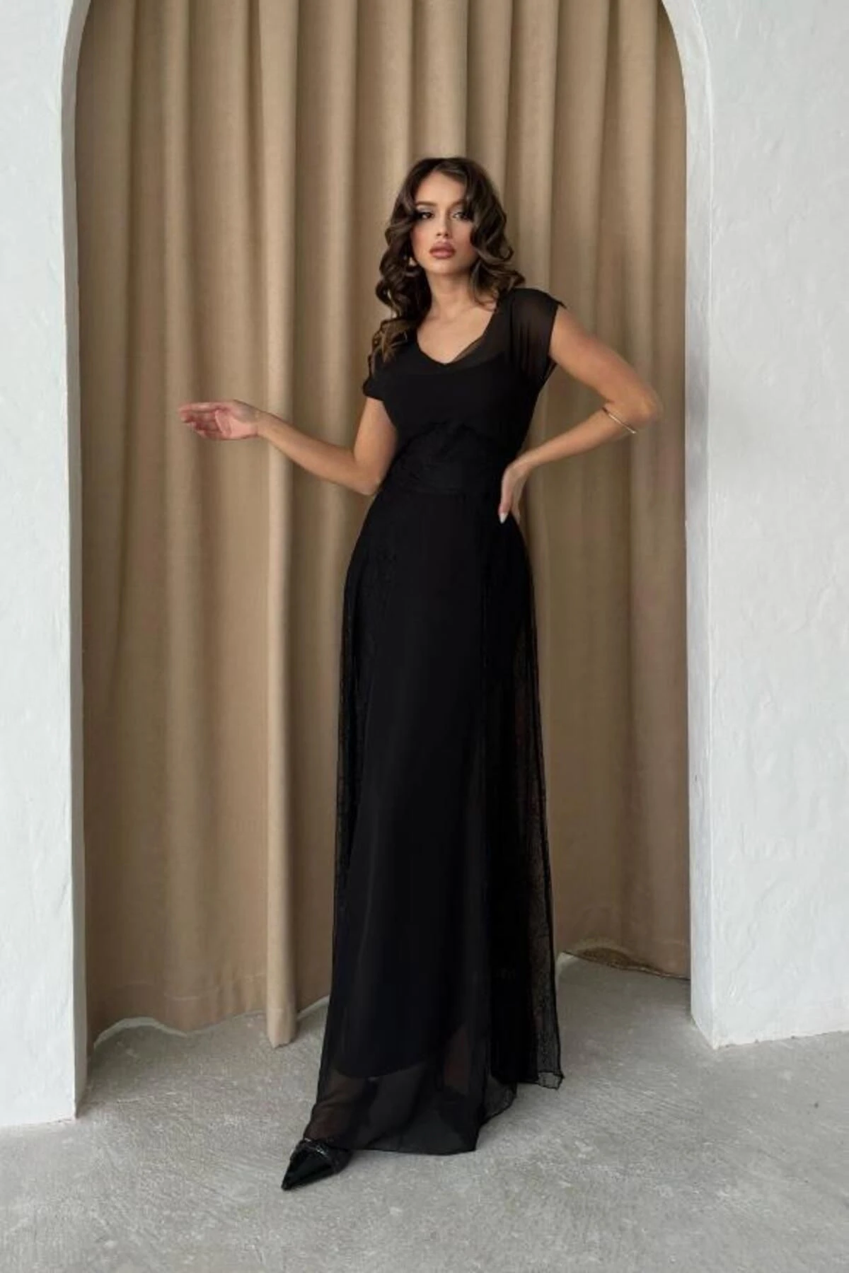 Kadın Siyah Degaje Yaka Şifon Midi Elbise