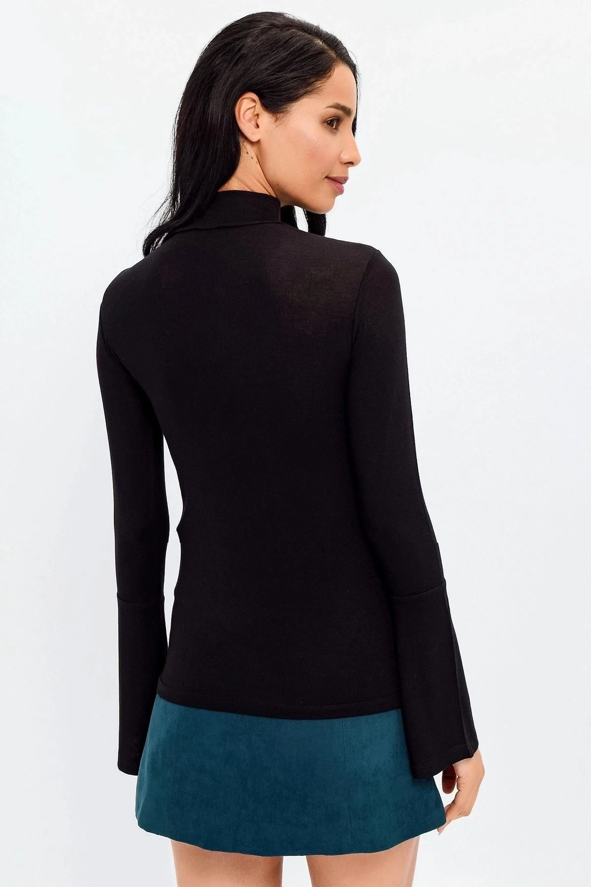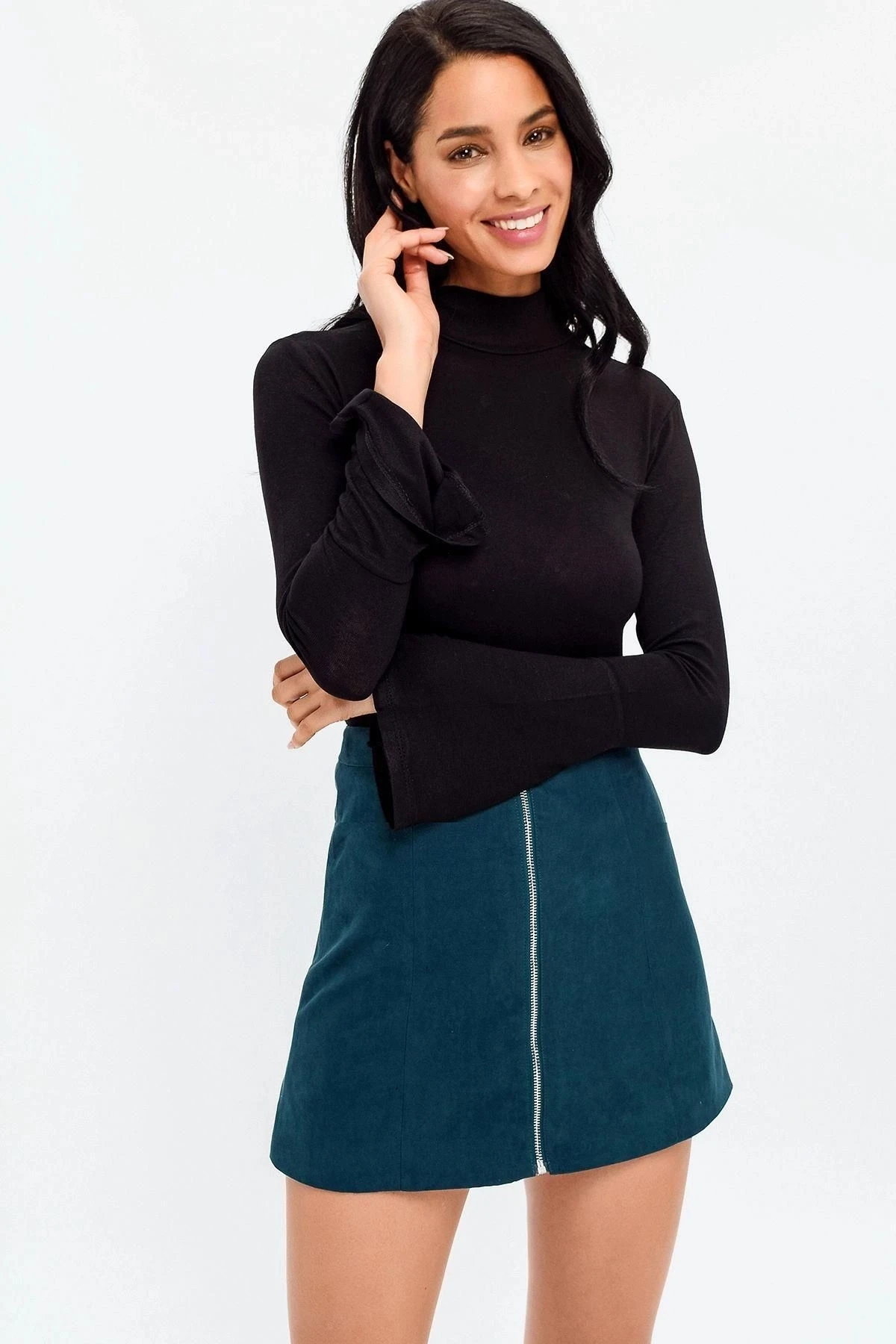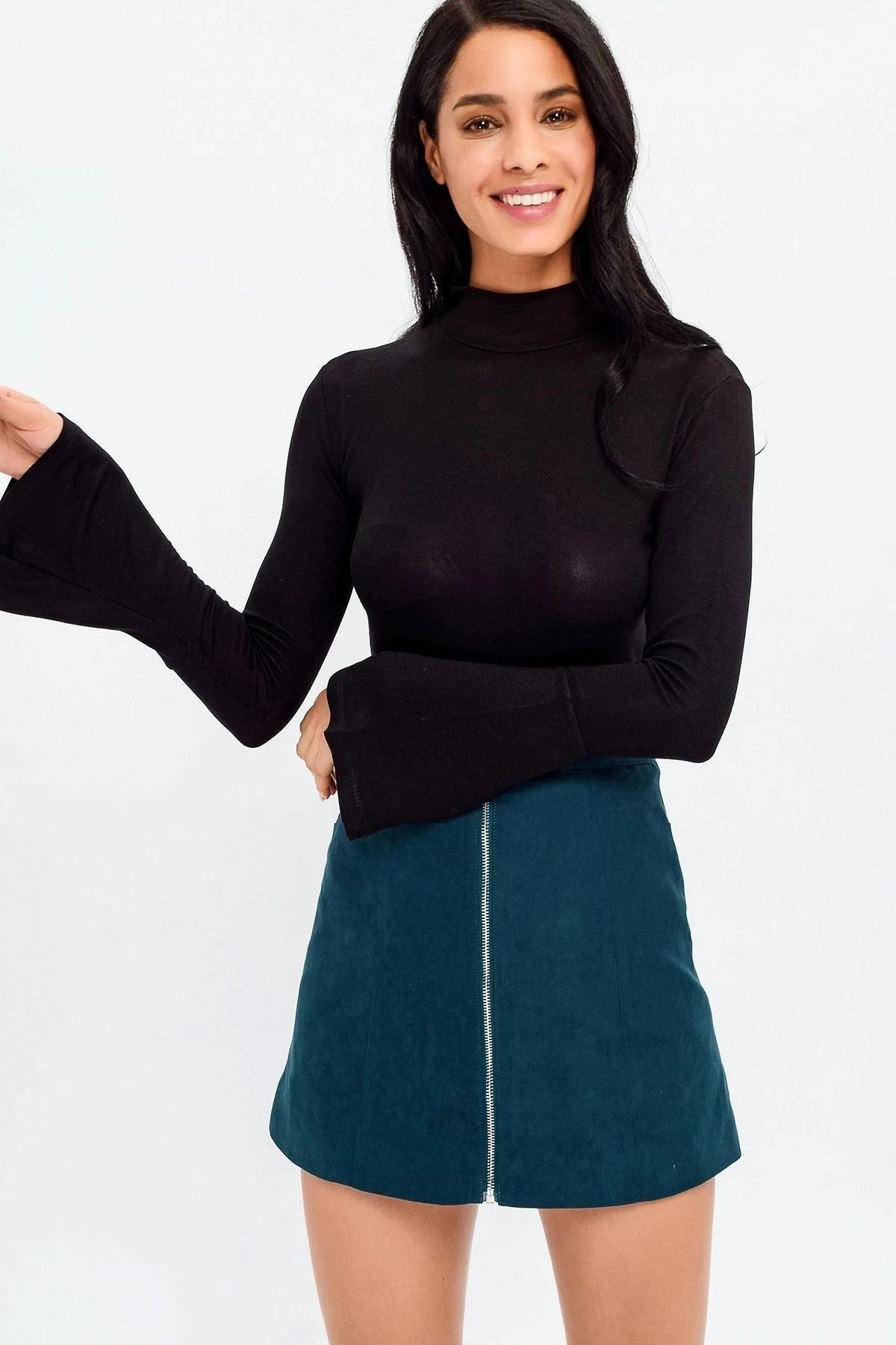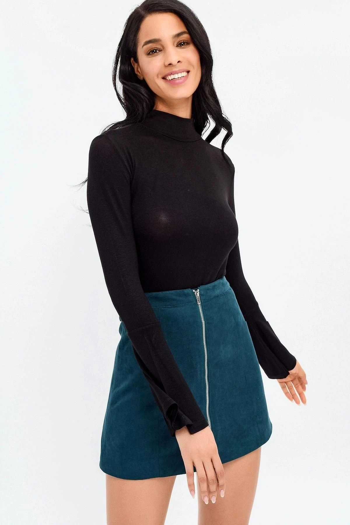 Kadın Siyah Desenli Mini Elbise - Uzun Kol, Regular Kesim, Mini Kısa