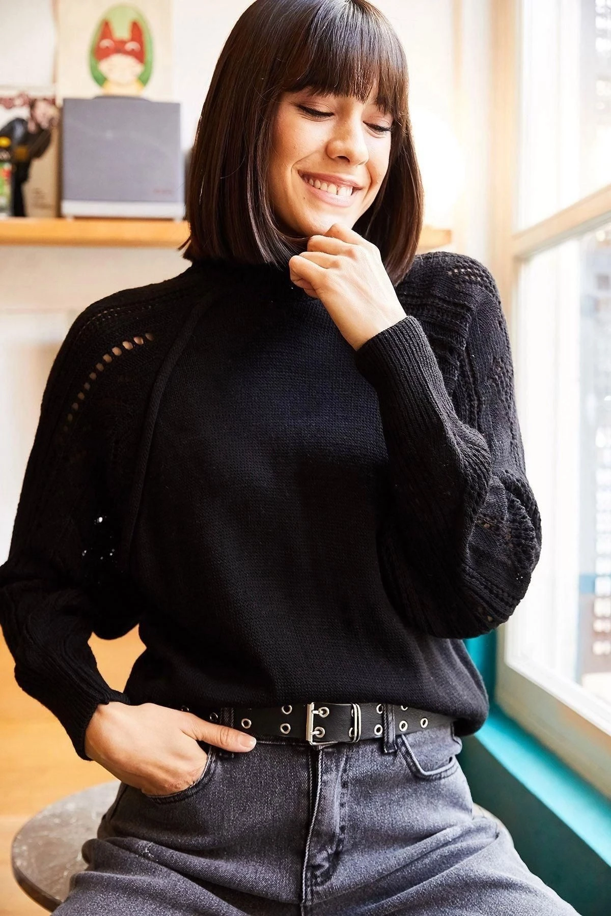 Bu Siyah Renk Dik Yaka Uzun Kol Kazak, şıklığı ve rahatlığı bir araya getiren bir seçenektir.; Kaliteli kumaş içeriği sayesinde uzun süre kullanabilirsiniz.; %95 viskoz ve %5 elastan karışımı, kumaşın yumuşaklığını ve esnekliğini sağlar.; Siyah renk, her mevsim ve her durum için mükemmel bir seçimdir.; Şık ve klasik görünümüyle bu kazak, gardırobunuzun temel parçalarından biri olacak.; Dik yaka detayı, modern ve zarif bir tarza sahiptir.; Hem günlük hayatta hem de özel etkinliklerde giymek için idealdir.; Uzun kollu tasarımı, soğuk havalarda ekstra sıcaklık sağlar.; Aynı zamanda kol detayları, kazaka dinamik bir görünüm katarken stilinizi vurgular.; Regular kesim, her bedene uyum sağlar ve konforlu bir oturuş sunar.; Standart boyu, her yaş grubuna hitap eden ve çeşitli kombinasyonlarla uyumlu olan bir uzunluktur.; Bu kazak, herhangi bir gardıropta yer alması gereken bir temel parçadır.; Hem şık hem de rahat olmak isteyenler için mükemmel bir seçenektir.; Gündelik veya özel durumlarda, farklı aksesuarlarla ve alt parçalarla kolaylıkla uyum sağlar.; Kesimi, kumaşının kalitesi ve estetik detaylarıyla dikkat çeken bu Siyah Renk Dik Yaka Uzun Kol Kazak, tarzınızı ve konforunuzu bir araya getirir.; Her mevsim ve her fırsatta giyebileceğiniz şık bir seçimdir.