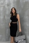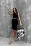 Kadın Siyah Dokuma Kolsuz Mini Elbise