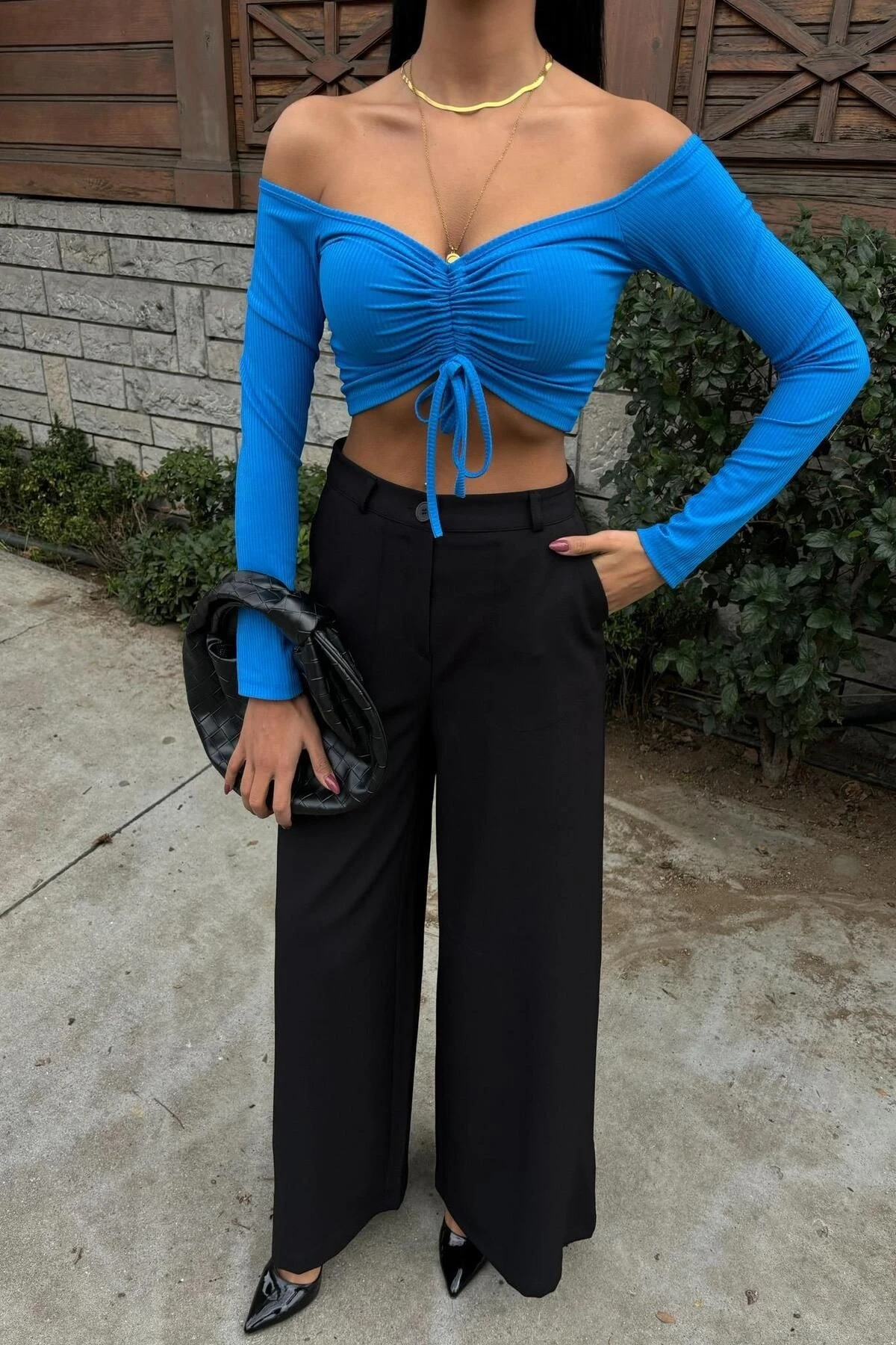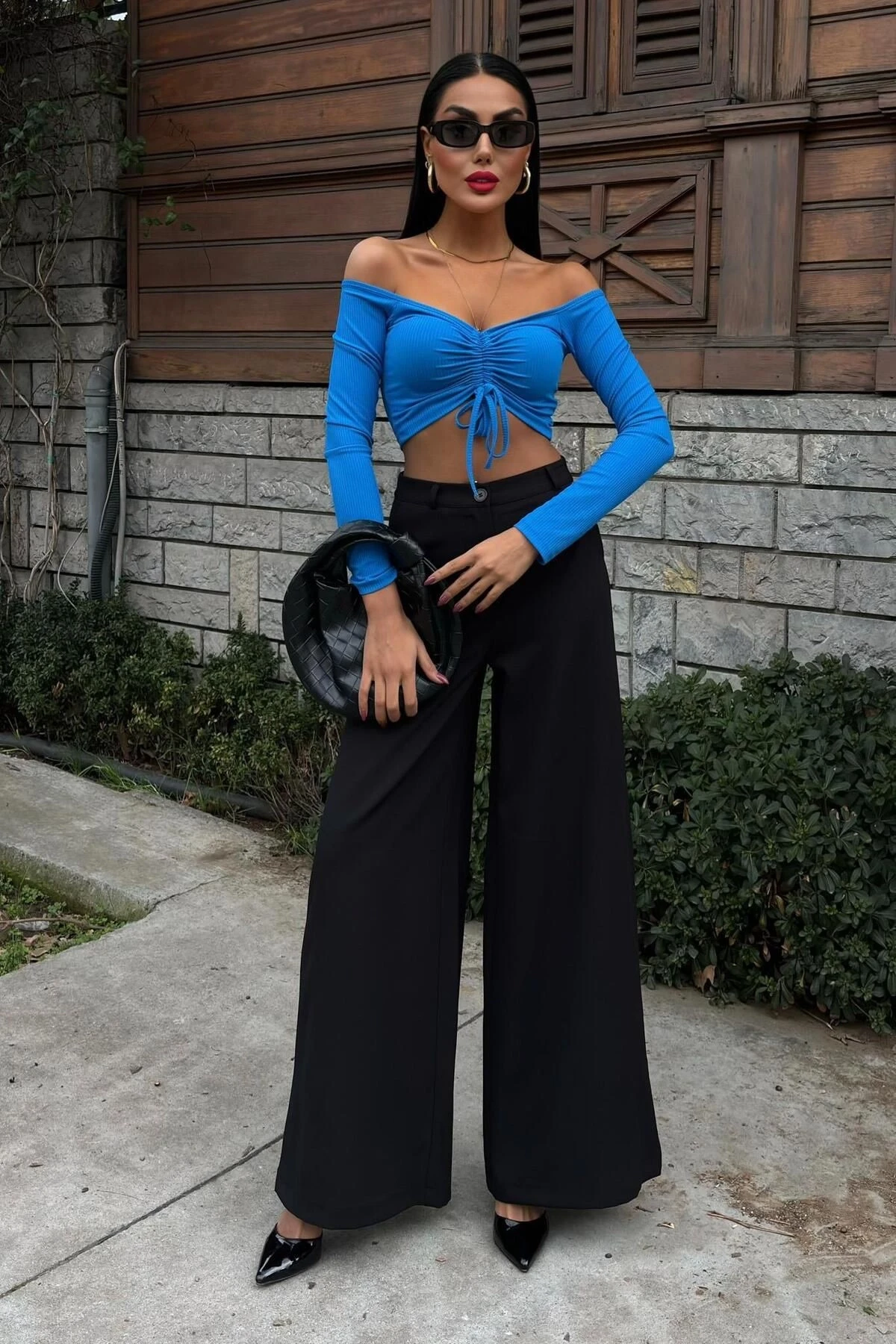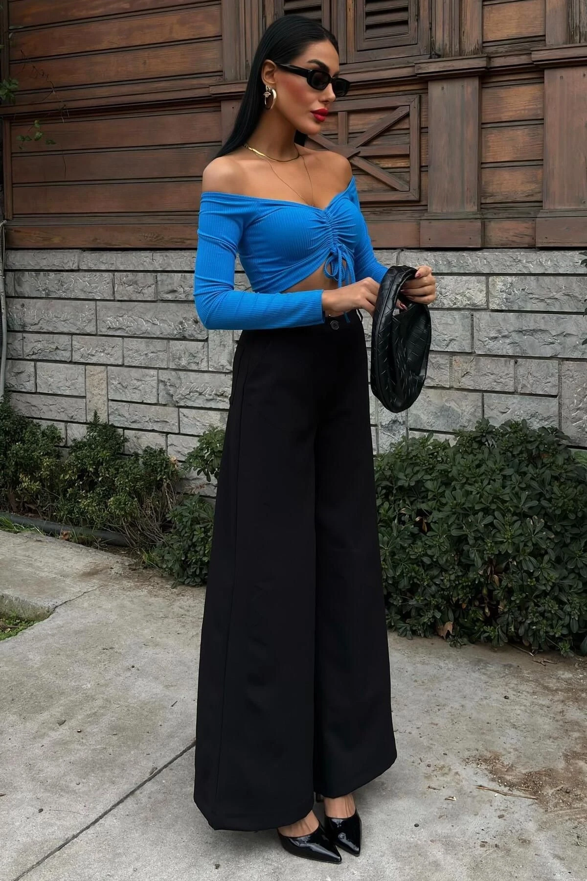 Kadın Siyah Dokuma Oversize Palazzo Pantolon