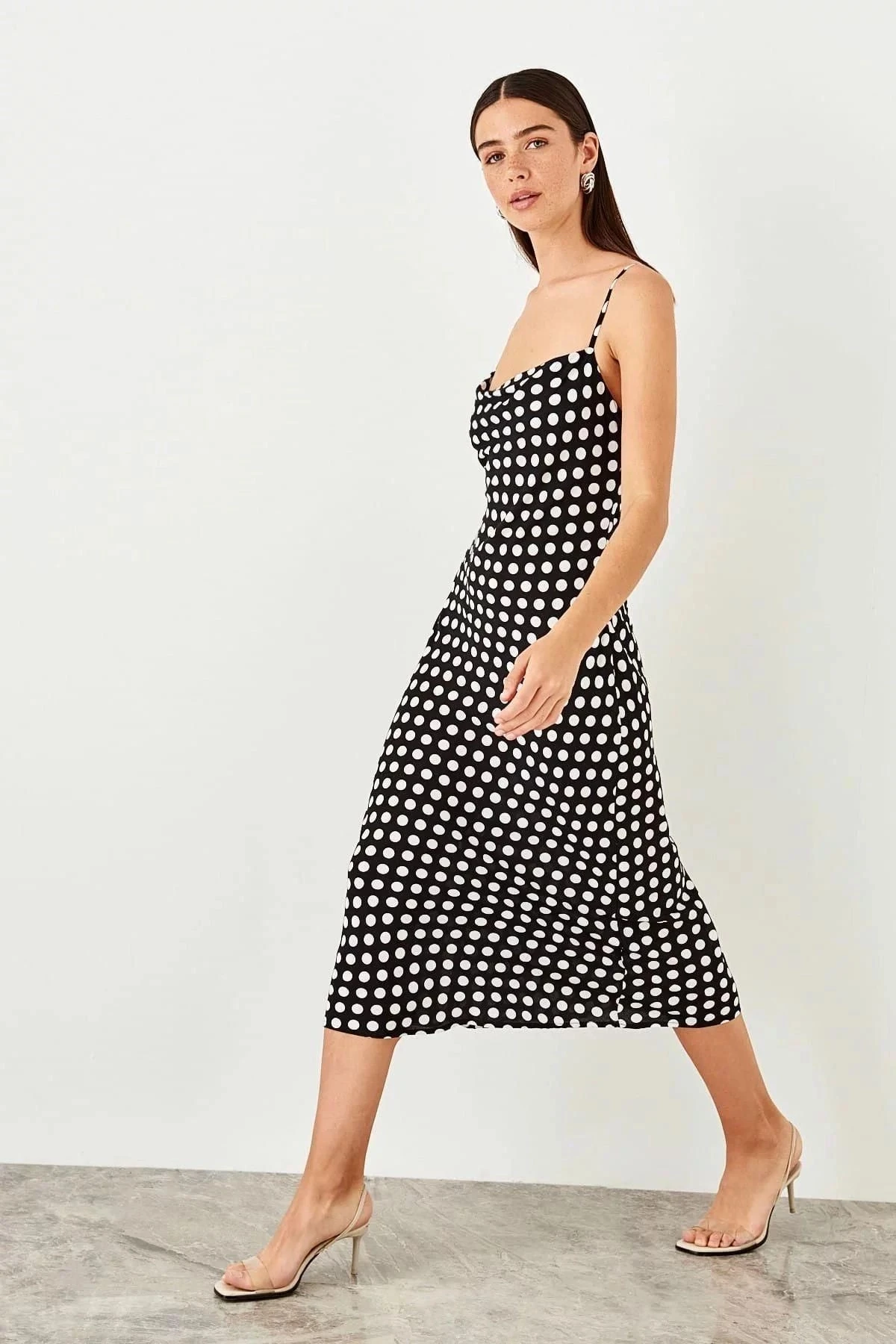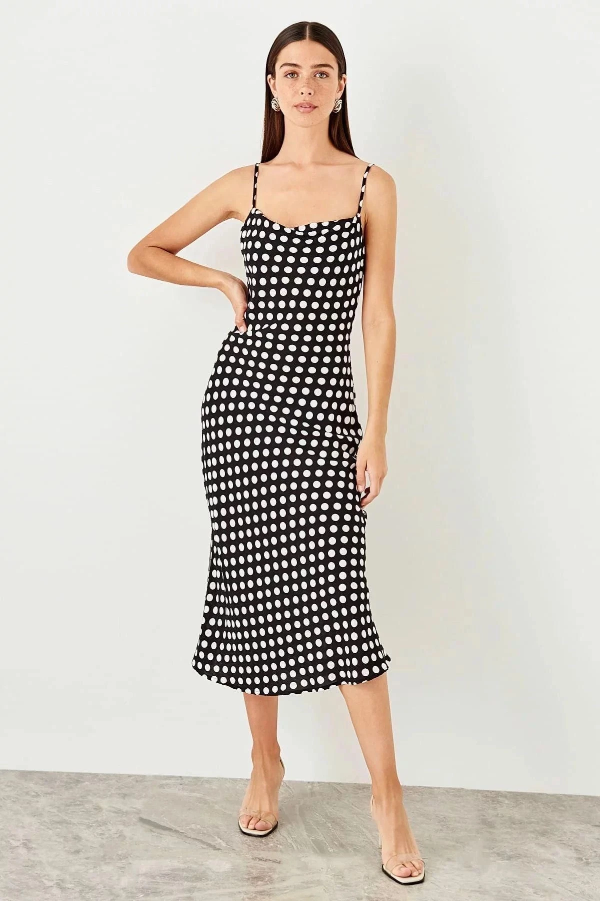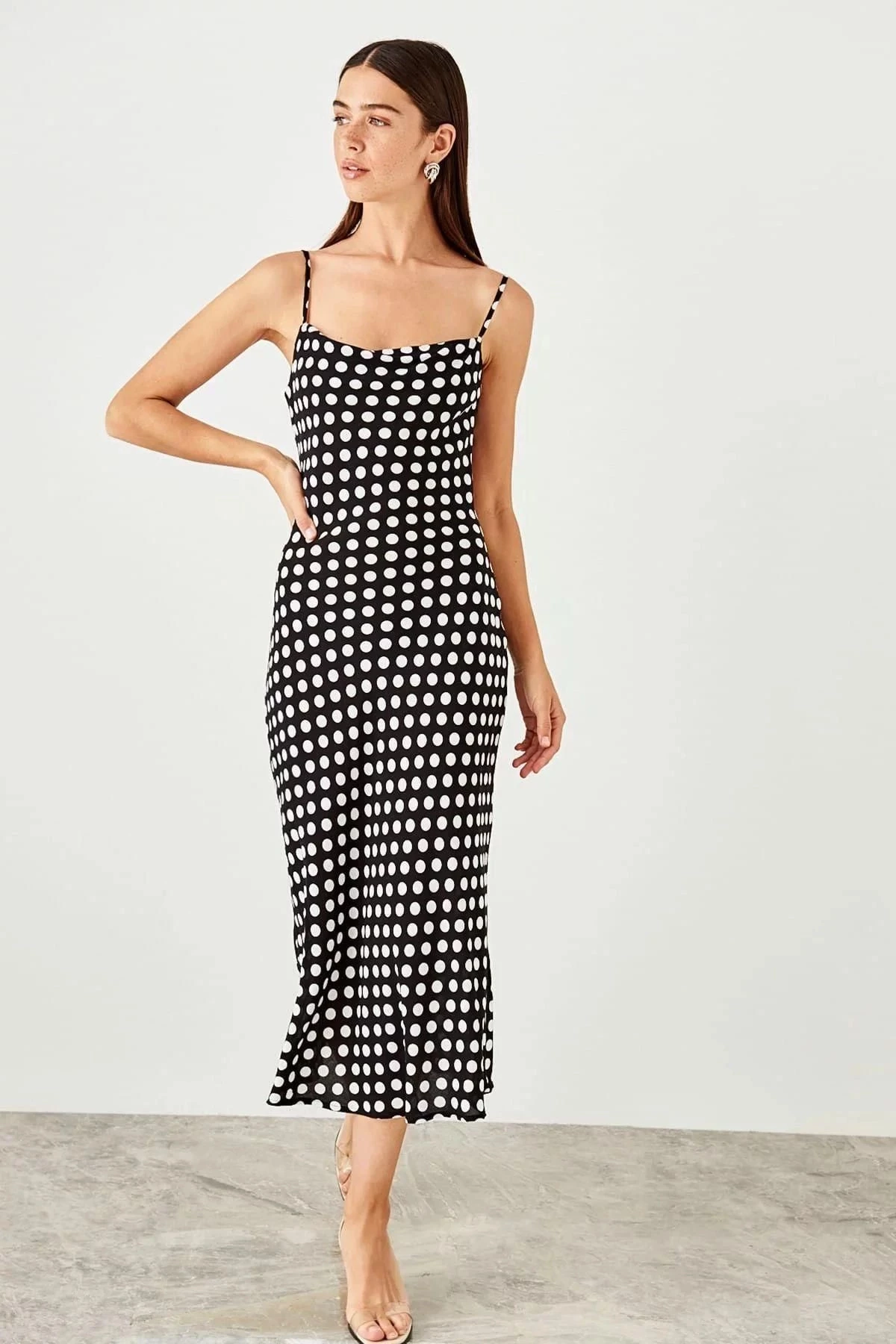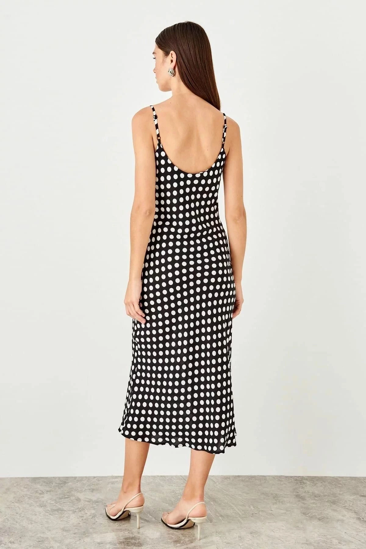 Bu kısa süreliğine Elbise, rahatlığı ve şıklığı bir araya getiren mükemmel bir seçenektir.; Siyah renkteki kare yakası ve askılı kollarıyla modern bir tarz sunar.; Puantiyeli desenleri ise feminen bir dokunuş katar.; Regular kesimi, çoğu vücut tipine uyum sağlar ve maksi boyuyla zarif bir görünüm sunar.; Bu elbisenin ana kumaşı %95 viskoz ve %5 elastandan oluşur, bu da ona yumuşaklık, nefes alabilirlik ve esneklik kazandırır.; Viskoz kumaş, cilde hoş bir dokunuş sağlarken elastan, hareket özgürlüğü ve form tutma özelliği sağlar.; Siyah renk, her mevsimde ve herhangi bir durumda giyilebilecek zamansız bir seçenektir.; Kare yakalı tasarımı, modern ve sofistike bir görünüm yaratırken askılı kol detayları, omuzları güzel bir şekilde ortaya çıkarır.; Puantiyeli desenler ise canlılık ve enerji katarak elbisenin çekiciliğini artırır.; Regular kesimi sayesinde bu elbise birçok bedene uyum sağlar ve vücut hatlarını kusursuzca sarar.; Maksi boyu, bacakları uzun gösterir ve zarif bir siluet oluşturur.; Günlük kullanım için ideal olan bu elbise, hem rahatlığı hem de şıklığı bir arada sunar.; Bu elbise, herhangi bir sosyal etkinlik, iş toplantısı veya günlük aktivite için mükemmel bir seçenektir.; Yumuşak ve esnek kumaşıyla tüm gün boyunca rahat hissetmenizi sağlar.; Siyah renk ve puantiyeli desen kombinasyonu, size sofistike ve şık bir görünüm kazandırırken, kesimi ve uzun boyuyla da tarzınızı ortaya koymanıza yardımcı olur.; Bu siyah renkteki kare yakalı, askılı kol, puantiyeli, regular kesim, maksi boy, uzun, rahat ve günlük elbise, gardırobunuzdaki vazgeçilmez parçalardan biri olacak.