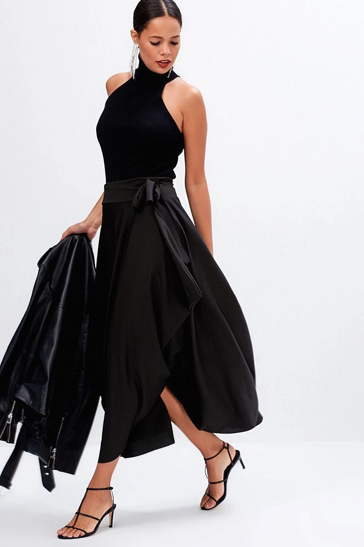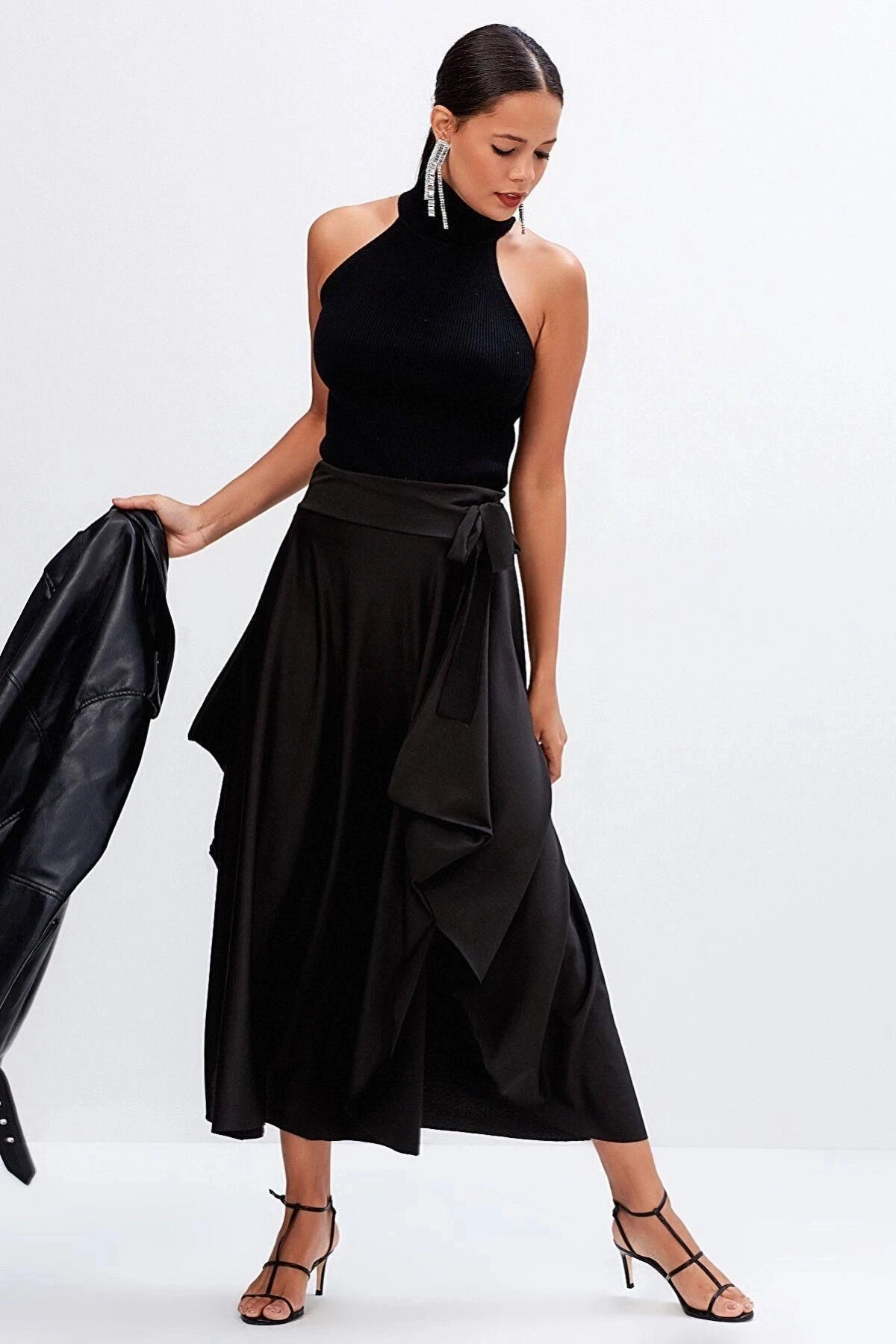 Sunulan ürün, şıklığı ve zarafeti bir araya getiren bir tasarıma sahiptir. ; Siyah renk kemer detaylı asimetrik kesim oversize midi boy etek, tarzınızı tamamlayacak harika bir seçenektir. ; Bu eteknin kumaşı %95 polyester ve %5 elastandan oluşmaktadır, böylece rahatlık ve esneklik sunar. ; Polyester malzeme, dayanıklılığı ve kolay bakım özellikleriyle bilinirken, elastan ise esneklik ve hareket özgürlüğü sağlar. ; Birlikte kullanıldıklarında, bu kumaşlar birlikte mükemmel bir uyum sağlar ve eteknin şeklini ve kalıbını korur. ; Asimetrik kesim, bu etekye modern ve göz alıcı bir dokunuş katmaktadır. ; Ön kısmı daha kısa olan ve arkada uzunluğu artan bir kesimle tasarlanmıştır. ; Bu detay, sıradan bir etekden farklılık yaratır ve stilinizi öne çıkarır. ; eteknin oversize kesimi, rahatlık ve özgünlük arayanlar için idealdir. ; Geniş bir beden sunarak vücut hatlarını güzelce sarmalar ve hareket özgürlüğü sağlar. ; Bu tasarım, modern ve bohem tarzı bir araya getirirken, tarzınızı yansıtmanıza olanak tanır. ; Ayrıca, eteknin belinde bulunan kemer detayı, vücut şeklinizi vurgulayarak daha belirgin bir siluet oluşturmanızı sağlar. ; Kemer, eteknin tasarımına hoş bir dokunuş katar ve şıklığınızı artırır. ; Midi boy uzunluğu, hem günlük kullanıma hem de özel davetlere uygun bir stil sunar. ; Diz hizasında biten bu uzunluk, feminen bir görünüm sağlar ve ayak bileklerinizi sergileyerek zarif bir detay sunar. ; Sonuç olarak, siyah renk kemer detaylı asimetrik kesim oversize midi boy etek, hem modern hem de şık bir seçenektir. ; Yüksek kaliteli polyester ve elastan kumaşı, rahatlık ve dayanıklılık sağlar. ; Bu etek, tarzınızı ifade etmenize olanak tanırken, farklılığınızı ortaya koyar ve her ortama uyum sağlar.;