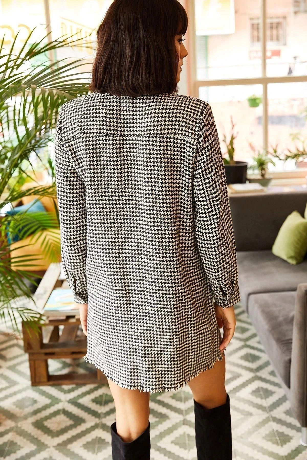 Bu Siyah Renk Klasik Yaka Pötikare Desenli Uzun Kol Cep Detaylı Regular Kesim Mini Kısa Elbise, stilinizi yansıtan şık bir seçenektir.; Kumaş içeriği %80 pamuk ve %20 polyesterden oluşur, bu da hem rahatlık hem de dayanıklılık sağlar.; Elbisenin siyah rengi, zamanının ötesinde klasik bir seçimdir ve her mevsimde giyilebilir.; Bu renk, zarafeti ve sofistike tarzıyla öne çıkar.; Pötikare deseni ise modern bir dokunuş sunar ve elbiseye enerjik bir hava katmaktadır.; Klasik yaka, zamansız bir stil sağlar ve her türlü duruma uyum sağlar.; Uzun kollu tasarım, serin havalarda sizi sıcak tutarken, mini kısa kesim, feminen bir görünüm sunar.; Ayrıca elbisenin cep detayları, kullanışlılık ve pratiklik sunar.; Regular kesim, her bedende güzel durur ve her vücut şekline uyum sağlar.; Bu elbise, şıklığı ve konforu bir araya getirirken, cesur bir tarza da sahiptir.; Hem günlük hayatta hem de özel etkinliklerde giyilebilecek bir parçadır.; Kaliteli kumaş yapısı, uzun süre dayanıklılık sağlar ve kolay bakım imkanı sunar.; %80 pamuk, cildinizle uyumlu bir şekilde nefes alabilirlik sağlarken, %20 polyester, kırışıklıklara karşı direnç gösterir ve kolay ütülenir.; Bu Siyah Renk Klasik Yaka Pötikare Desenli Uzun Kol Cep Detaylı Regular Kesim Mini Kısa Elbise, gardırobunuzun vazgeçilmez bir parçası olmaya adaydır.; Şıklığı, konforu ve dayanıklılığı ile öne çıkan bu elbise, her anınızda size eşlik etmek için tasarlandı.