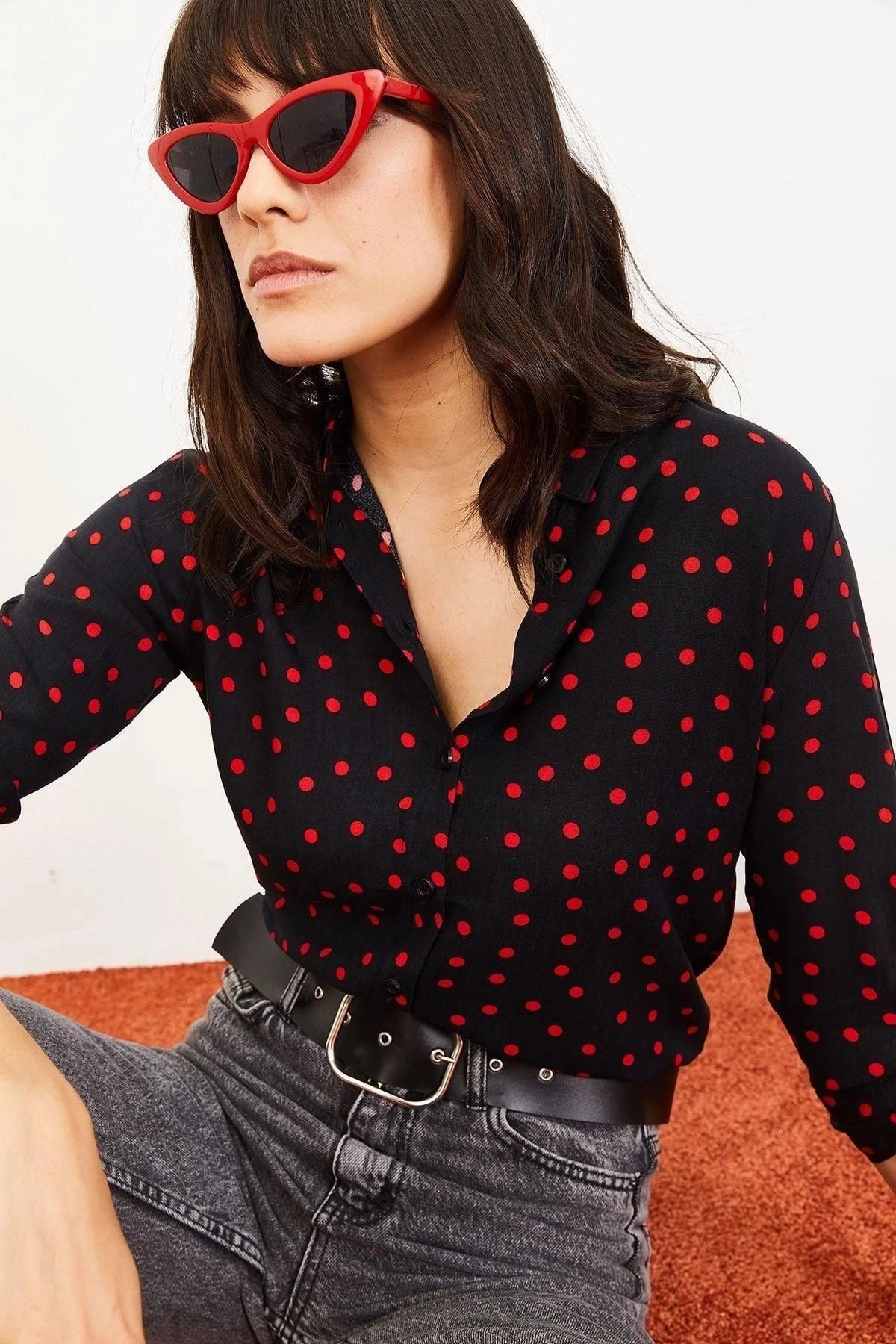 Yüksek kaliteli %100 polyester kumaştan üretilmiş olan Siyah Renk Klasik Yaka, Uzun Kol, Puantiyeli, Regular Kesim, Standart Boy Gömlek, hem şıklığıyla hem de rahatlığıyla öne çıkıyor.; Bu gömleğin zarif siyah rengi, herhangi bir kıyafetle mükemmel bir uyum sağlar ve herhangi bir stil ve mevsime uyar.; Siyahın asil ve şık görünümü, herhangi bir ortamda sizin tarzınızı yansıtmanıza yardımcı olur.; Klasik yaka tasarımı, hem resmi hem de gündelik durumlar için uygun bir seçenek sunar.; Puantiyeli desen ise gömleğe hareketlilik katarak sizi sıradanlıktan uzaklaştırır.; Bu eşsiz tasarım, tarzınıza özgünlük katmanızı sağlar ve sizi diğerlerinden farklılaştırır.; Uzun kolları sayesinde, hem soğuk havalarda sıcaklık sağlar hem de stilinize sofistike bir dokunuş katar.; Regular kesimi, vücut hatlarınızı kusursuzca takip ederek size rahat bir uyum sunar.; Standart boyu ise her beden için mükemmel bir uyum sağlar.; %100 polyester kumaş içeriği, gömleğin dayanıklılığını ve kalitesini artırırken, aynı zamanda kolay bakım ve ütüleme özelliği sunar.; Bu gömlek, uzun süreli kullanıma dayanacak şekilde tasarlanmıştır.; Siyah Renk Klasik Yaka, Uzun Kol, Puantiyeli, Regular Kesim, Standart Boy Gömlek, şık tasarımı ve yüksek kaliteli kumaşıyla gardırobunuzun vazgeçilmez bir parçası olacak.; Herhangi bir özel durum veya günlük yaşam için ideal seçenek olan bu gömlek, tarzınıza zarafet ve şıklık katmanızı sağlar.
