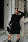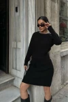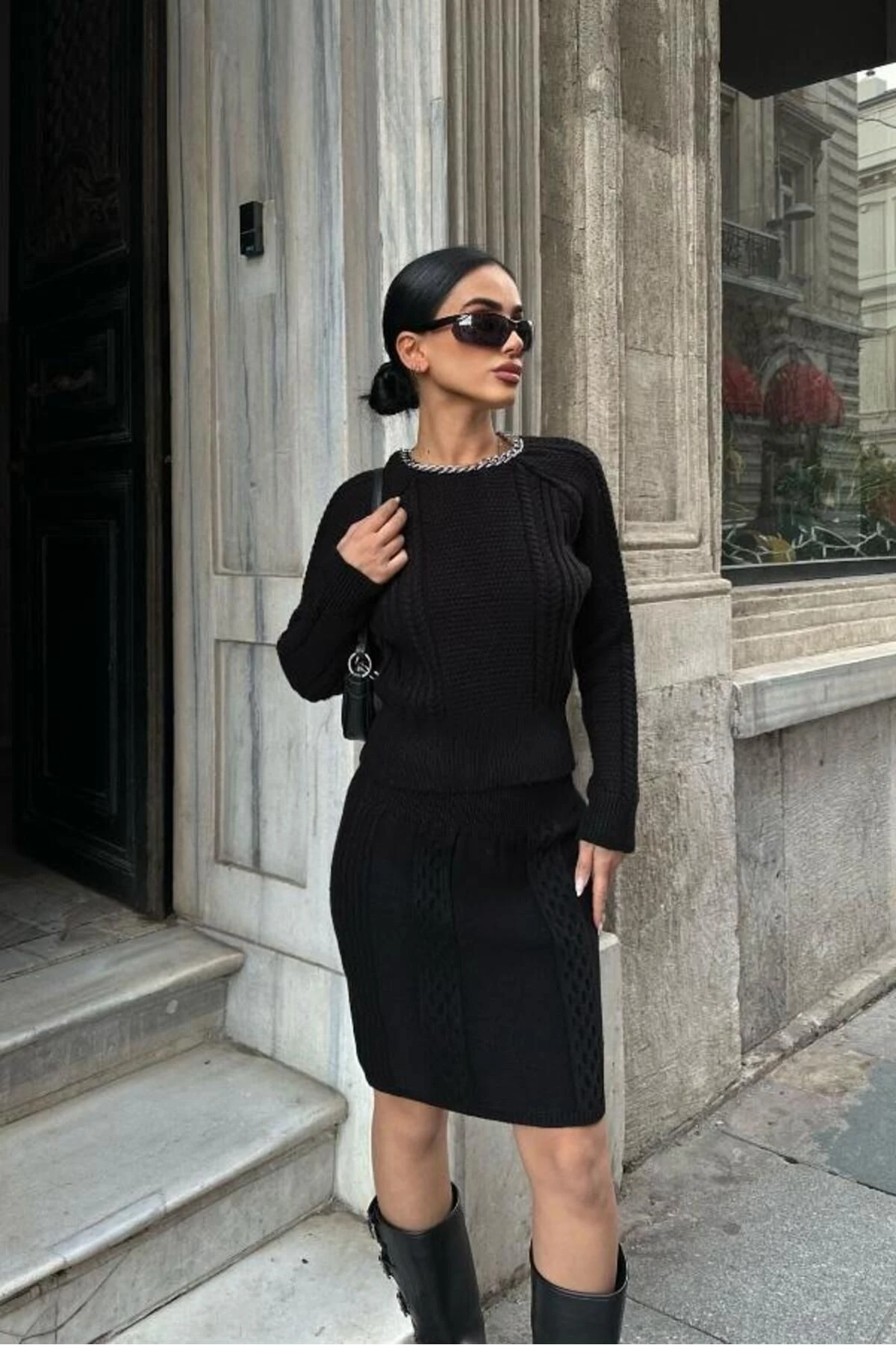 Kadın Siyah Örme Slim Fit Bisiklet Yaka İkili Takım
