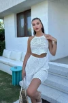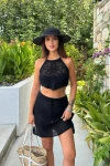 Kadın Siyah Pamuk Askılı Kolsuz Crop Takım