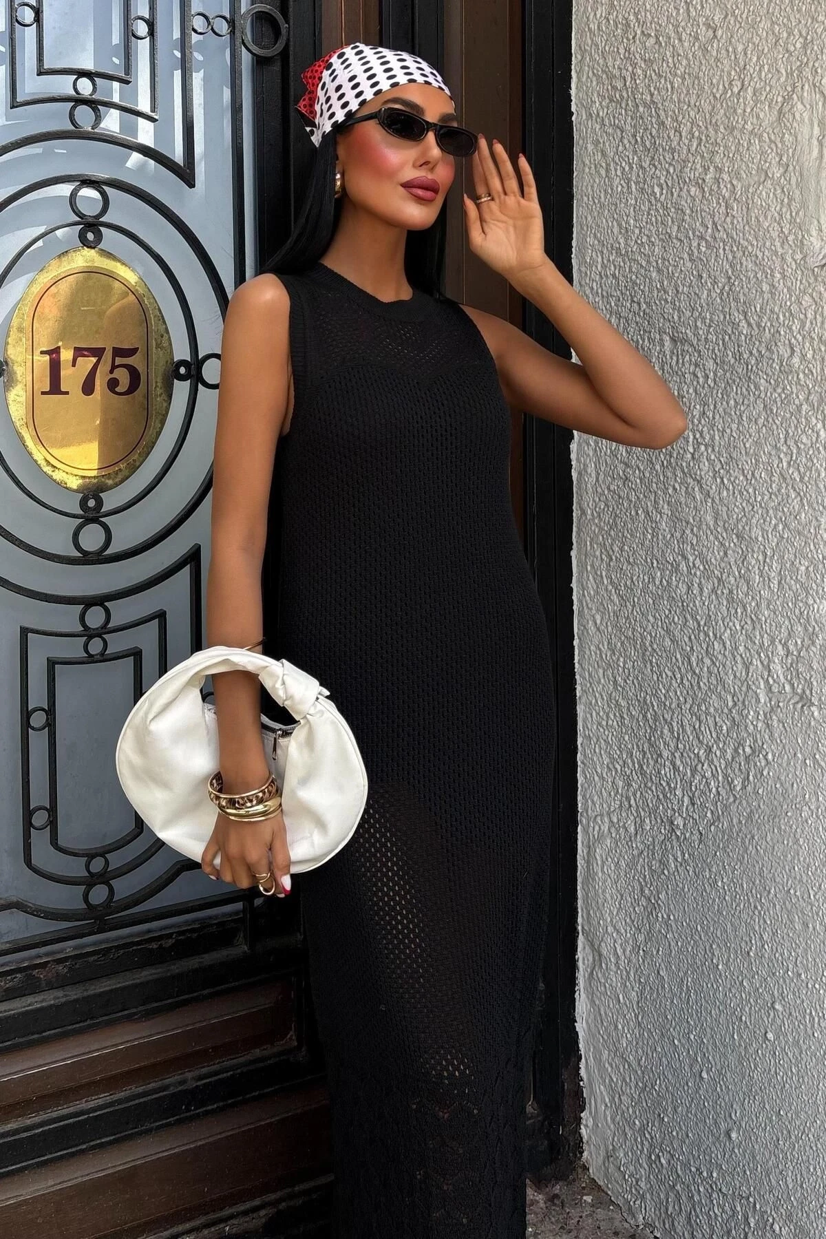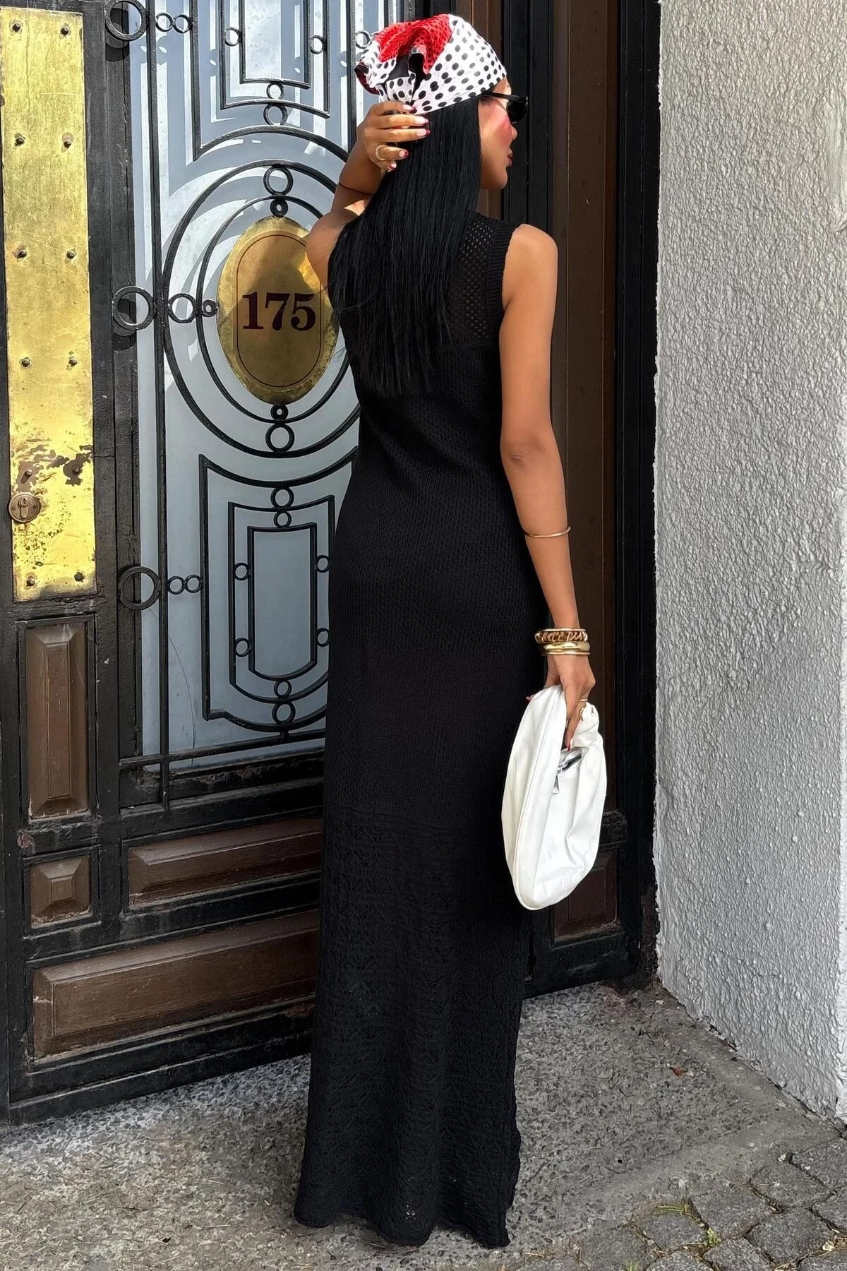 Kadın Siyah Pamuk Polyester Kolsuz Uzun Örme Elbise