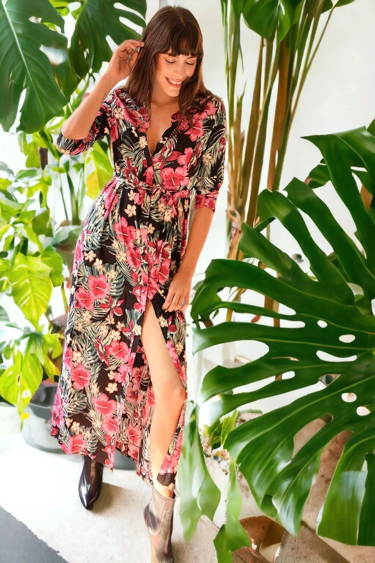 Bu siyah pembe renk desenli çiçekli uzun gömlek elbise, zarif ve şık bir seçenektir.; Elbisenin uzun kolları ve beli kemer detayı, vücudunuza mükemmel şekilde oturmasını sağlar.; Regular kesimi sayesinde her bedene uyum sağlar ve maksimum konfor sunar.; Uzun boyuyla modern bir tarzı yansıtan bu elbise, hem rahat hem de günlük kullanım için idealdir.; Elbisenin tasarımında, siyah ve pembe renklerin zarif bir şekilde birleştiği çiçek desenleri kullanılmıştır.; Bu desenler, elbiseye feminen bir hava katarken, zarafetinizi ön plana çıkarır.; Siyah rengin klasik ve şık görünümü, pembe renklerle bir araya gelerek enerjik ve canlı bir his verir.; Elbisenin kumaşı %100 polyesterden yapılmıştır.; Bu malzeme, dayanıklılığı ve şeklini uzun süre koruma özelliğiyle bilinir.; Aynı zamanda hafif ve yumuşak dokusuyla cildinize rahatlık sağlar.; Bu elbiseyi giydiğinizde, kumaşın kalitesini ve konforunu hissedeceksiniz.; Tesettüre uygun olan bu elbise, şıklığıyla dikkat çekerken aynı zamanda giyim tercihlerinizi de yansıtmanıza olanak tanır.; İster günlük hayatta, ister özel bir etkinlikte giyin, bu elbise size tarzınızı ve özgüveninizi yansıtmanız için mükemmel bir seçenek sunar.; Siyah pembe renk desenli çiçekli uzun gömlek elbise, kumaşının kalitesi, renk ve desenleriyle göz kamaştıran bir parçadır.; Hem şık hem de rahat olmasının yanı sıra, uzun kesimiyle size zarafet ve feminen bir görünüm kazandırır.; Bu elbise, gardırobunuzun vazgeçilmez bir parçası olacak ve size her zaman şık bir seçenek sunacaktır.