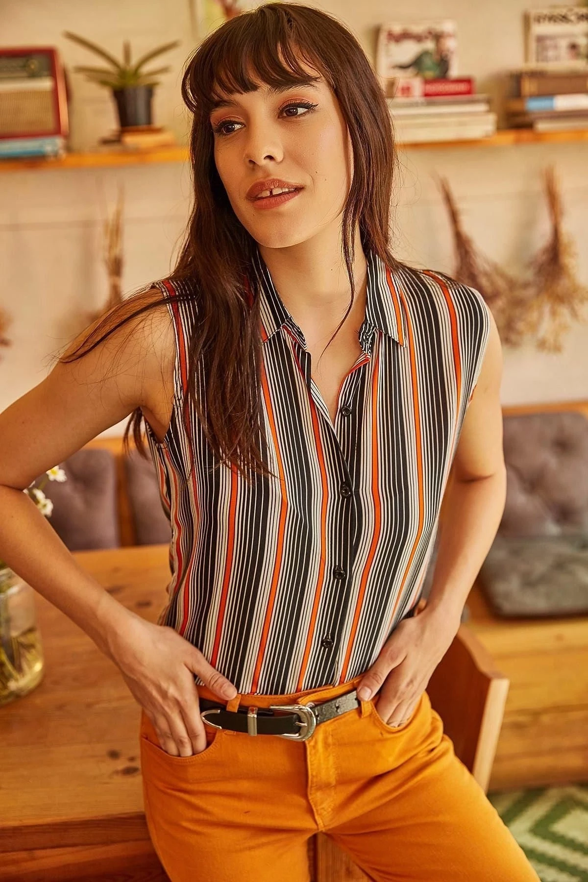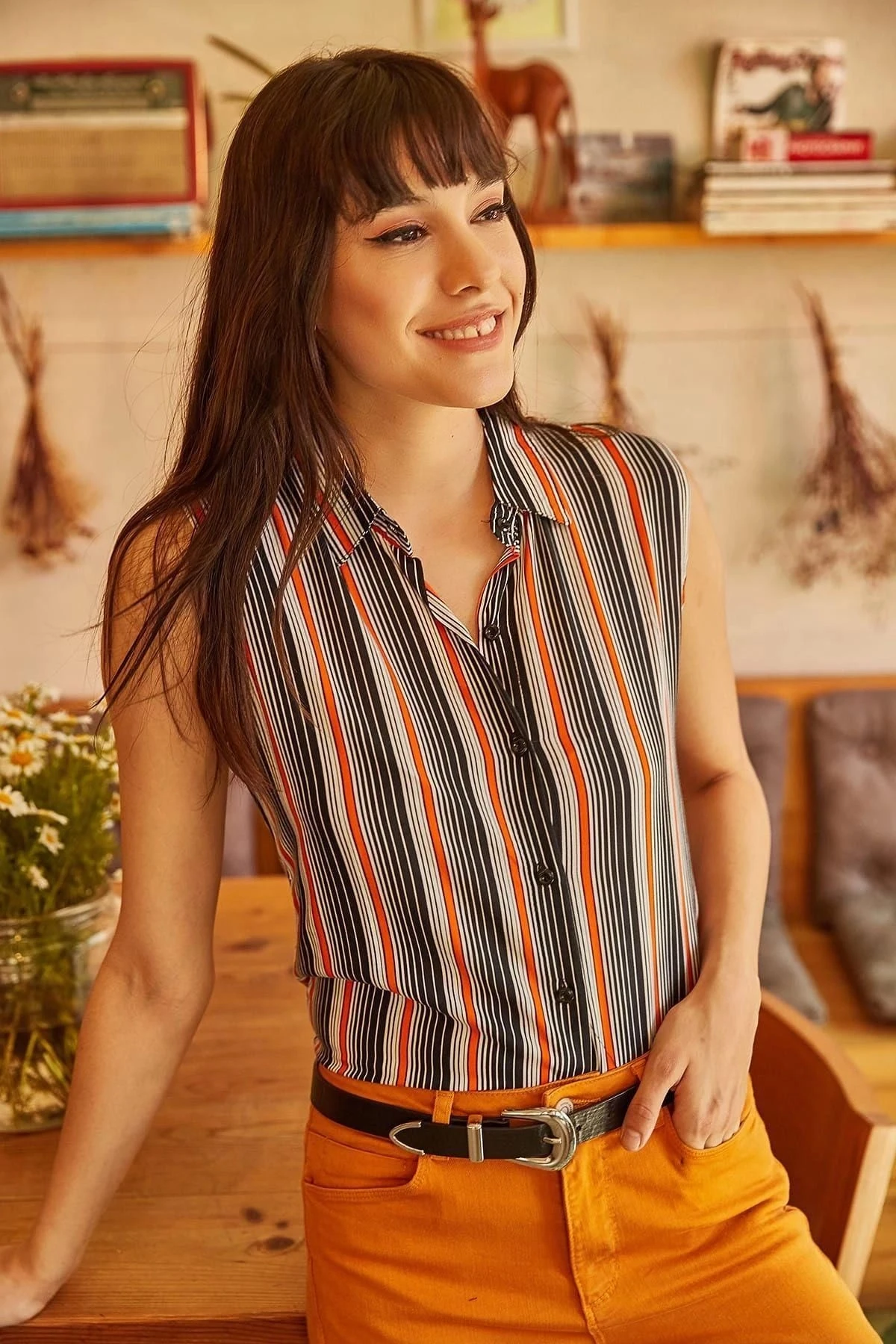 Siyah Renk Polo Yaka, Sıfır Kol, Çizgili, Regular Kesim, Standart Boy Gömlek, kusursuz bir tarzı ve rahatlığı bir araya getiriyor.; Bu ürün, şıklığından ödün vermeden günlük kullanım için mükemmel bir seçenek sunuyor.; Kumaş içeriği %50 pamuk ve %50 polyesterden oluşuyor.; Bu kombinasyon, yumuşaklık ve dayanıklılığı bir araya getirirken, nefes alabilen bir yapıya da sahip oluyor.; Böylece, hem sıcak havalarda serin kalmanızı sağlıyor hem de rahat bir hissun yaşamanızı mümkün kılıyor.; Siyah renk, zamansız ve şık bir seçimdir.; Herhangi bir stil ve kombinle uyum sağlar ve her mevsimde kullanılabilir.; Polo yaka ise klasik bir detaydır ve hem spor hem de resmi tarzlara uyarlanabilir.; Sıfır kol tasarımı, ferah bir his yaratır ve hareket özgürlüğünü maksimum düzeye çıkarır.; Çizgili desen ise bu gömleğe dinamik bir hava katarken, aynı zamanda tarzınızı vurgular.; Regular kesim ve standart boyuyla, bu gömlek her bedende mükemmel uyum sağlar.; Sadece bedeninizi seçin ve kendinizi rahat hissetmenin keyfini çıkarın.; Bu siyah renkli polo yaka gömlek, kumaş kalitesi, şık tasarımı ve rahat kesimiyle tarzınıza değer katar.; Günlük kullanım için mükemmel bir seçimdir ve gardırobunuzun vazgeçilmez parçalarından biri olabilir.