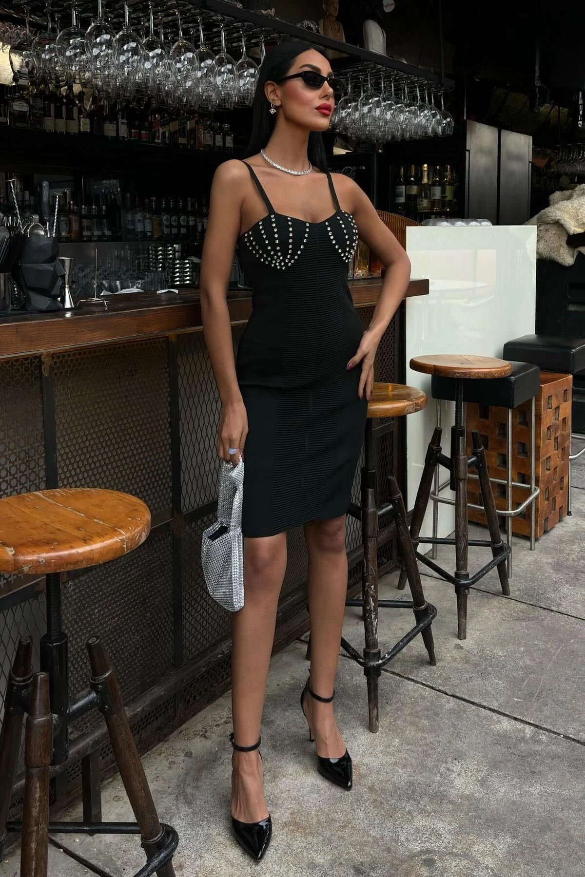 Kadın Siyah Polyelit Kolsuz Mini Elbise
