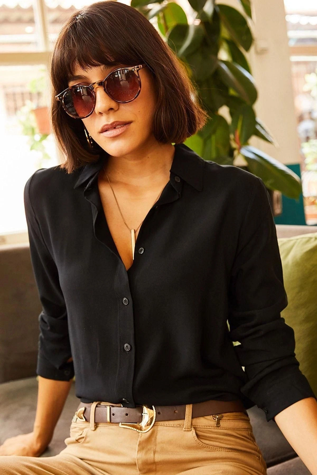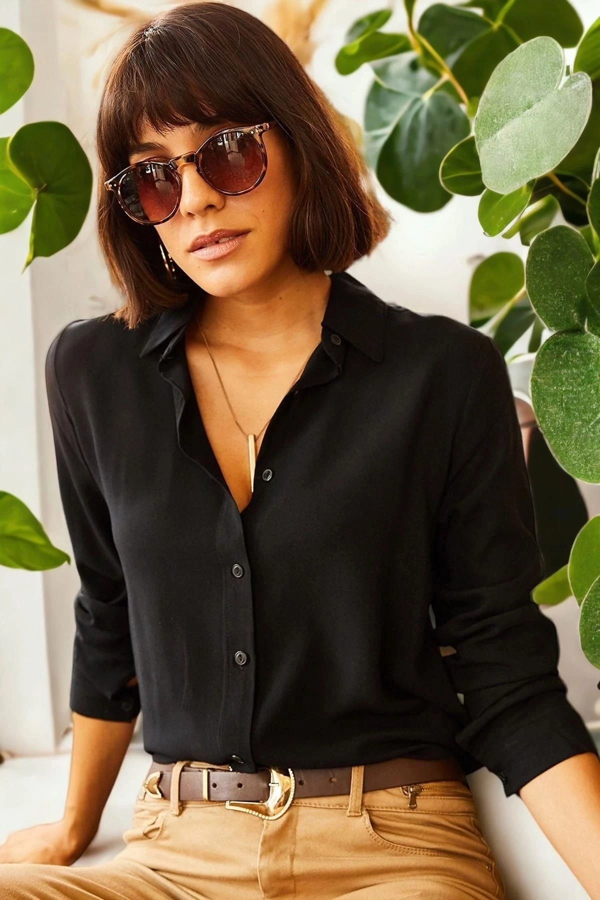 Bu şık siyah renkli gömlek, rahat bir klasik yaka ve uzun kollara sahiptir.; %100 polyester kumaştan üretilmiştir, bu da dayanıklılık ve rahatlık sağlar.; Kumaş içeriği olarak polyester tercih edildi.; Polyester, pürüzsüz bir dokuya ve hafif bir hisse sahip olmasının yanı sıra uzun süre dayanıklılığını korur.; Ayrıca, kolayca kırışmaz ve çabuk kurur, bu da pratik bir seçenek olmasını sağlar.; Siyah renk, her zaman şıklığı ve zarafeti temsil eden bir klasiktir.; Gömleğin bu renkte olması, herhangi bir kıyafete mükemmel bir tamamlayıcıdır ve farklı stillere kolayca uyum sağlar.; Klasik yaka tasarımı, zarif bir görünüm sunarken aynı zamanda rahat bir his sağlar.; Yaka, düz ve temiz çizgilere sahiptir ve her durumda tarzınızı tamamlar.; Uzun kollar, mevsim geçişlerinde veya daha serin günlerde ekstra konfor sağlar.; Kol manşetleri, mükemmel bir uyum ve hareket özgürlüğü sağlamak için düğme detaylarına sahiptir.; Bu gömlek, hem günlük kullanım için hem de özel etkinliklerde şık ve rahat bir seçenektir.; Klasik tarzıyla öne çıkan bu gömlek, gardırobunuzun vazgeçilmez parçalarından biri olacak.; Kalıp ve tasarım açısından özenle hazırlanan bu gömlek, tarzınızı yansıtmanızı sağlayacak benzersiz bir seçenektir.; Hem şıklığı hem de rahatlığı bir araya getiren bu gömlek, kendinizi özgür ve özgün hissetmenizi sağlayacak.; Unutmayın, bu gömlek sadece bir kıyafet değil, aynı zamanda tarzınızı ifade etme ve özgüveninizi yansıtma fırsatıdır.; Şıklığı ve konforu bir arada sunan bu gömleği seçerek, her zaman stil sahibi görünebilirsiniz.