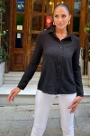 Kadın Siyah Terletmez Ponponlu Özel Kumaş, Fit Kesim, Uzun Kollu Gömlek